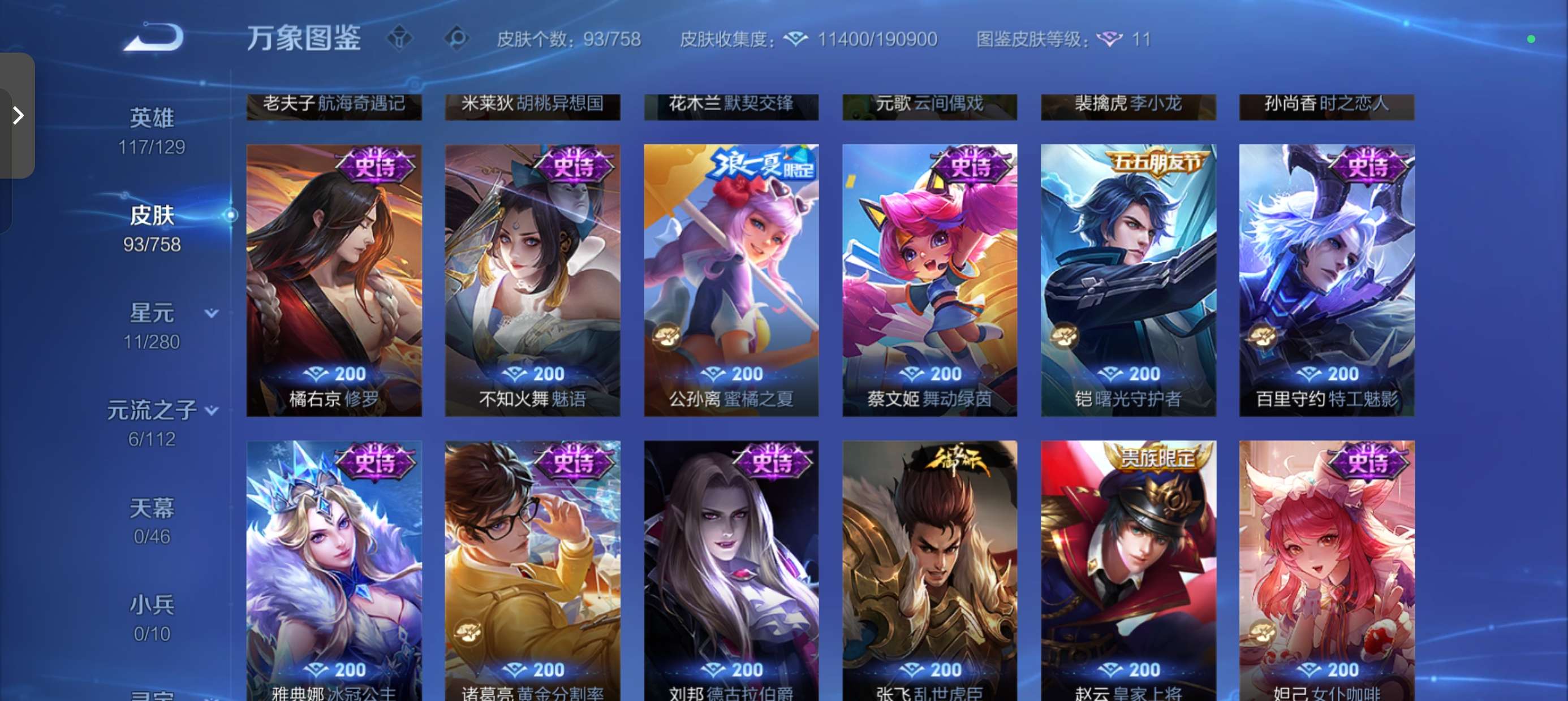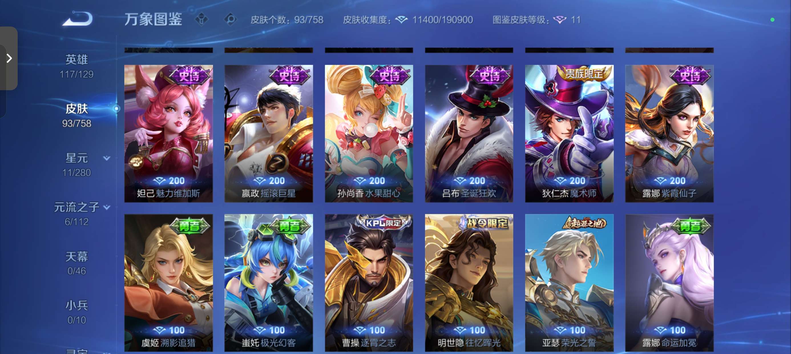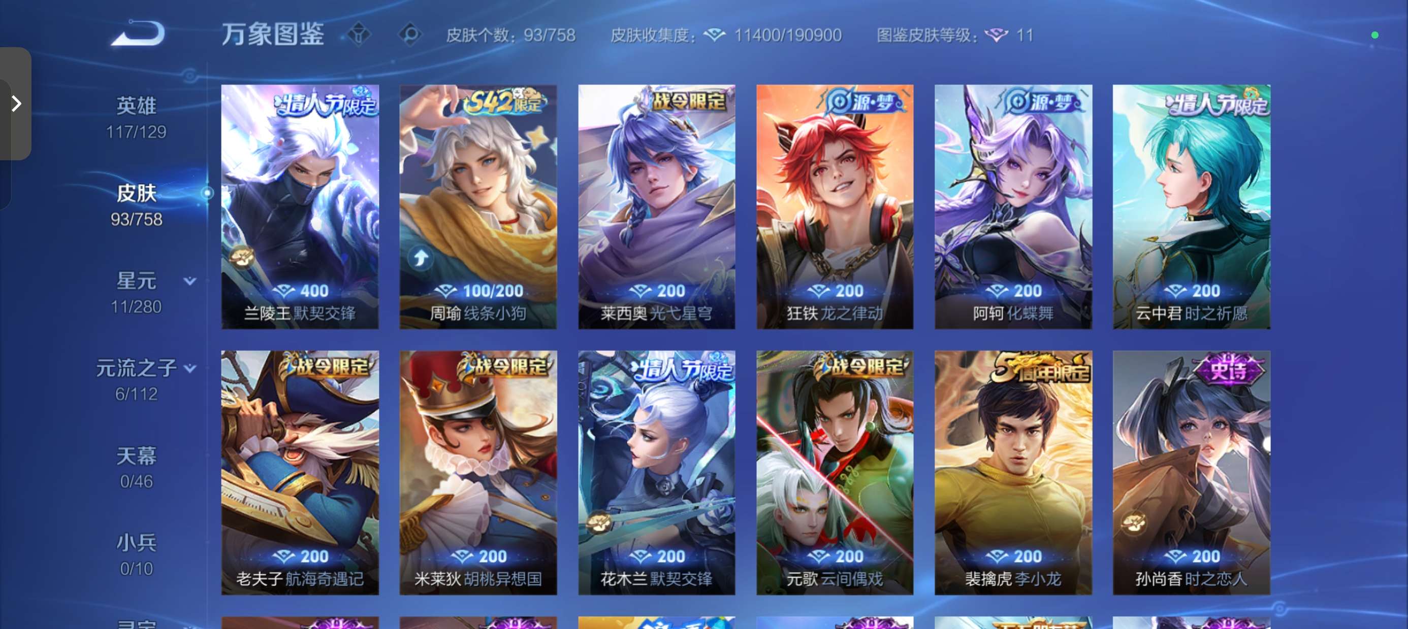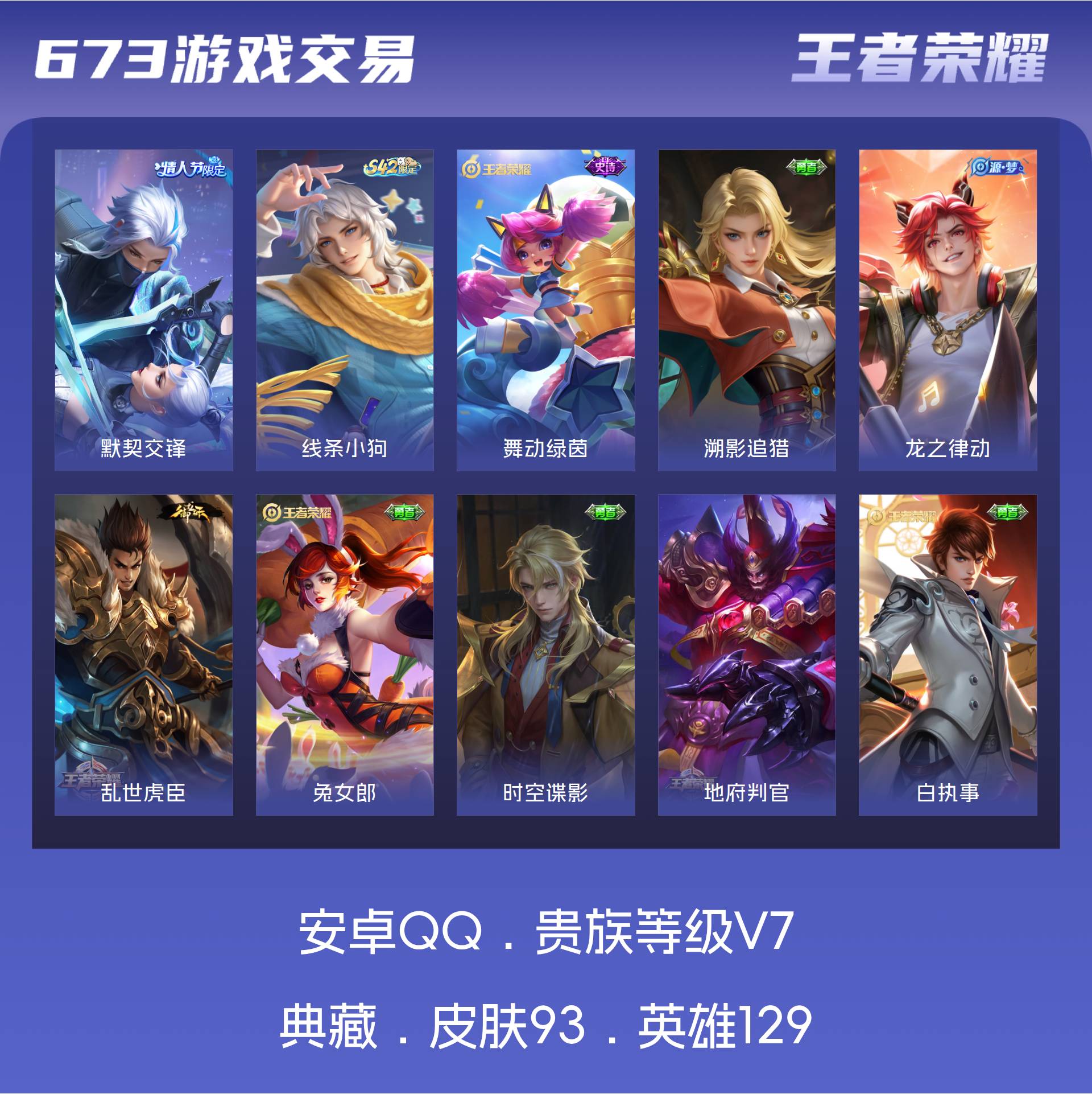 V7 皮肤93 英雄129 至尊星耀 传说1 其他皮肤97