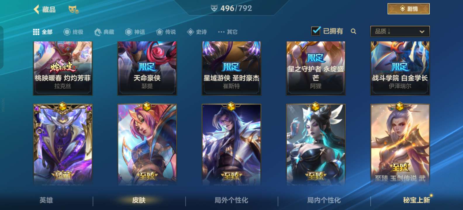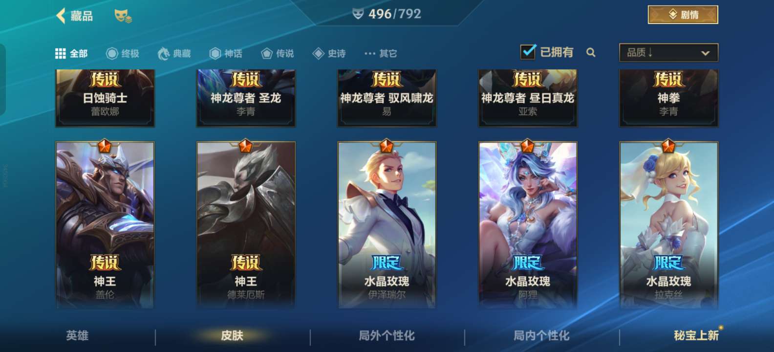 安卓游戏号:可改二次,4典藏16神话65传说,以及其他极品限定看截图。只绑定密保手机,其他全无。