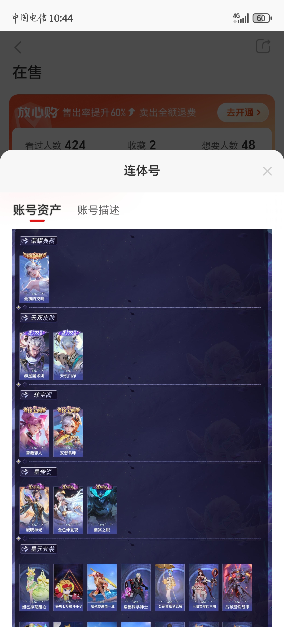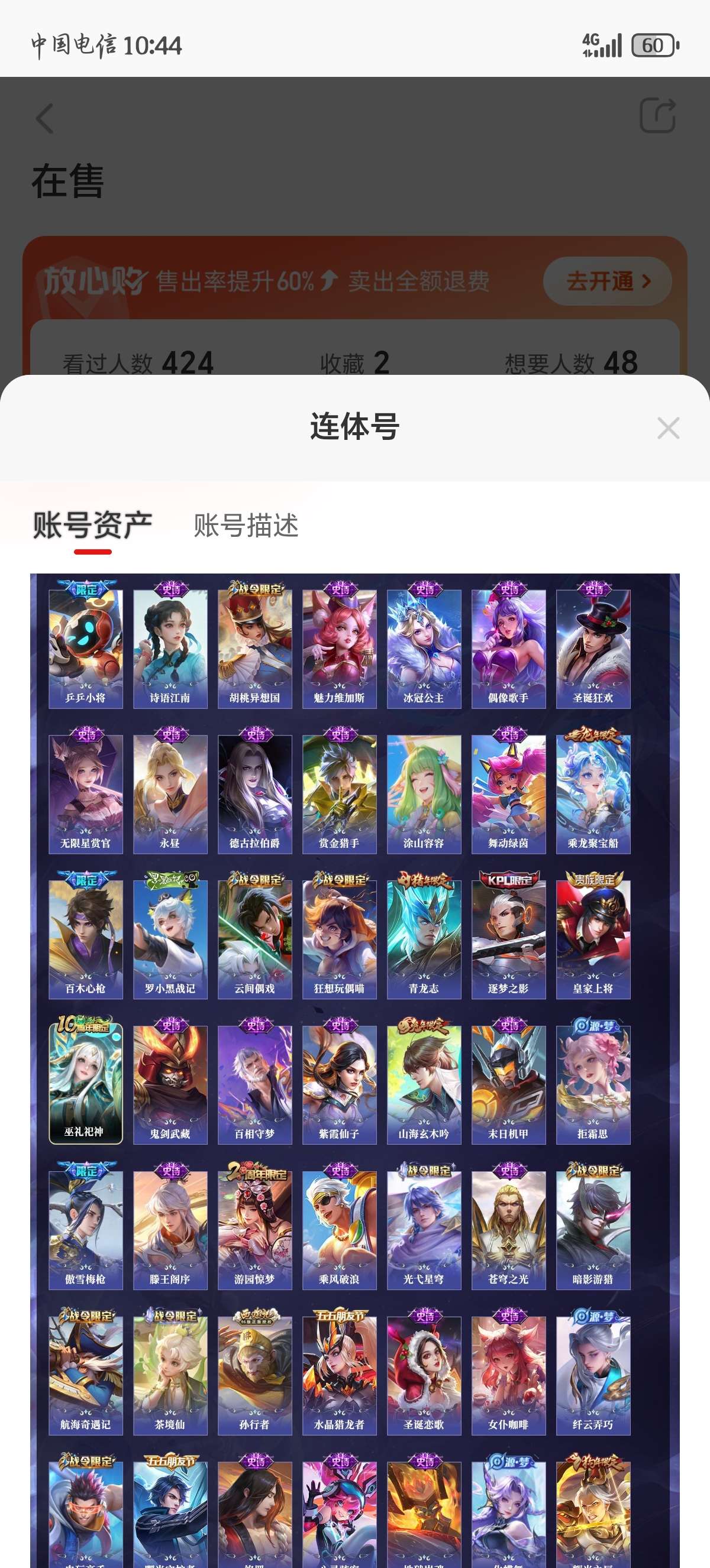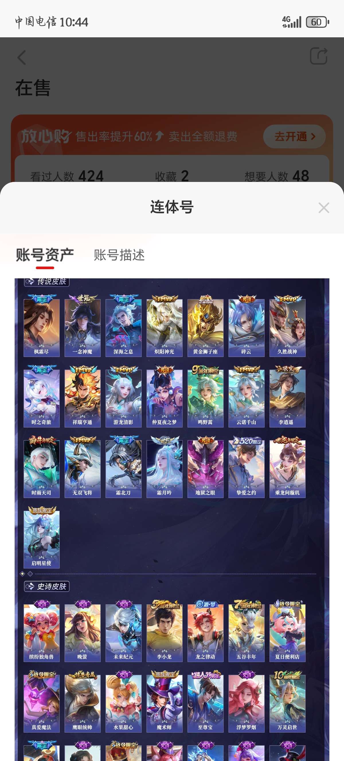 通过App,与卖家商议价格及保险,并向卖家索要账号最新截图,确认后下单购买。