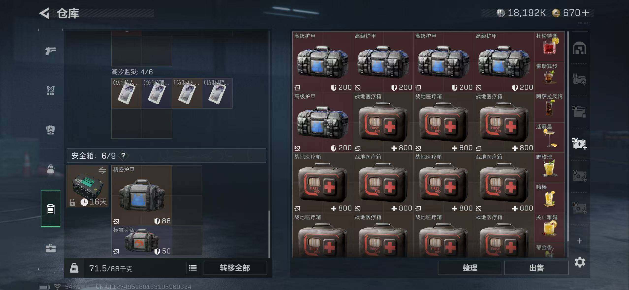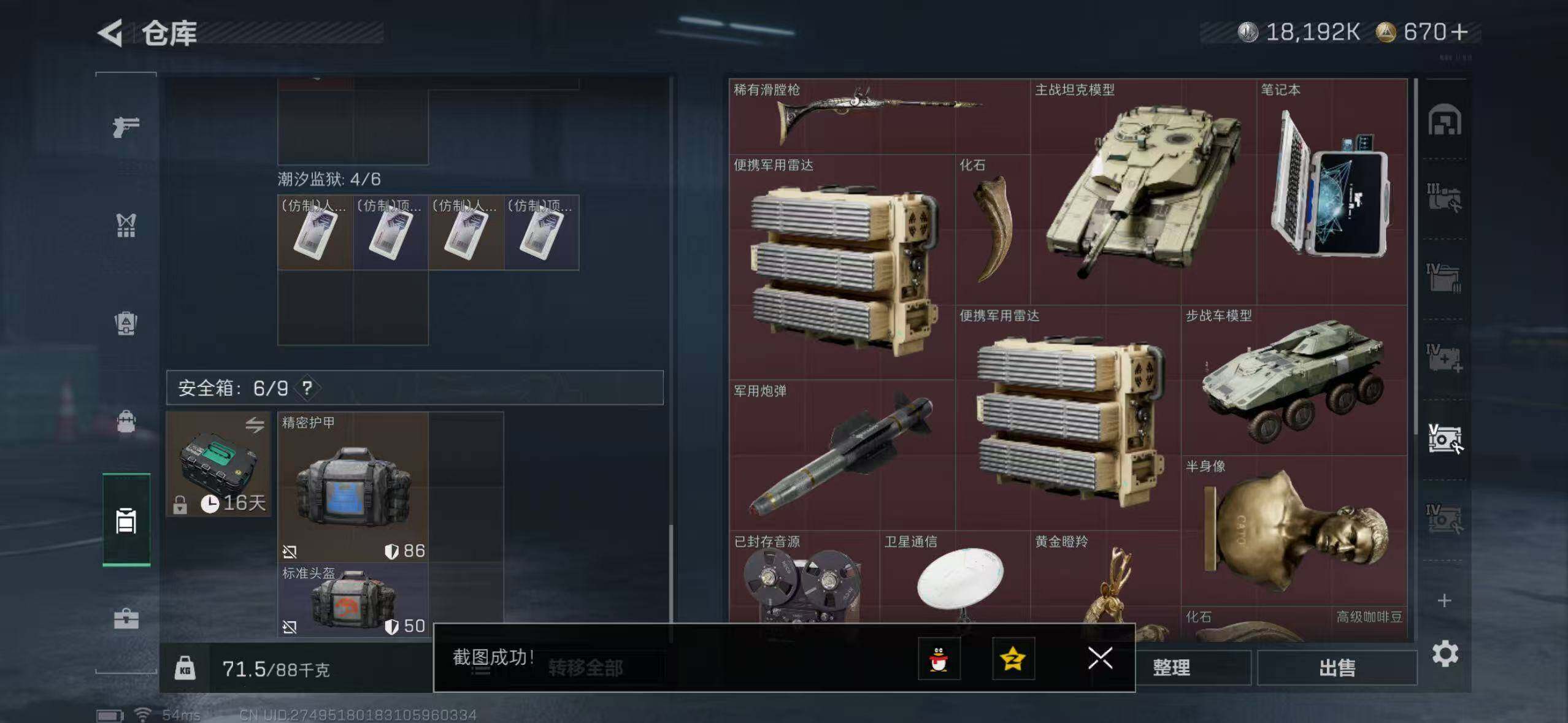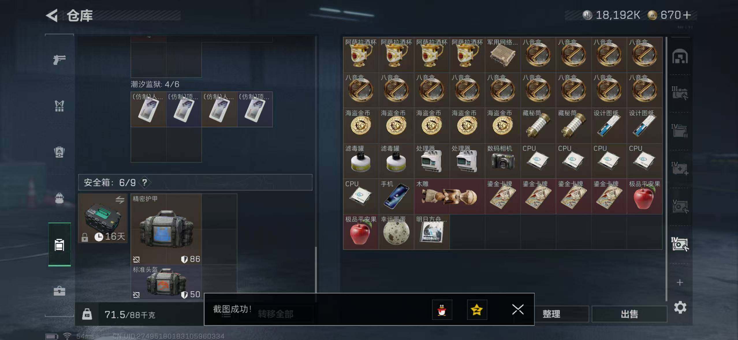 【SJ866】70发AW满体满负等级:60 总资产:147.6M 哈夫币:1819.2W 干员皮肤:维什戴尔 安全箱:顶级安全箱9(3x3)
