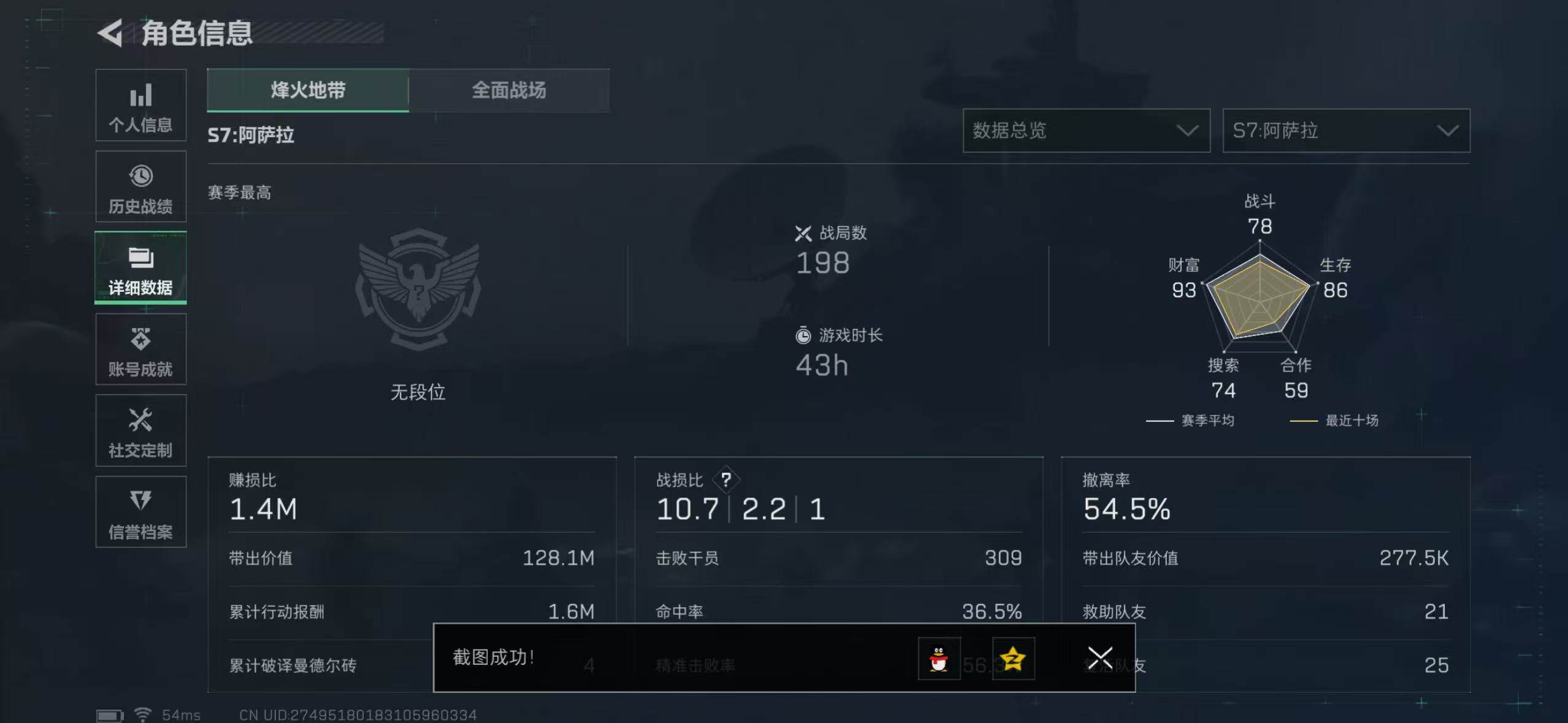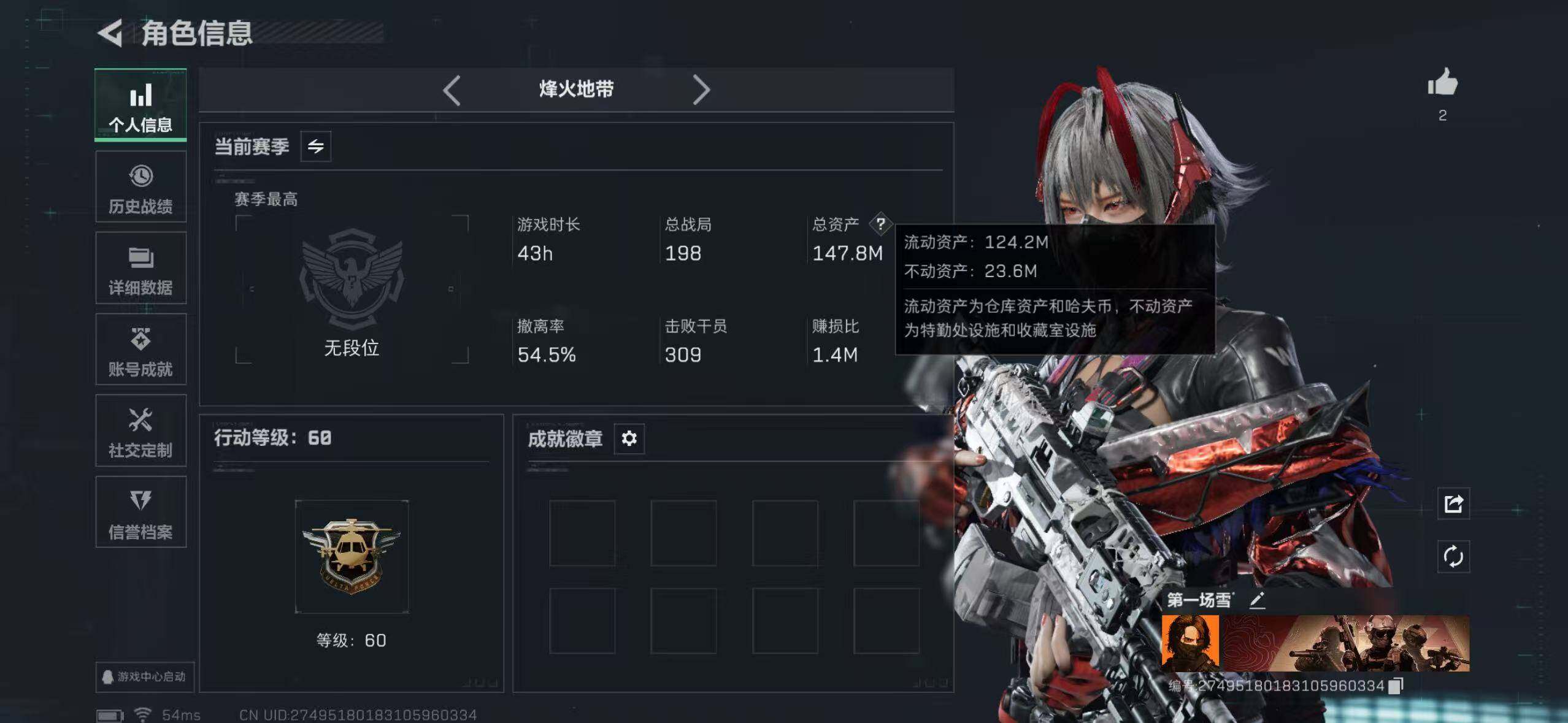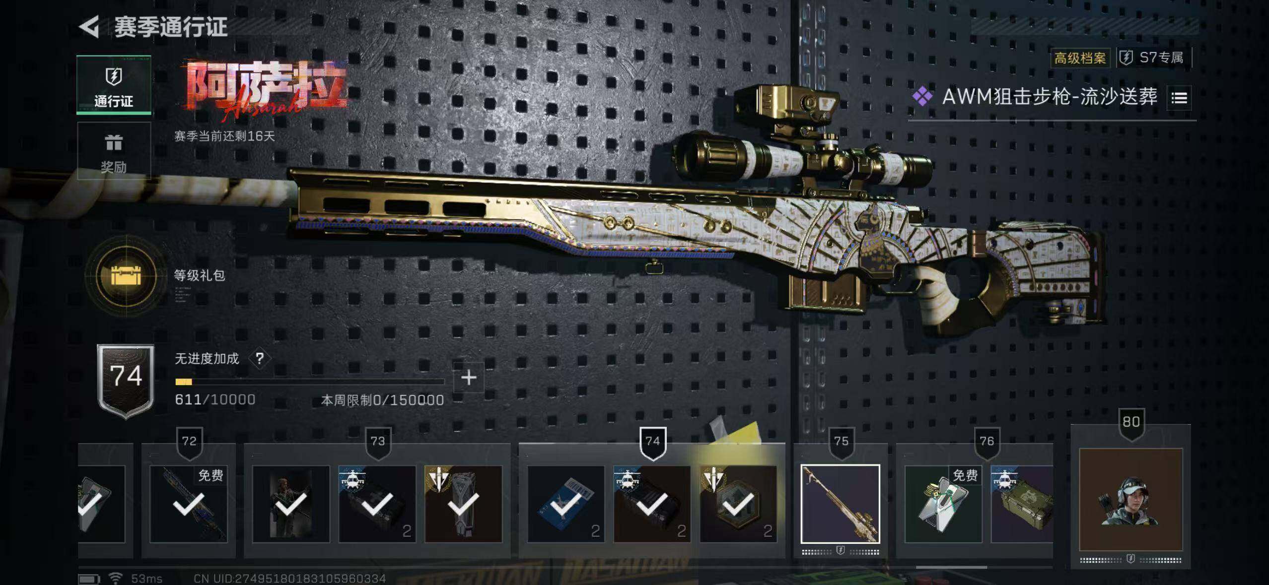 【SJ866】70发AW满体满负等级:60 总资产:147.6M 哈夫币:18