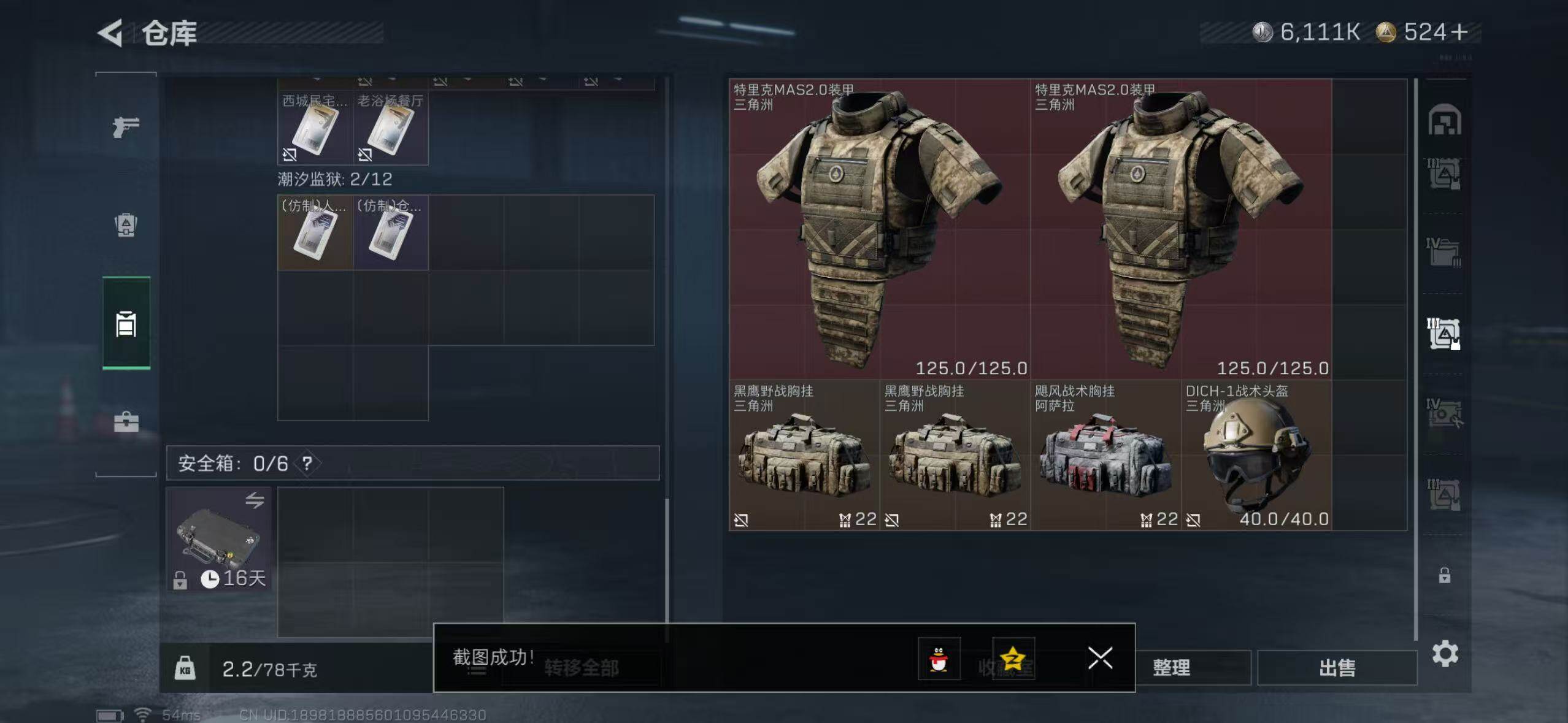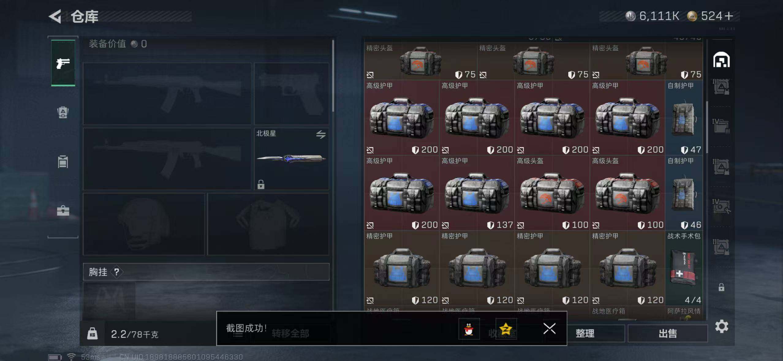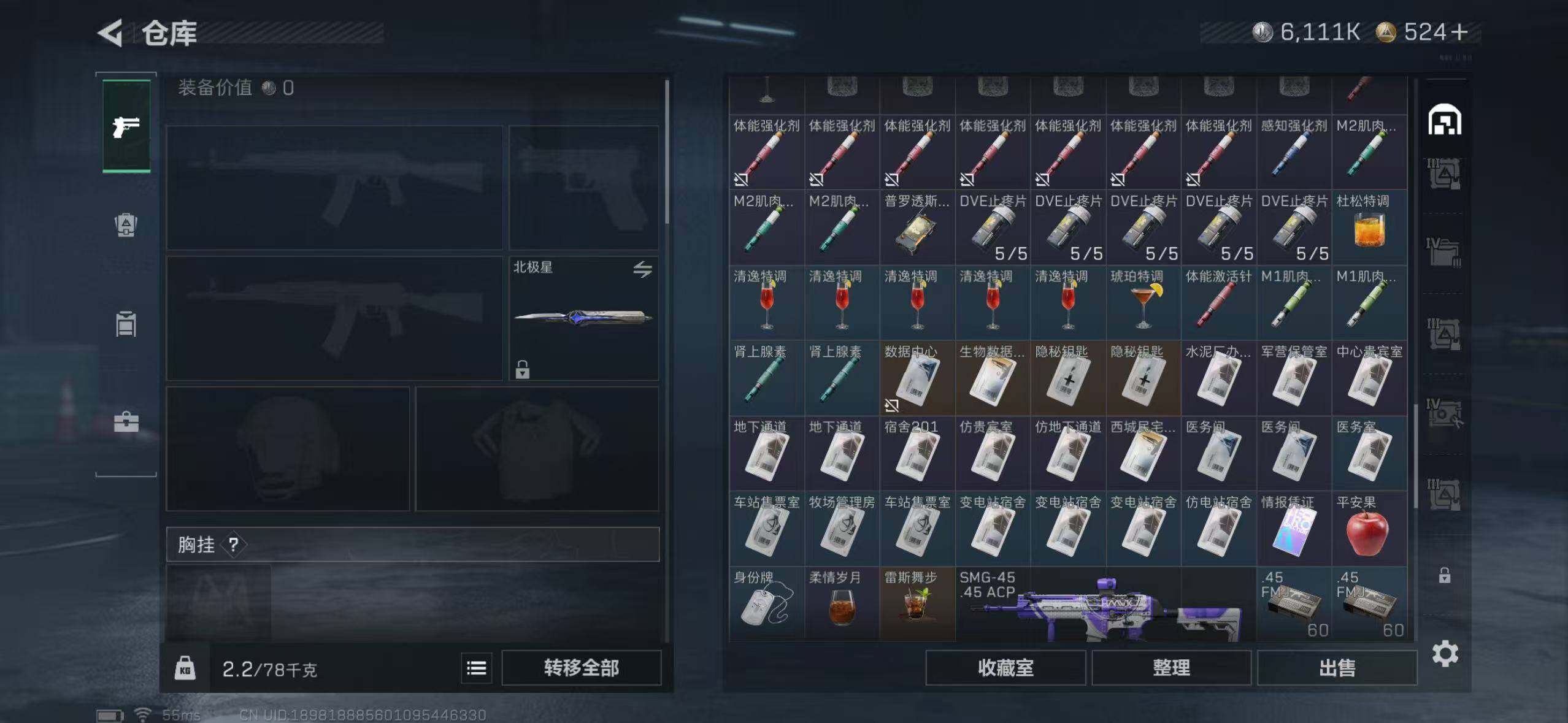 【SJ867】行动等级:60 总资产:168M 哈夫币:611.2W 近战武器