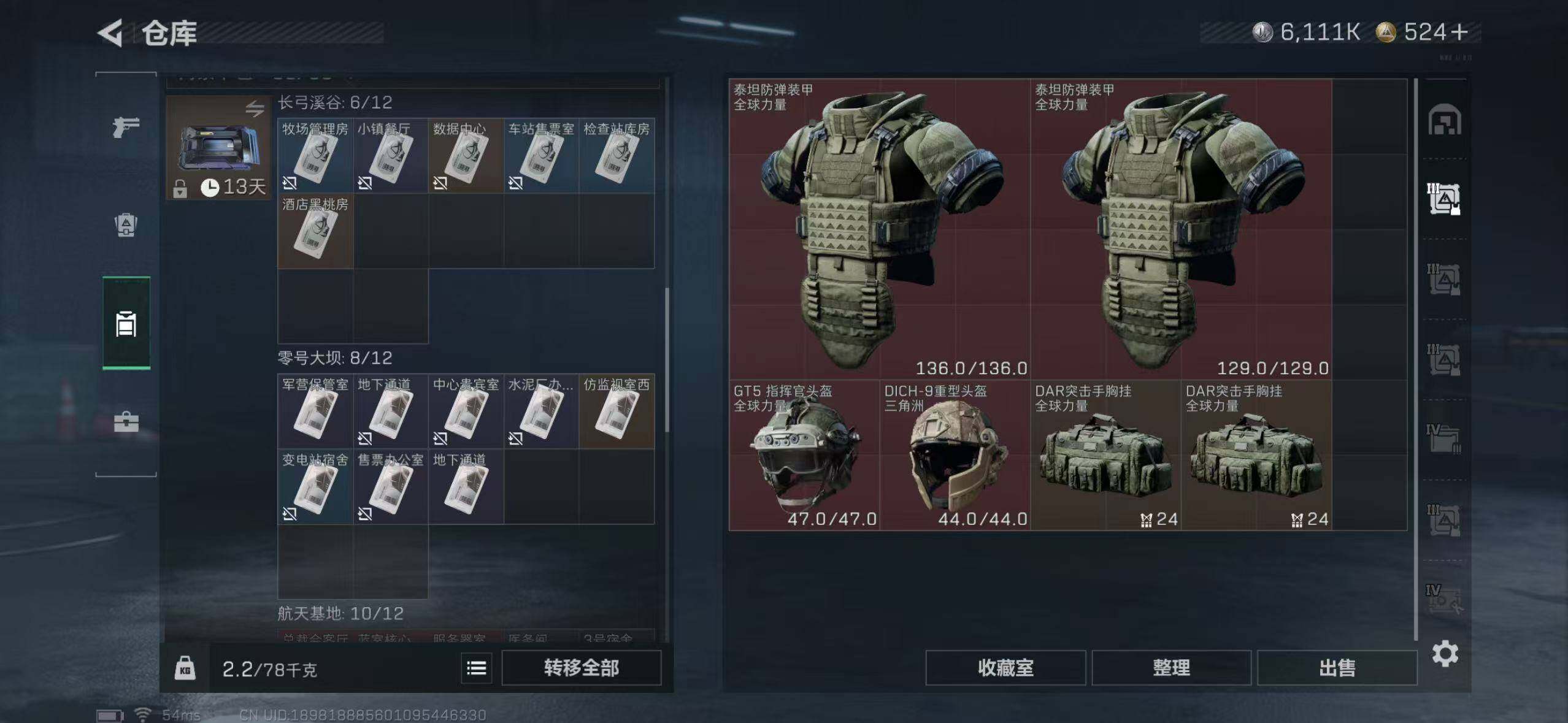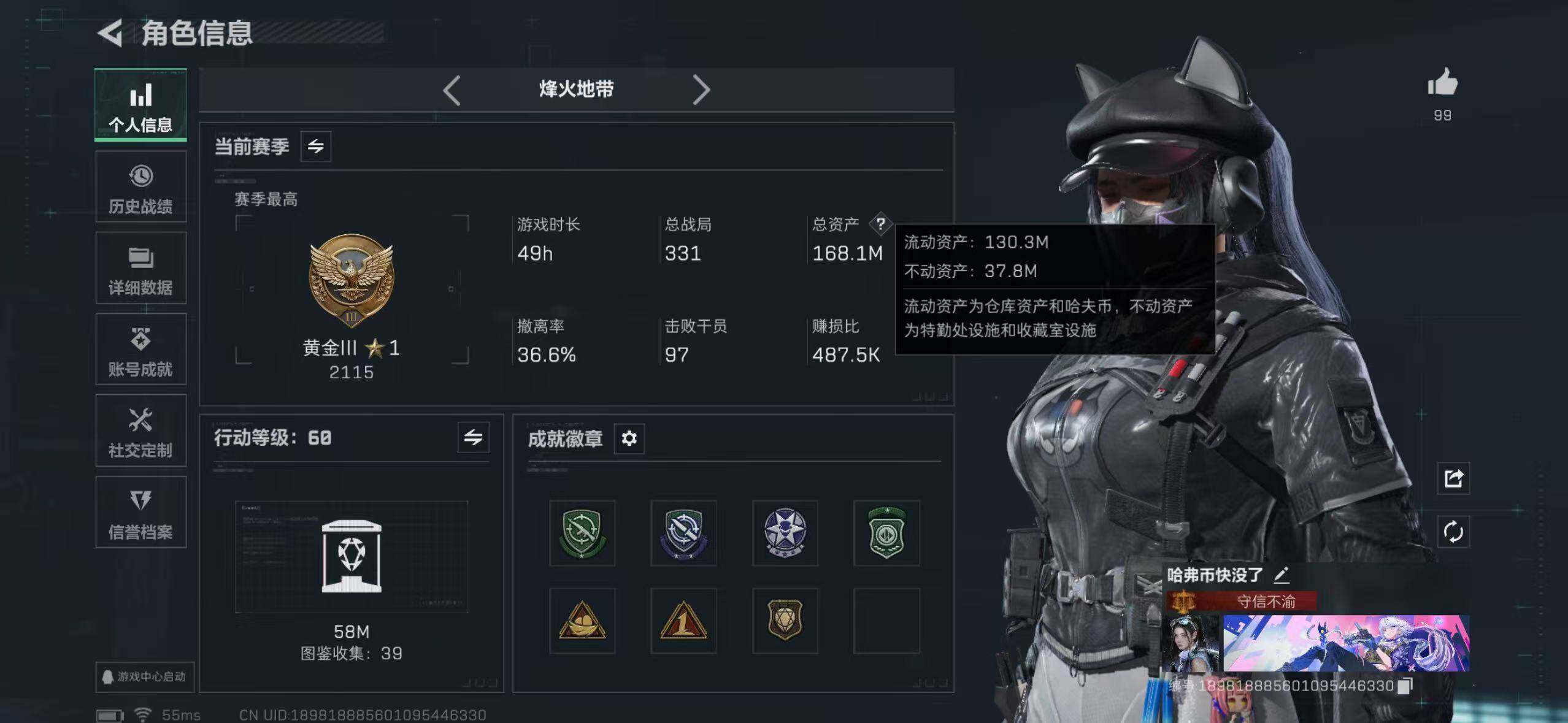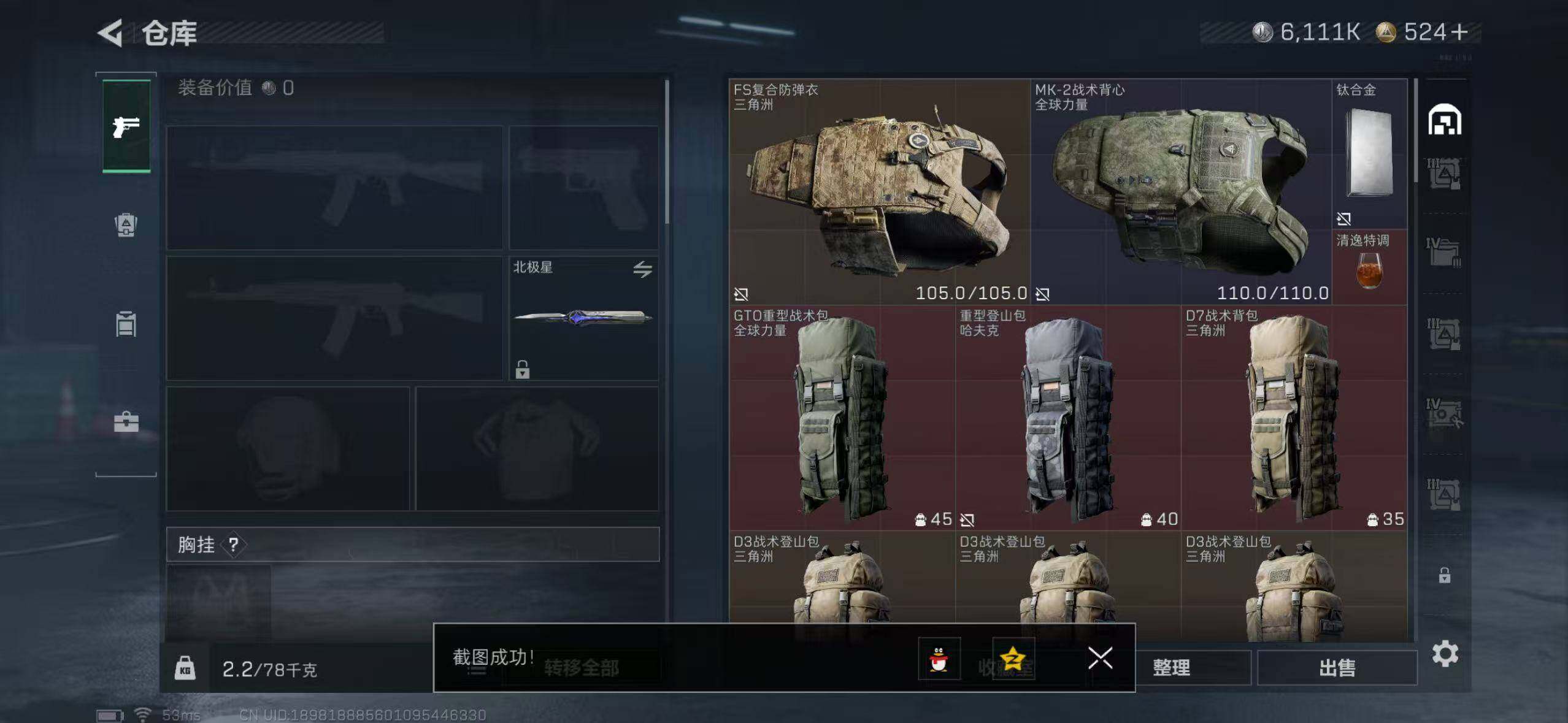 【SJ867】行动等级:60 总资产:168M 哈夫币:611.2W 近战武器