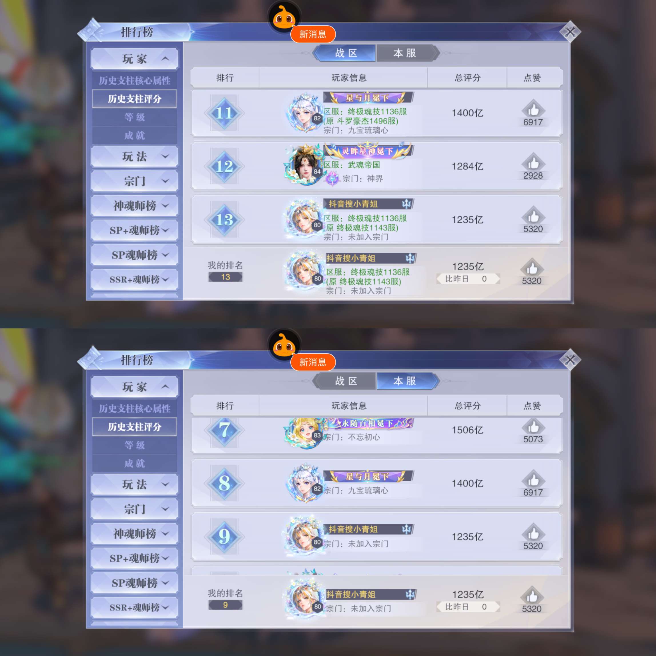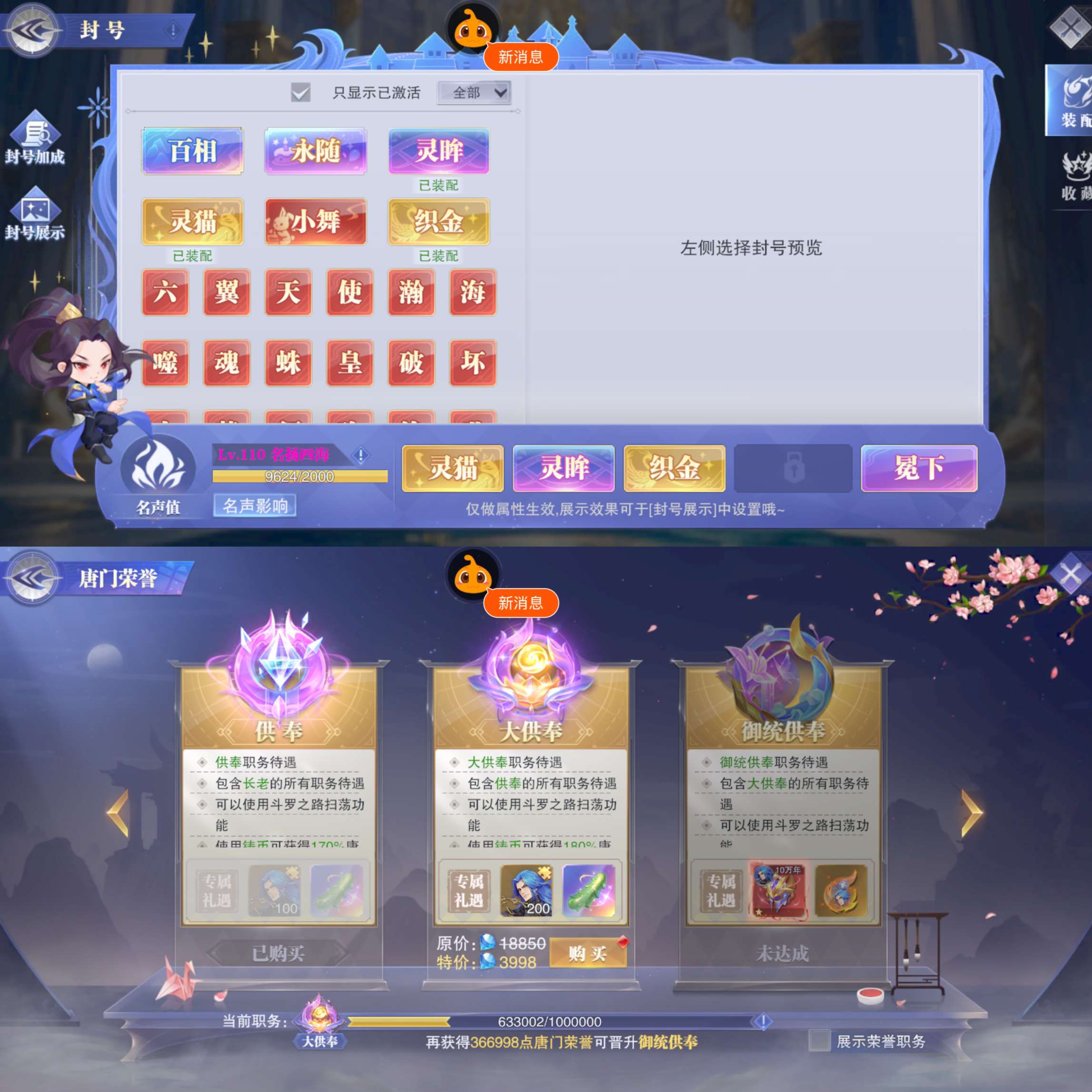 1484亿战力。80级魂圣。大供奉。十方蓉蓉25sp。称号:灵眸。永随。灵猫。织金。10级神位霍雨