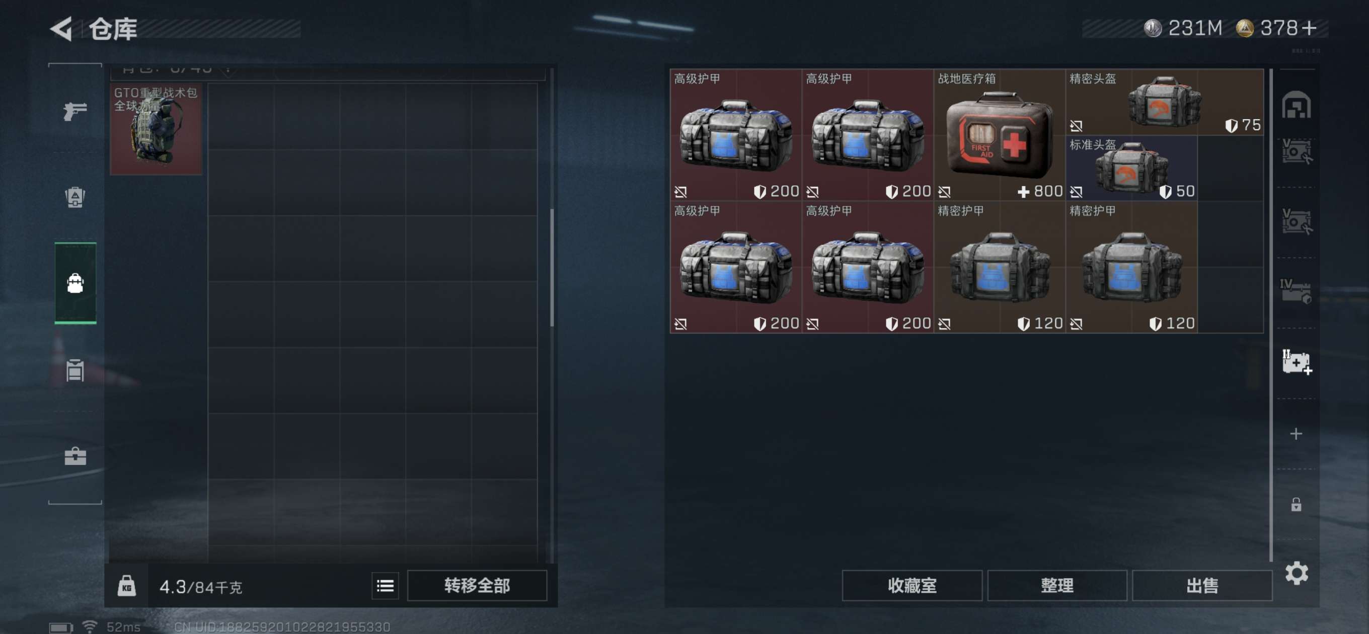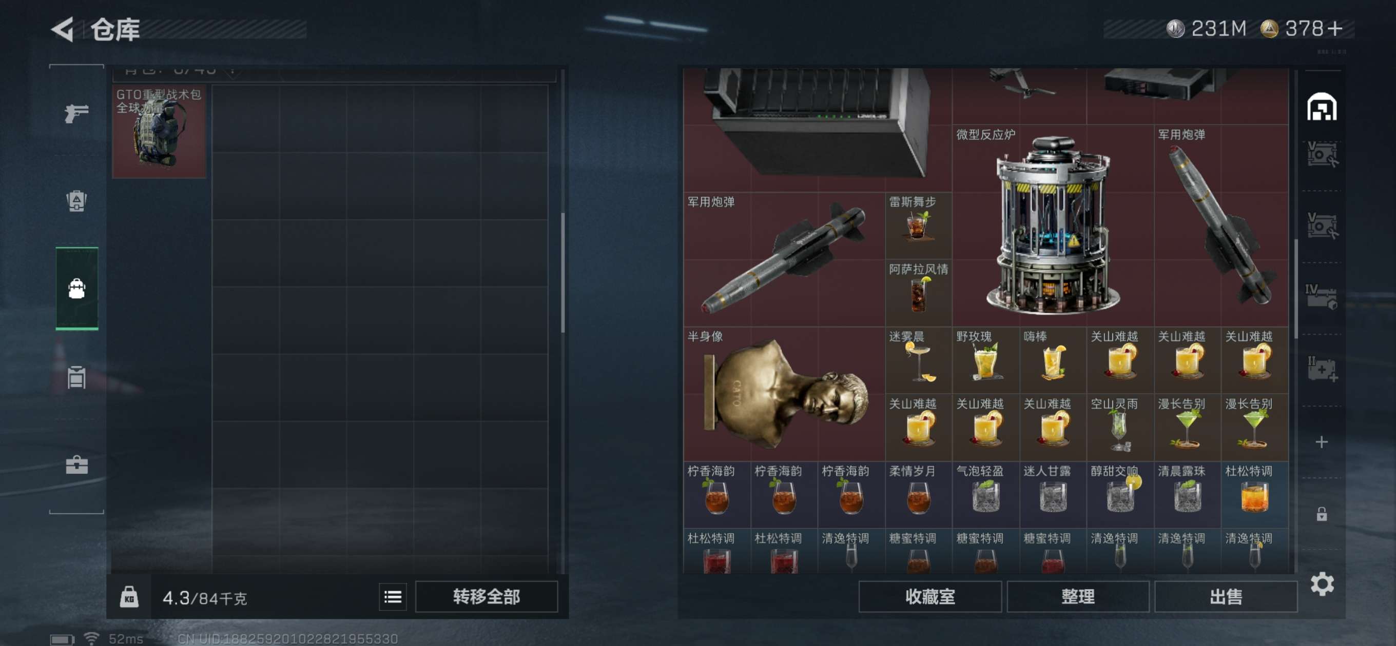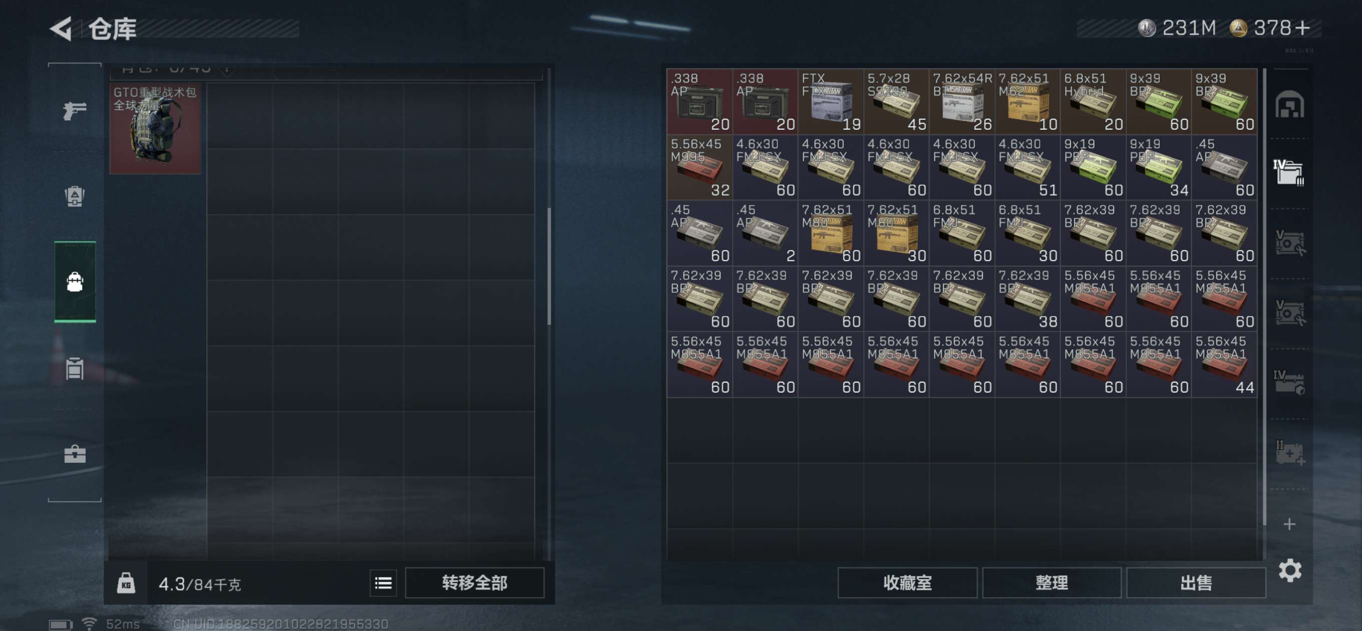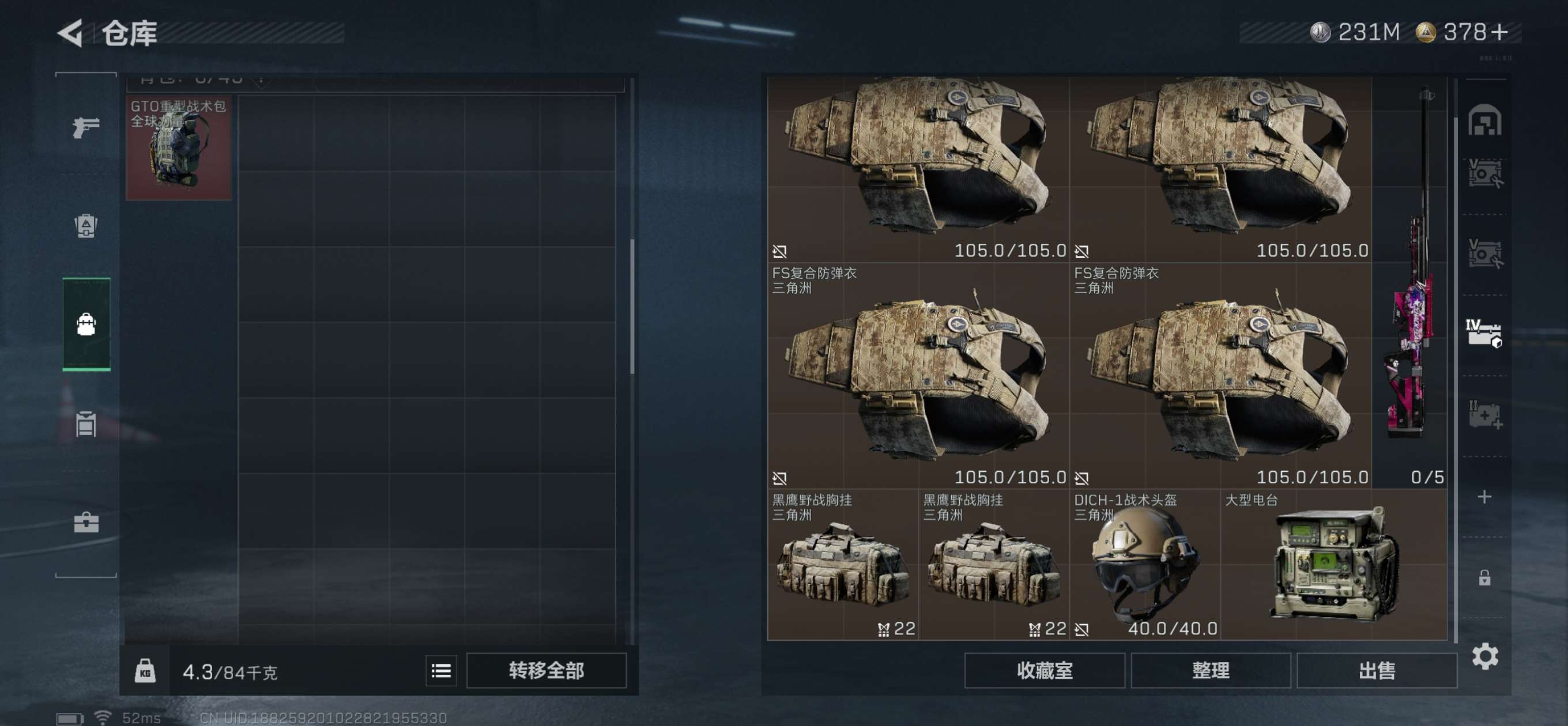 总资产445M。纯币230M还有6个6甲4个6头,20发AW