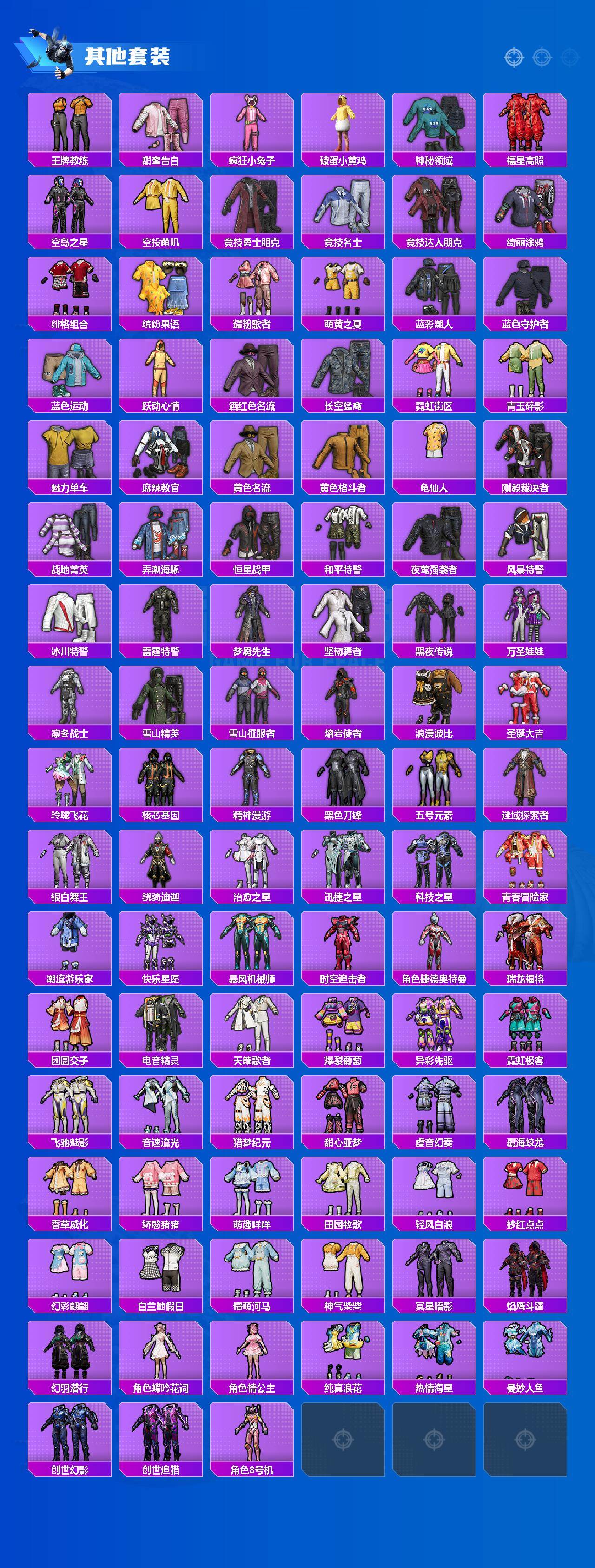 【粉色套装】:粉装-深海曼妙,粉装-天之羽翼,粉装-炙焰牛王,角色-烟云彩露,粉装-星穹咏叹调,角色-异瞳寒姬