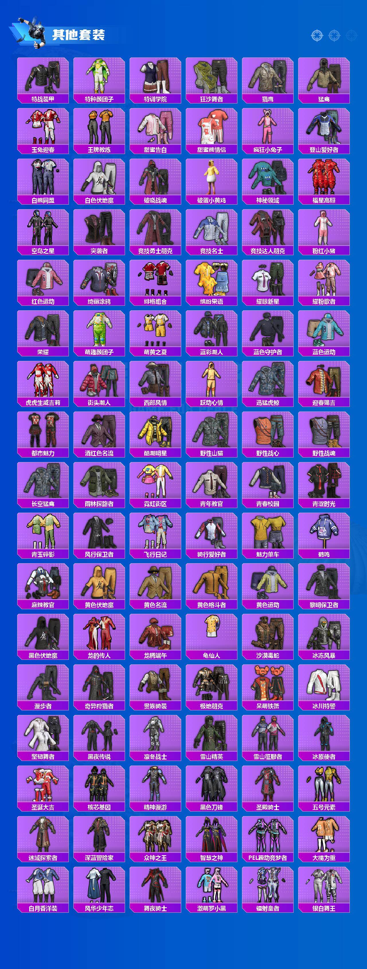 【热门品类】:绝对防御上衣,套装-小丑鱼,套装-奇异狩猎者,套装-胖达圆圆,套装-忍者信条,角色-忠义严颜,套装-龟仙人,套装-粉红小猪,大砍刀-青龙偃月刀