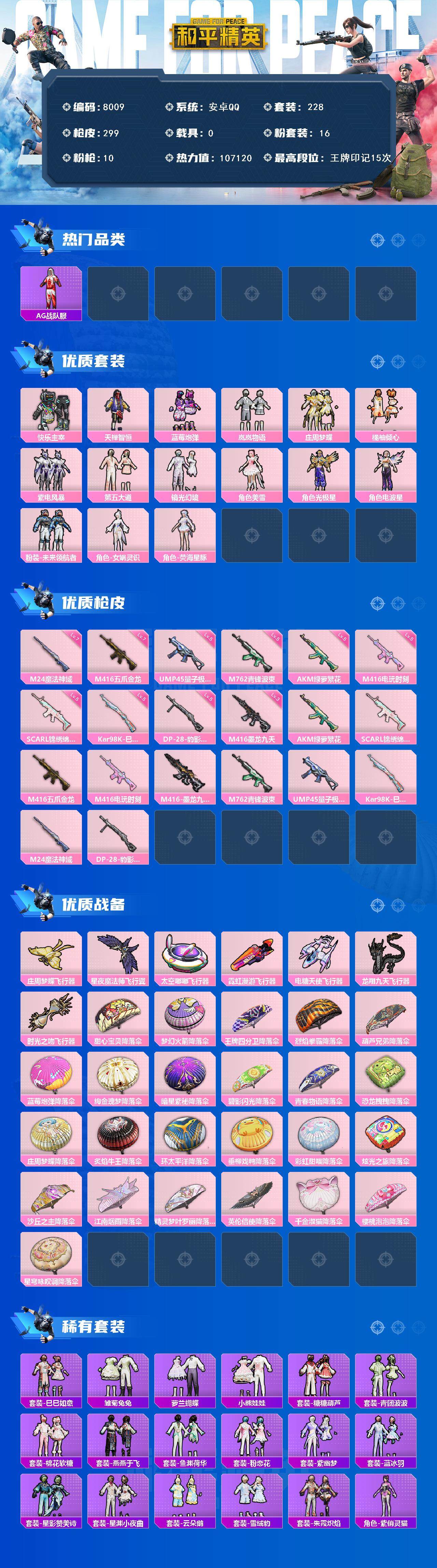 【8009】16粉装-10特效枪-0载具-8粉色飞行器-107120热力值-15王牌印记-228套装-299枪皮