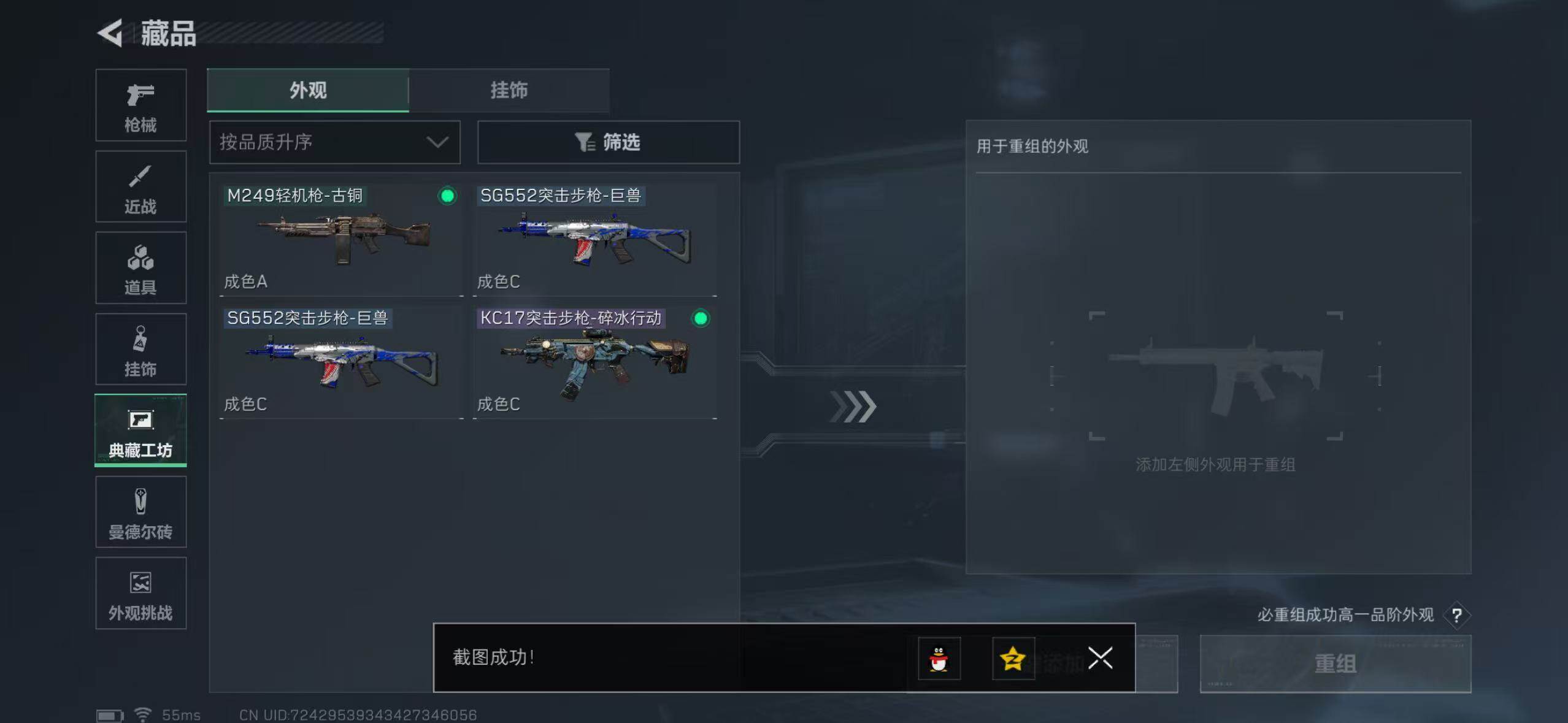 【史诗外观】:KC17突击步枪-碎冰行动,M7战斗步枪-百步穿杨,G3战斗步枪-流沙送葬,A