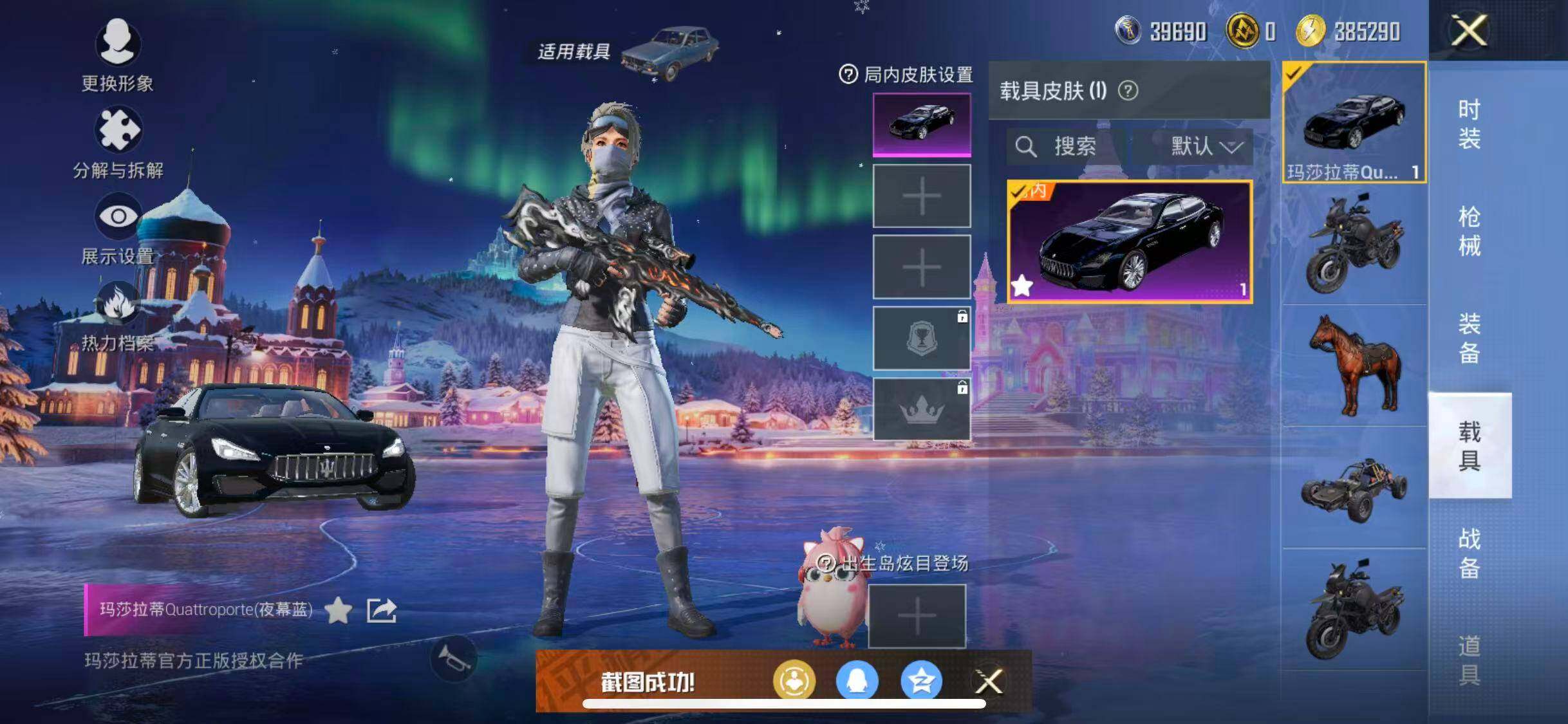 苹果 手Q-3粉装-3特效枪-1载具-3粉色飞行器-38388热力值-8王牌印