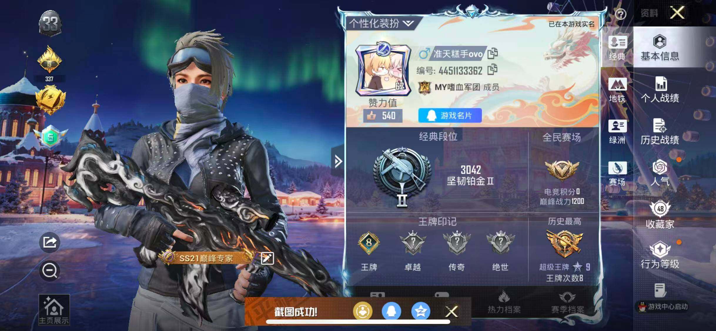 苹果 手Q-3粉装-3特效枪-1载具-3粉色飞行器-38388热力值-8王牌印记-105套装-111枪皮