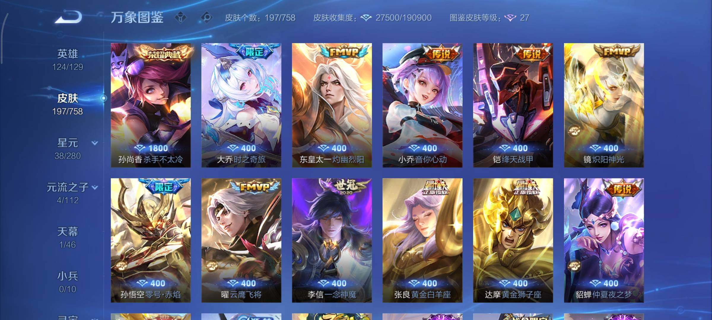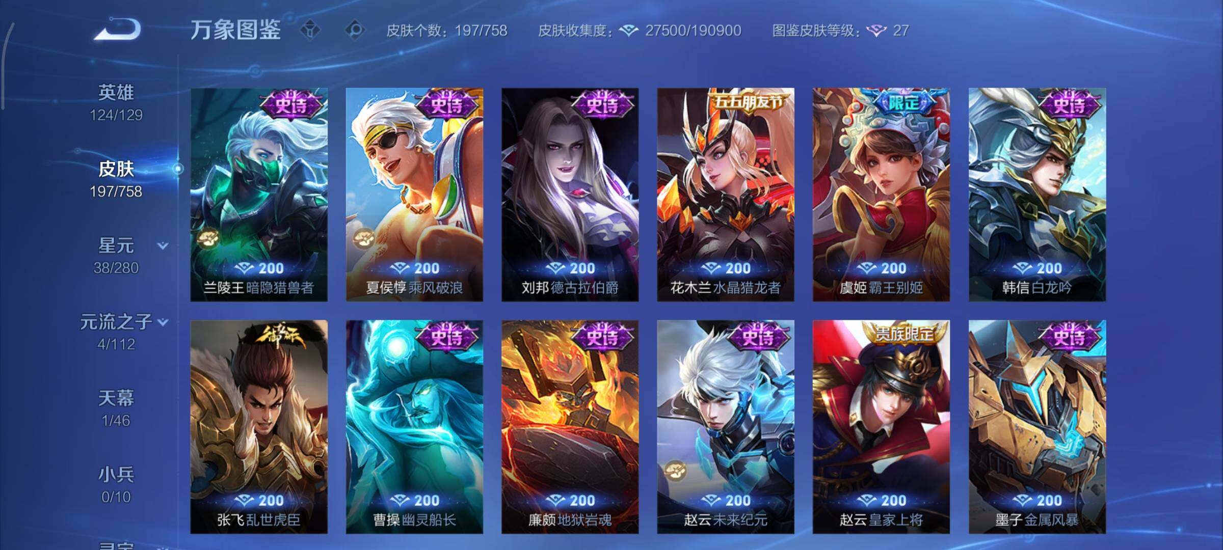 可换绑【性价比优质号】5按键 6王者印记 五级铭文190 可二次CD16202 安卓Q-V7-197皮肤-1典藏皮肤-11传说-53史诗【荣耀典藏】:孙尚香杀手不太冷【传说皮肤】:大乔时之奇旅,东皇太一灼幽烈阳,小乔音你心动,铠绛天战甲,镜炽阳神光,孙悟空零号赤焰,曜云鹰飞将,李信一念神魔,张良黄金白羊座,达摩黄金狮子座,貂蝉仲夏夜之梦【限定皮肤】:白起狰,狄仁杰阴