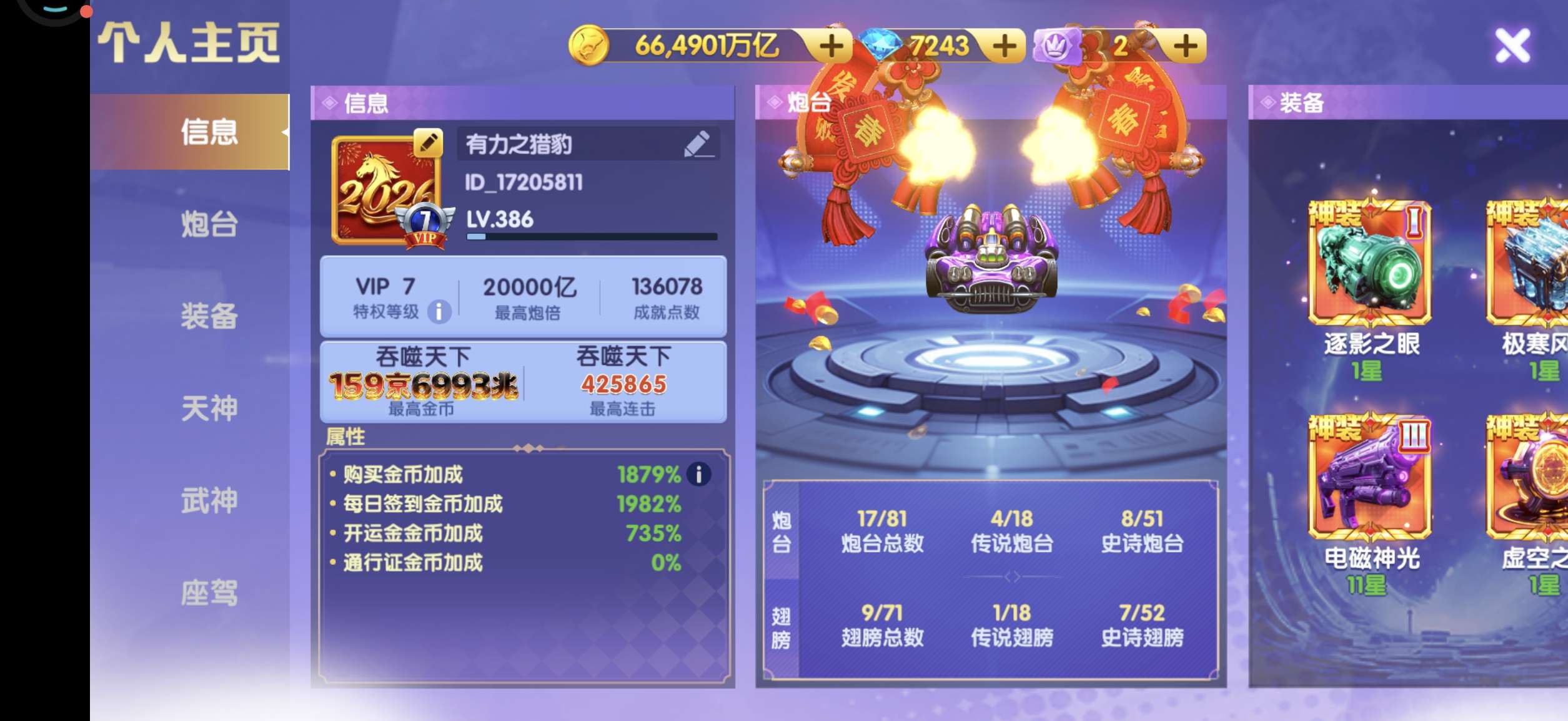小米5出3回。可纯玩基本都是15000炮带羁绊4荒最高3万基础炮每天 10-100京大量有高分几百分