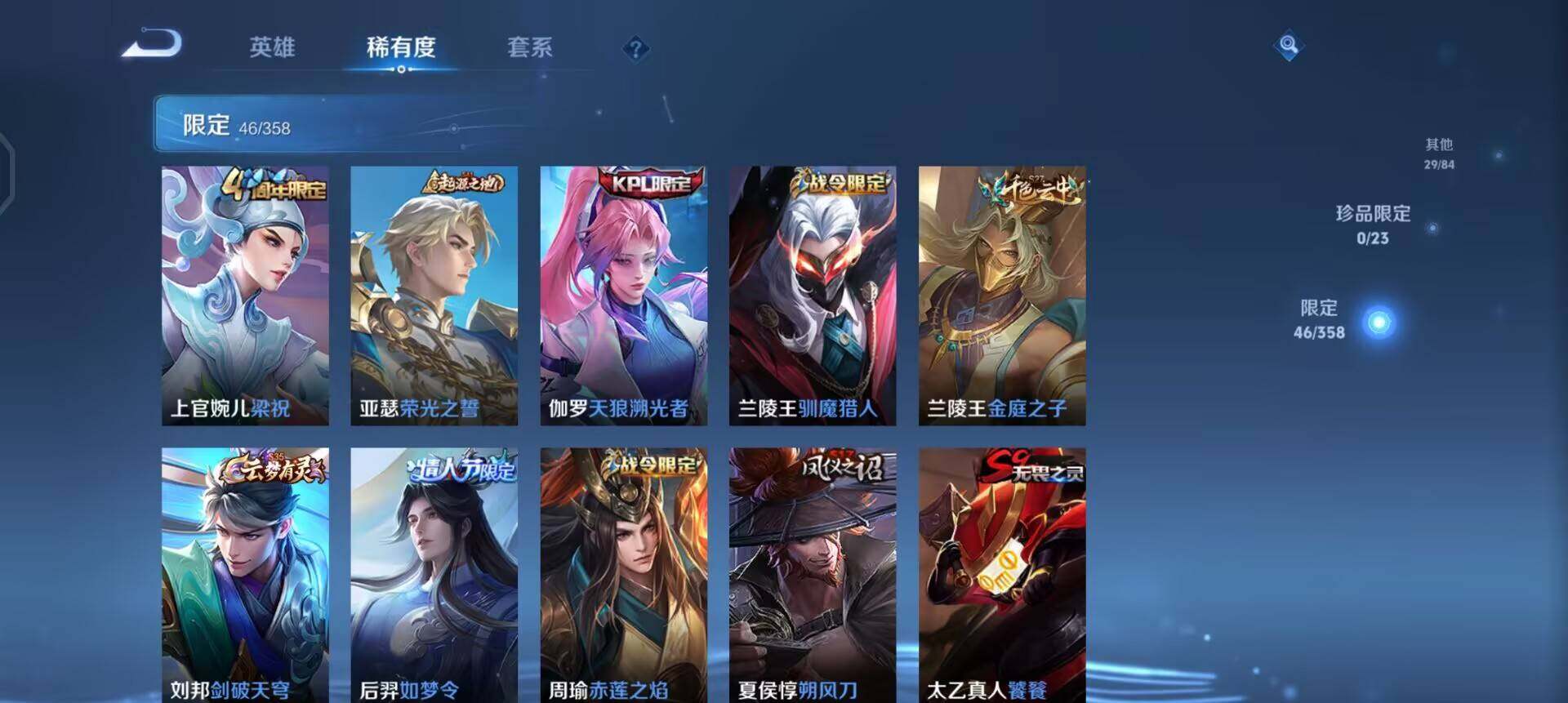 【限定皮肤】:狄仁杰阴阳师,赵云皇家上将,孙尚香蔷薇恋人,鲁班七号狮舞东方,高渐离玩趣恶龙,周瑜赤莲之焰,夏侯惇朔风刀,狄仁杰魔术师,狄仁杰万华