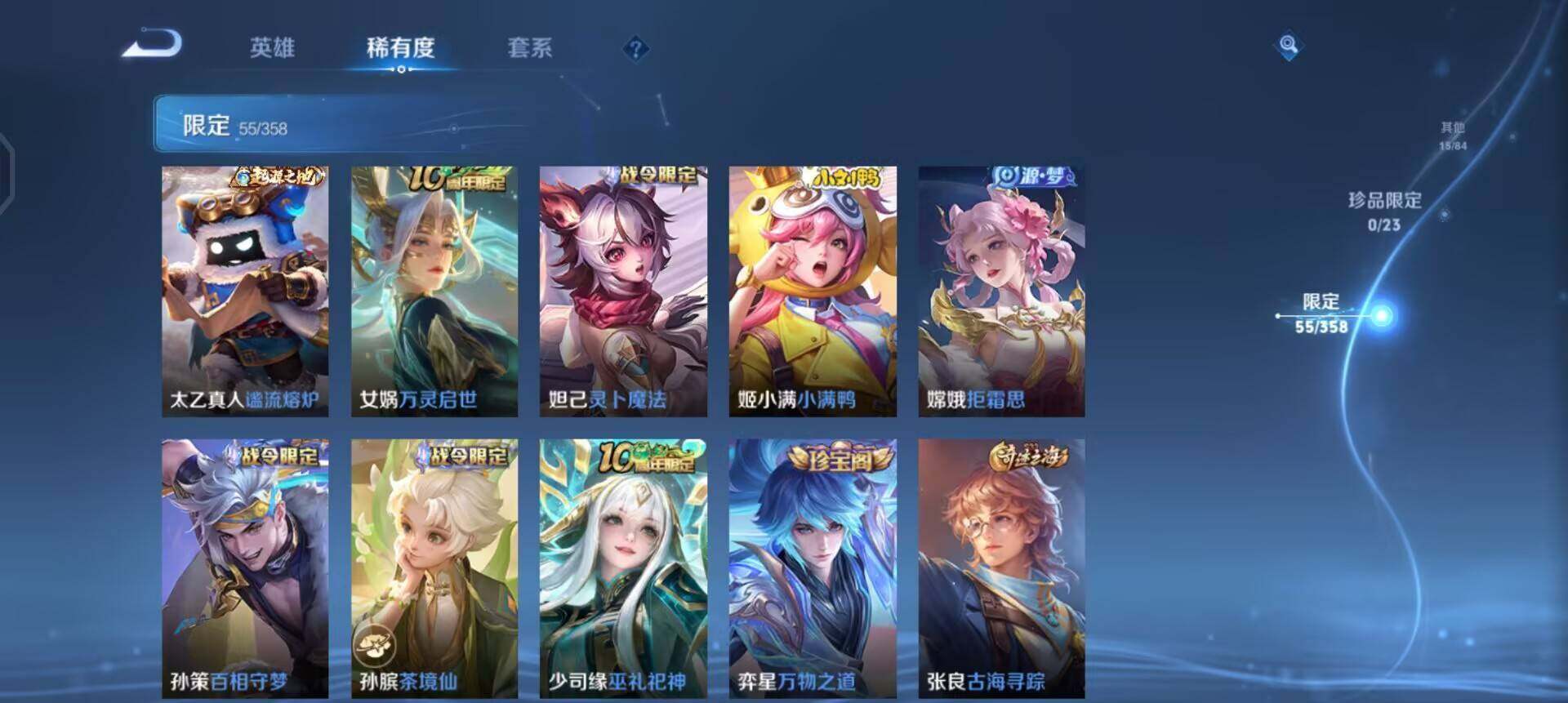 【限定皮肤】:狄仁杰阴阳师,赵云皇家上将,吕布猎兽之王,狄仁