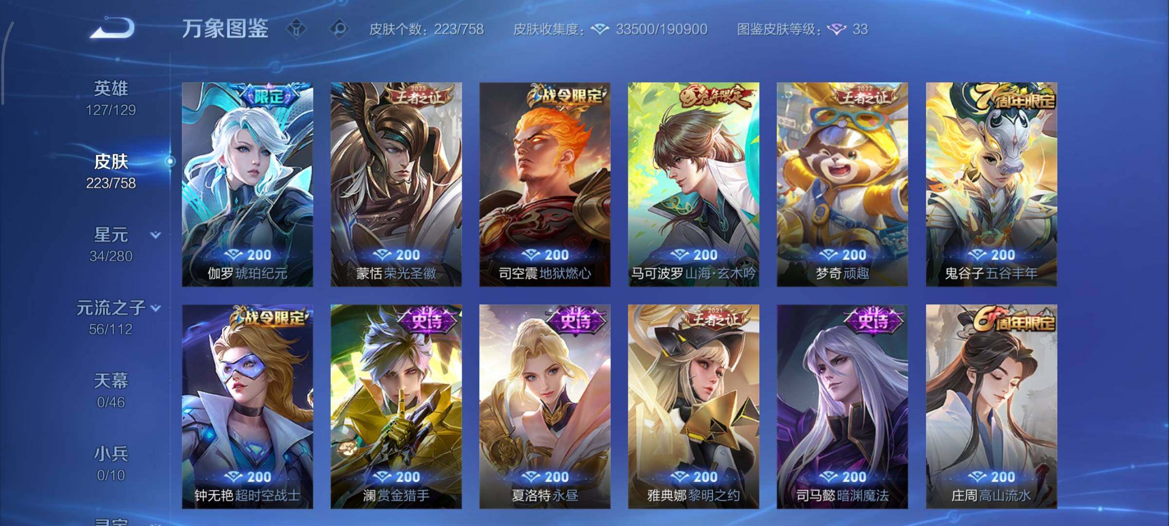 可换绑【性价比优质号 韩信典藏 蛇年限定 马超琥珀纪元 龙年赵云 白虎志 神威 青龙志 至尊宝 多传说限定号】4按键,2星传说,17王者印记,五级铭文290,可二次CD16213,安卓Q-V7-223皮肤-1典藏皮肤-18传说-61史诗【英雄全皮】:李信全皮,司空震全皮【荣耀典藏】:韩信弑枪猎影【星元皮肤】:宫本武藏幽冥之眼,狄仁杰星际治安官【传说皮肤】:司空震愿