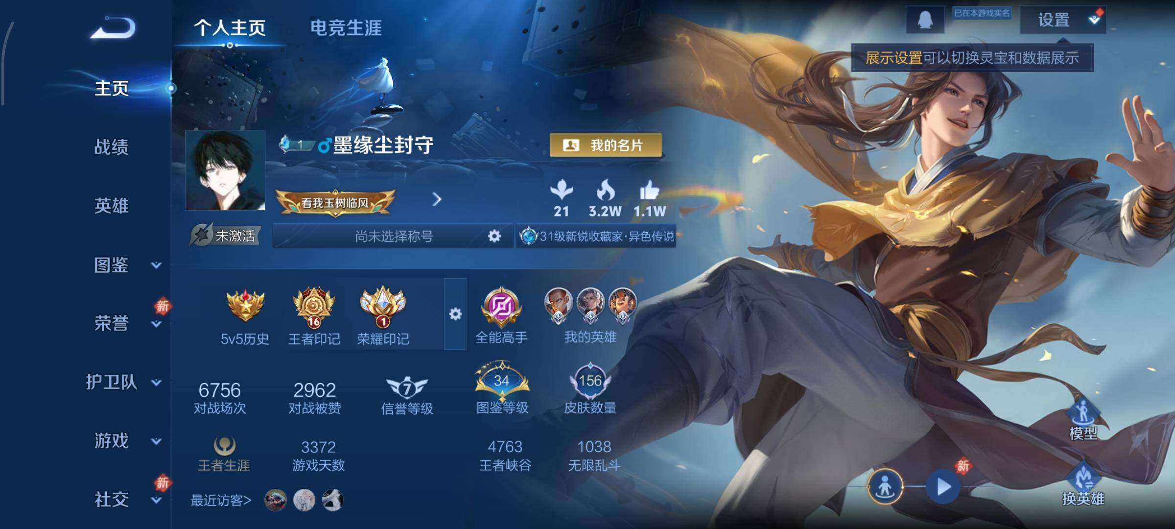 可换绑【性价比优质号 李逍遥】3按键,2星传说,16王者印记,五级铭文200,