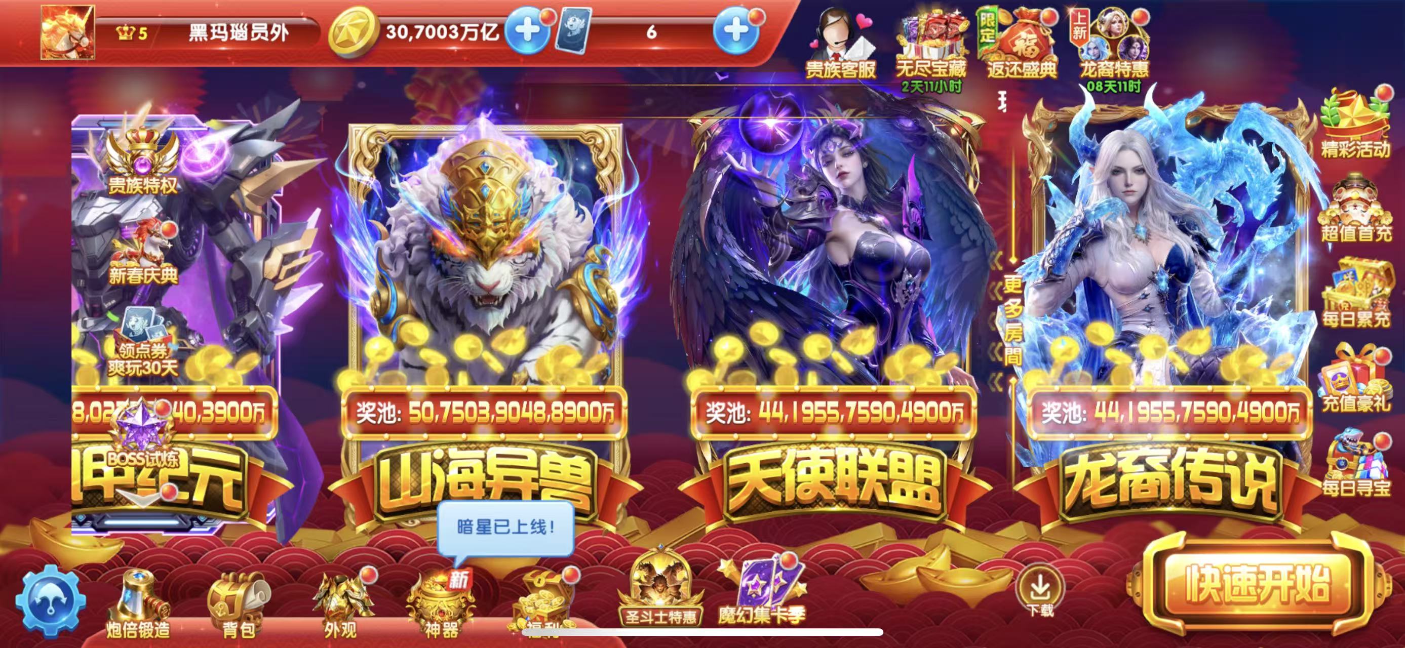 捕鱼大作战 娱乐纯玩 30兆15000亿炮巅峰27多战神翅膀圣斗士。