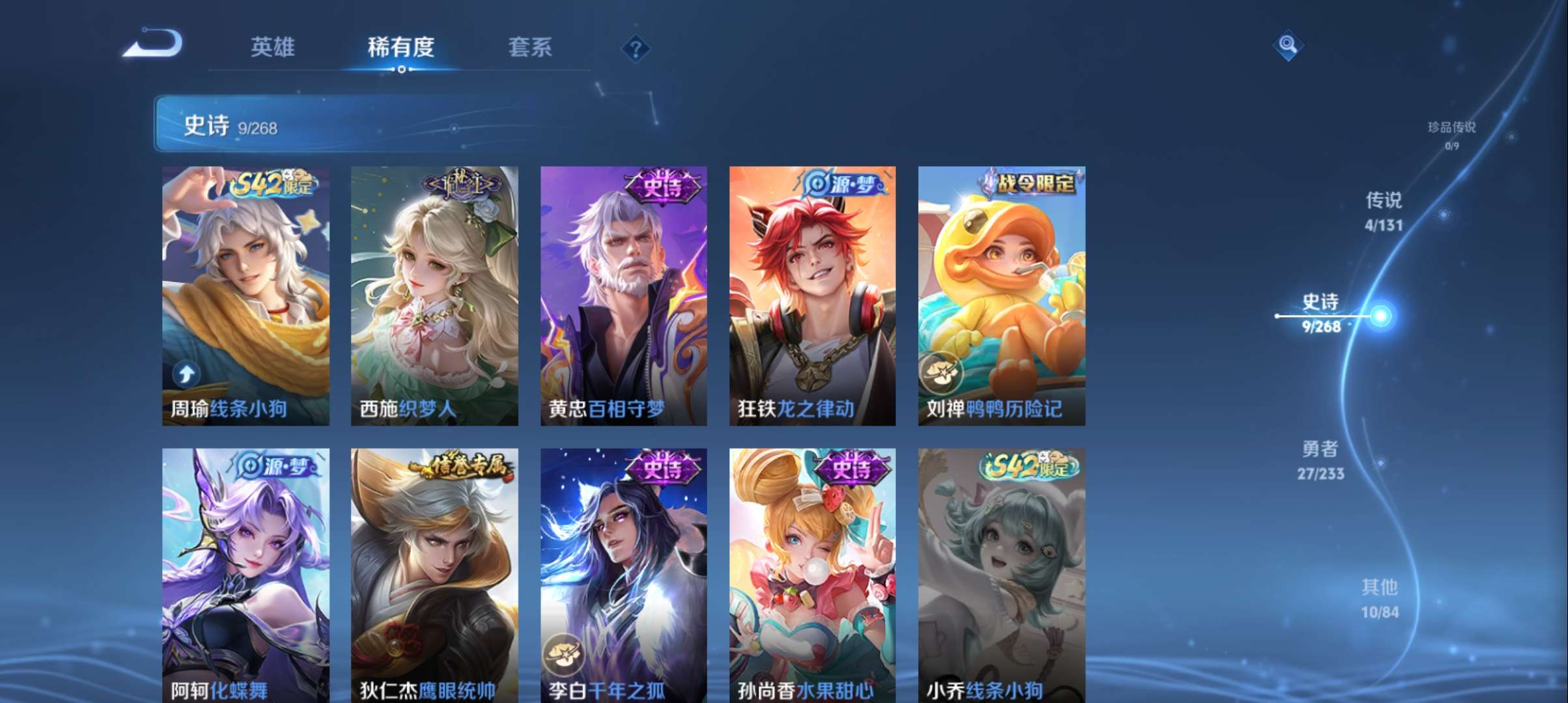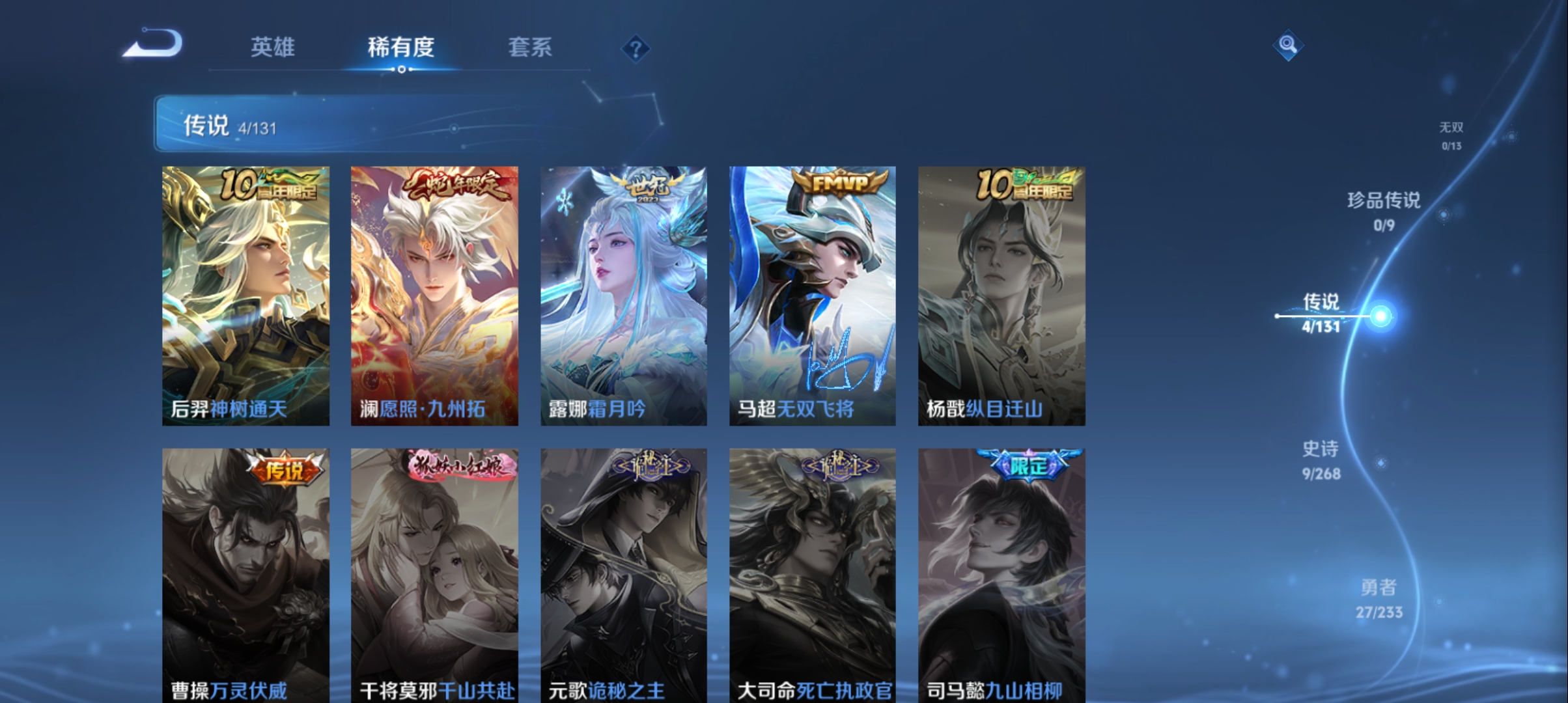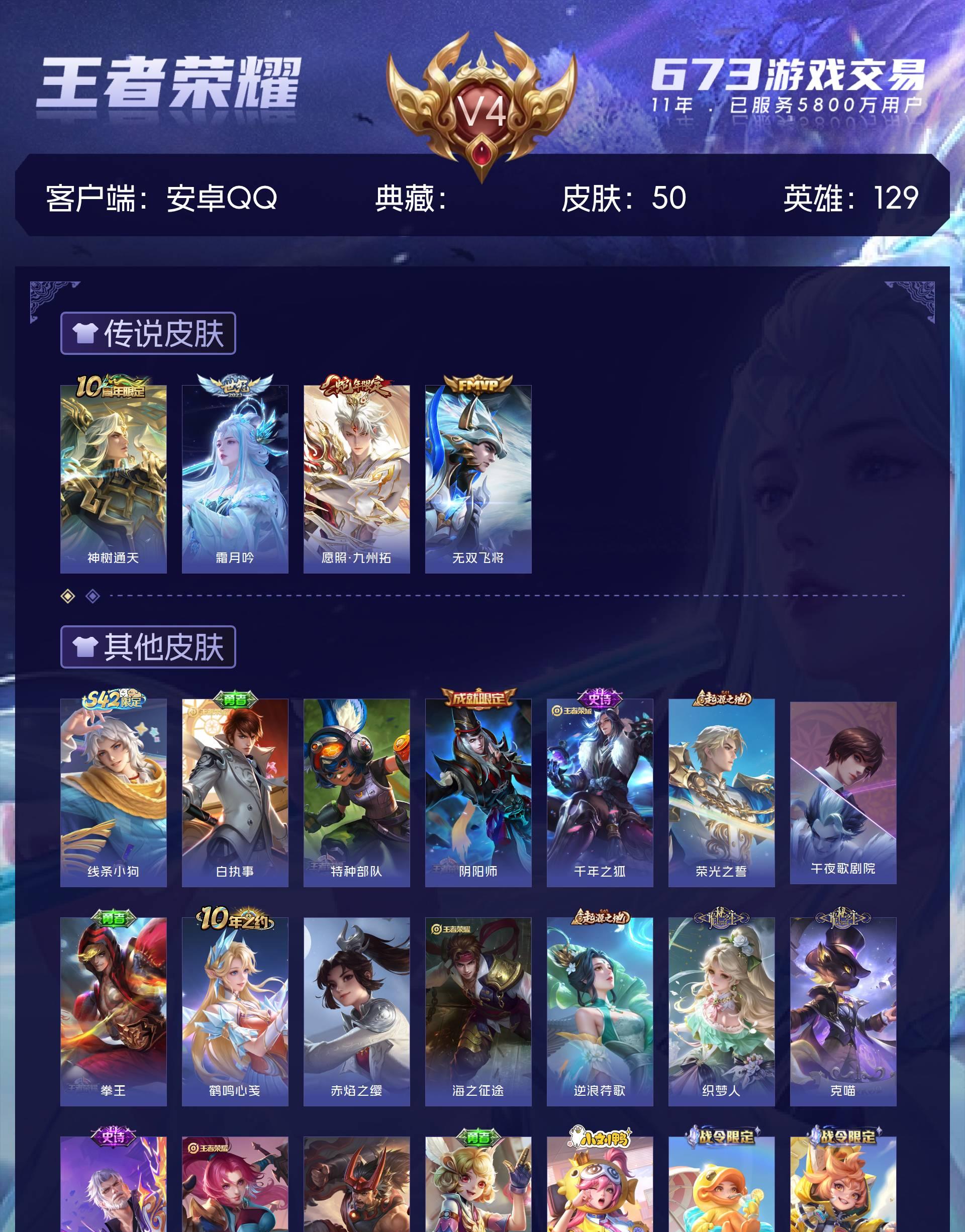 V4 皮肤50 英雄129 至尊星耀 传说4 其他皮肤47