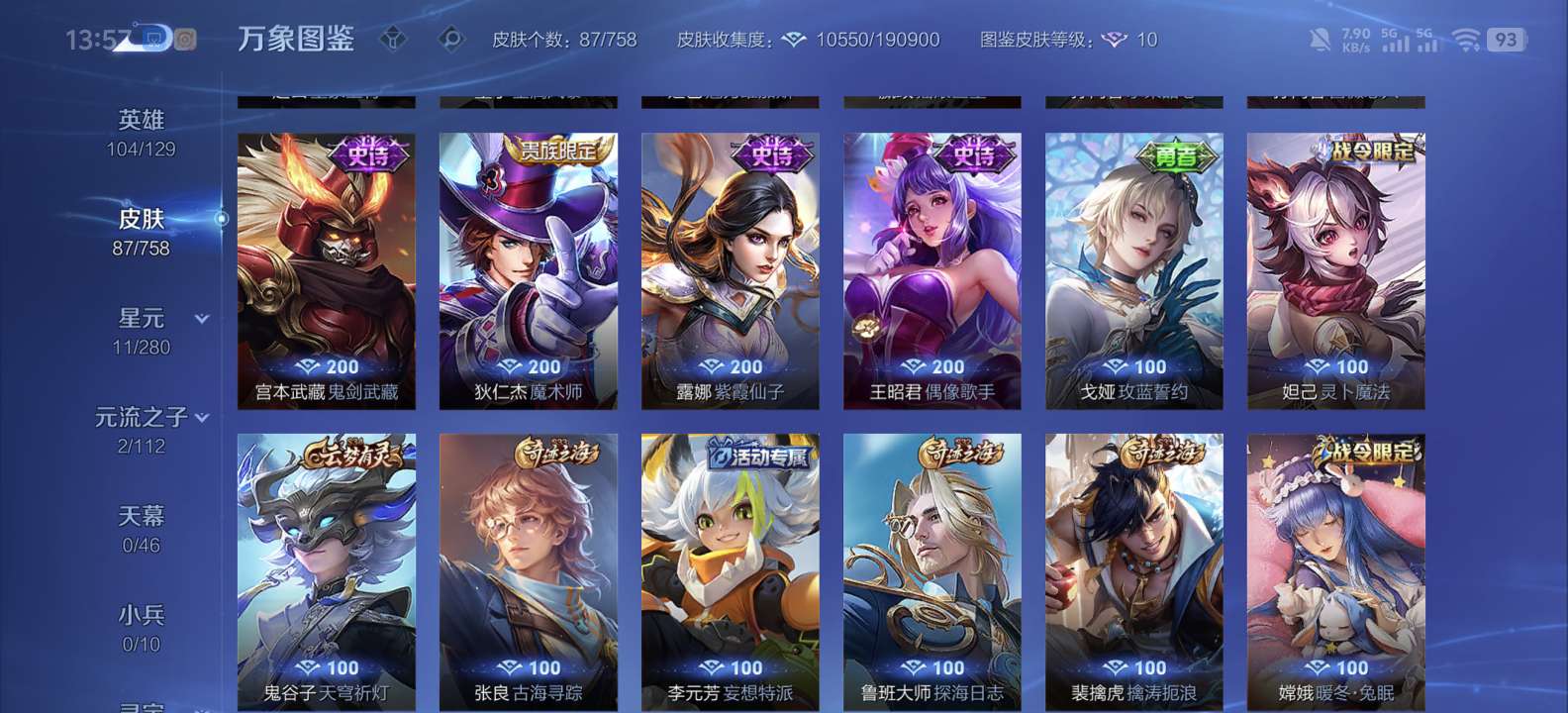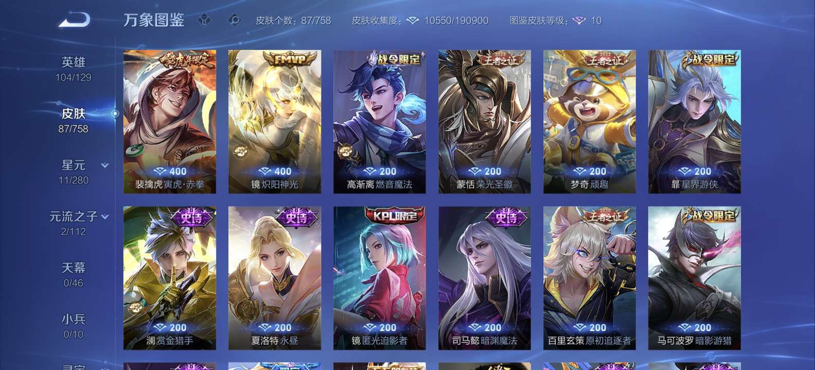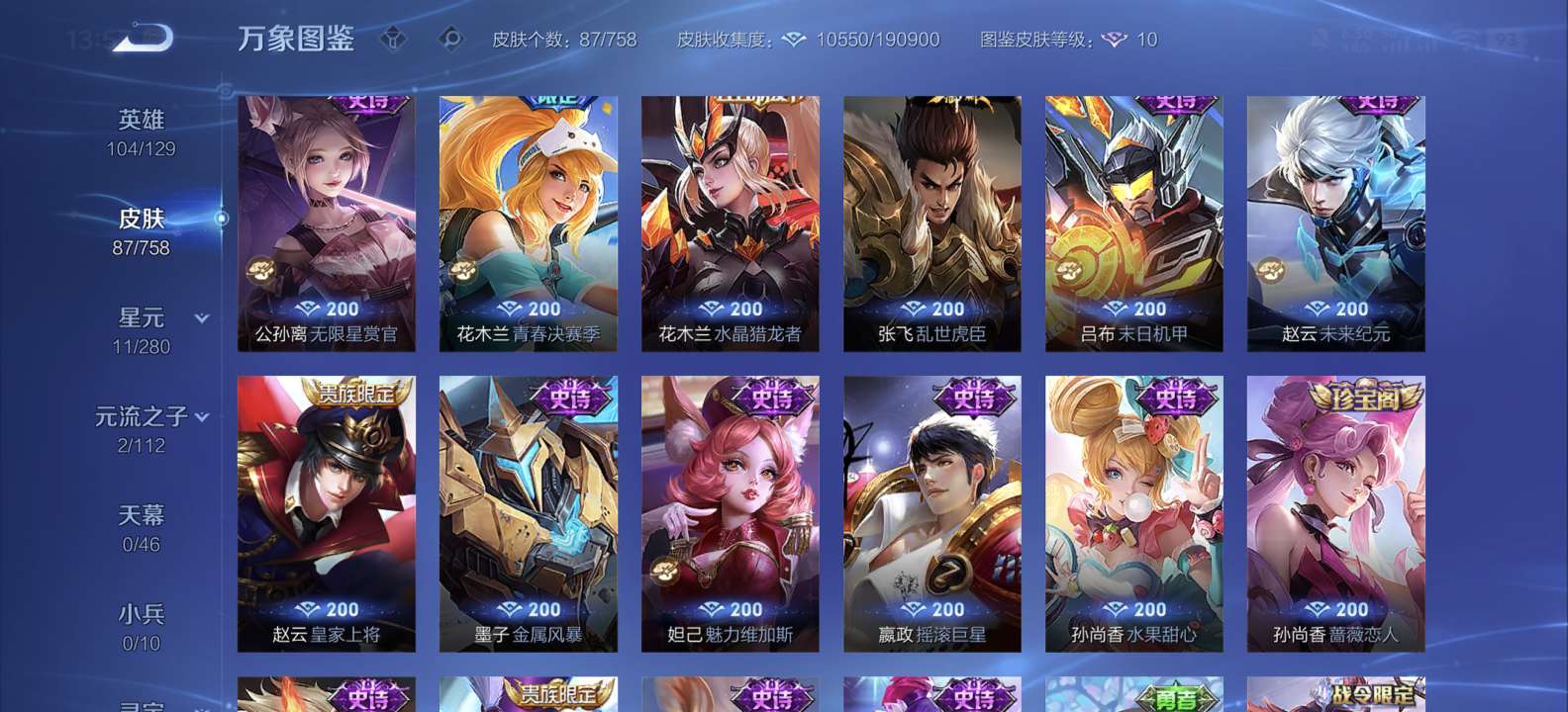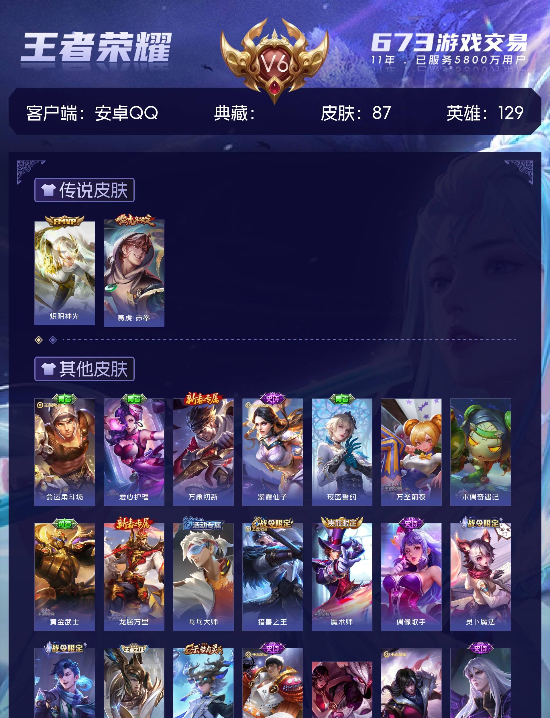 V6 皮肤87 英雄129 永恒钻石 传说2 其他皮肤91
