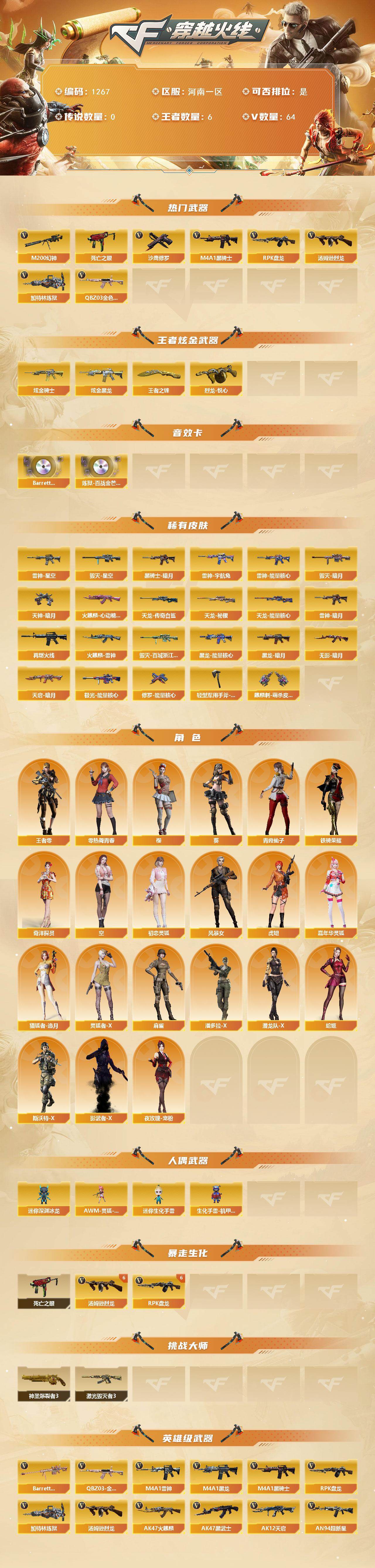 河南一区-64V-6王者-2炫金【热门武器】:QBZ03-金色蔷薇,M200