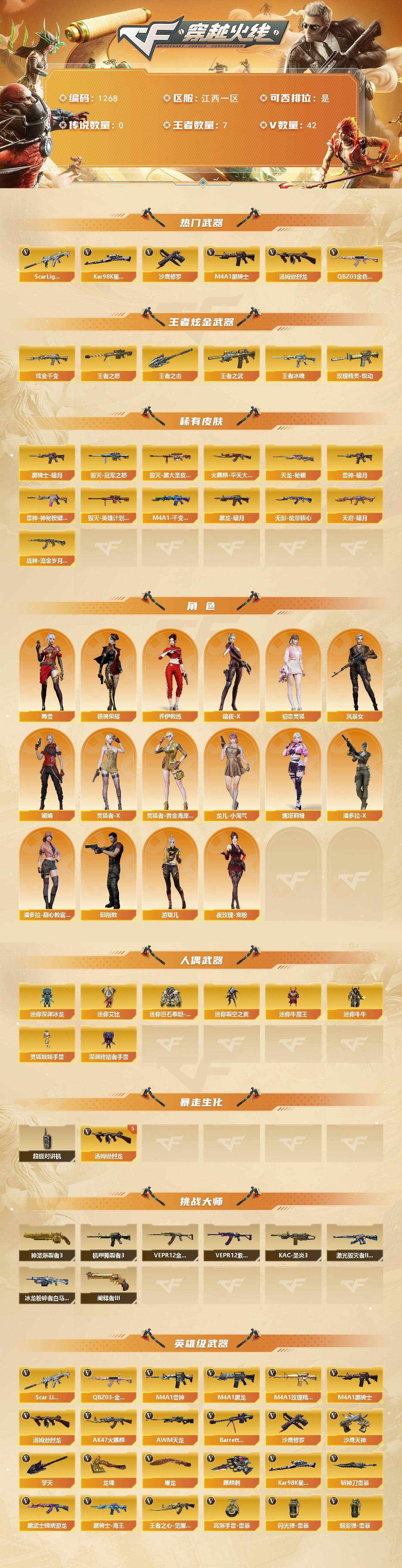 江西一区-42V-7王者-1炫金【热门武器】:QBZ03-金色蔷薇,Scar