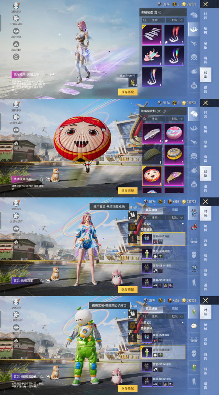 85套装/枪械6/装备163/载具1/战备87/王牌印记1/热力值41100/