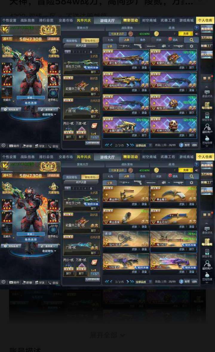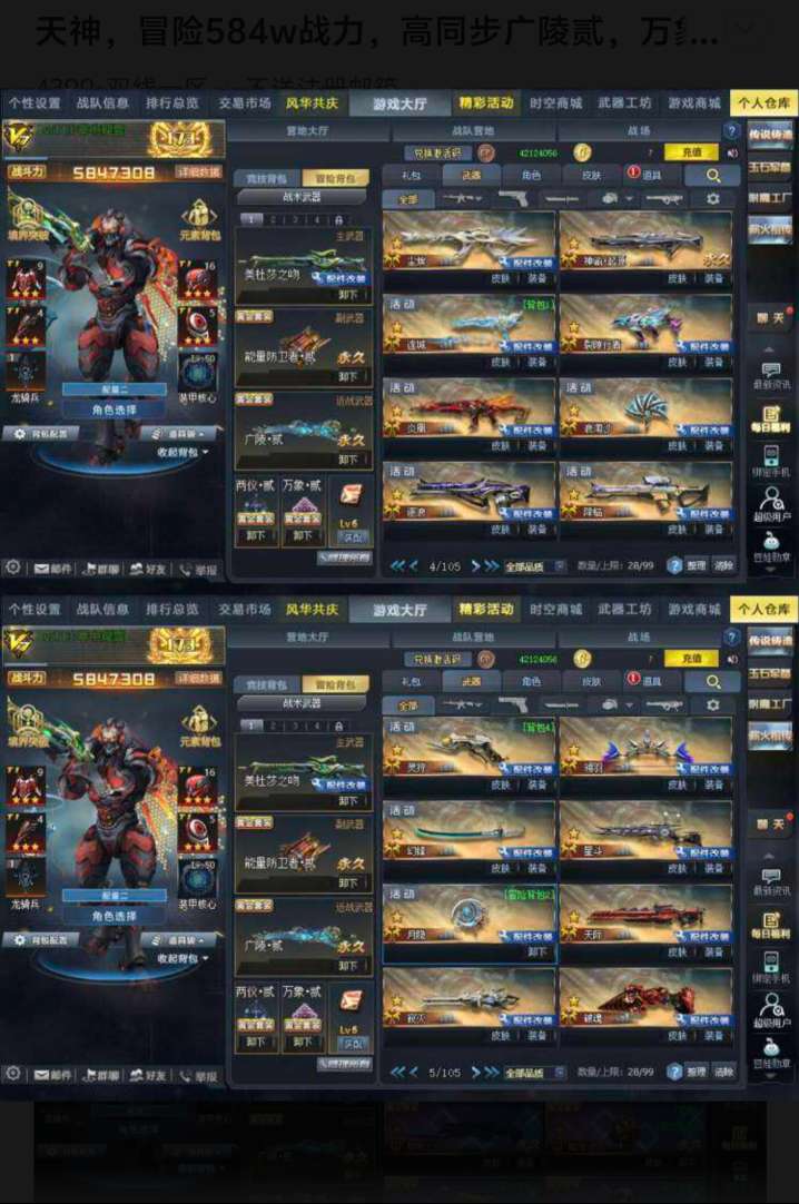 【竞技冒险双修】V7三传说屠魔双天神,冒险584w战力,高同步广陵贰,万象