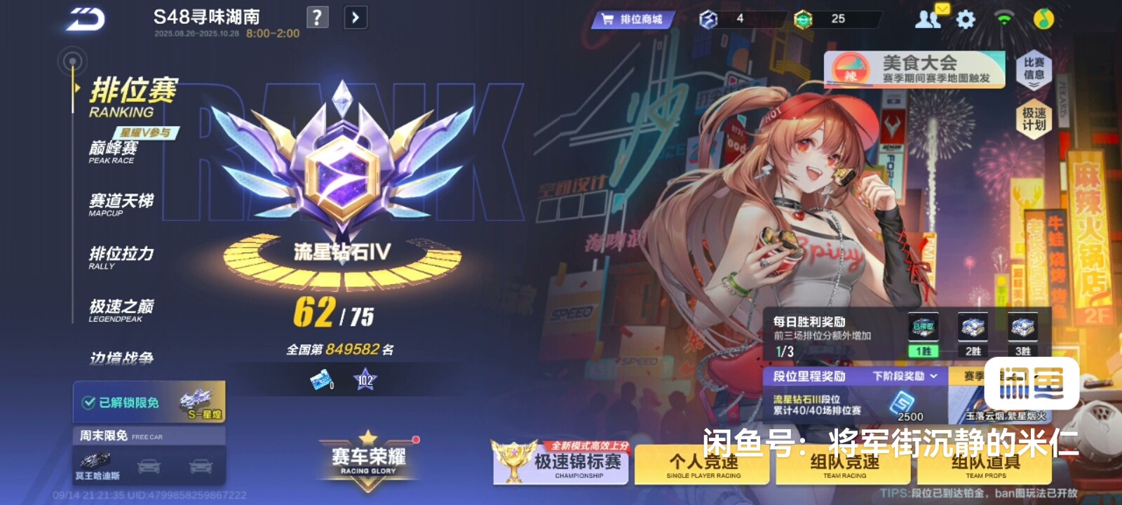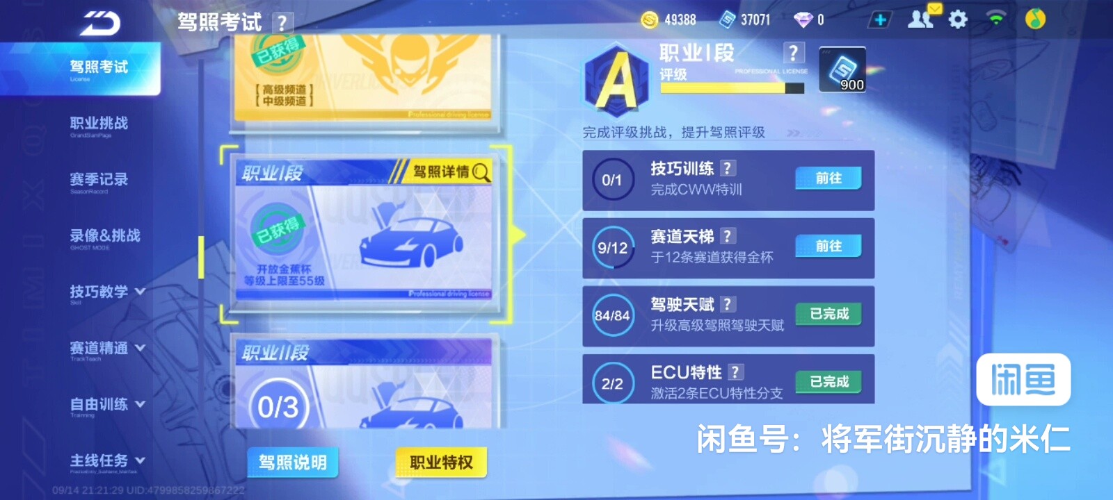 QQ飞车高级炸鱼号 钻石四段位 退游低价出 可二次实名认证 ECU全满级 五万多点券
