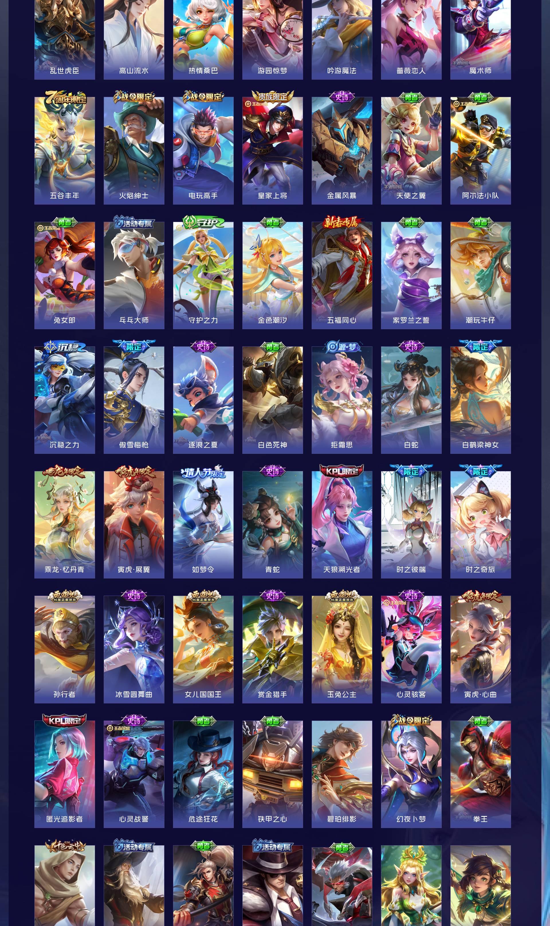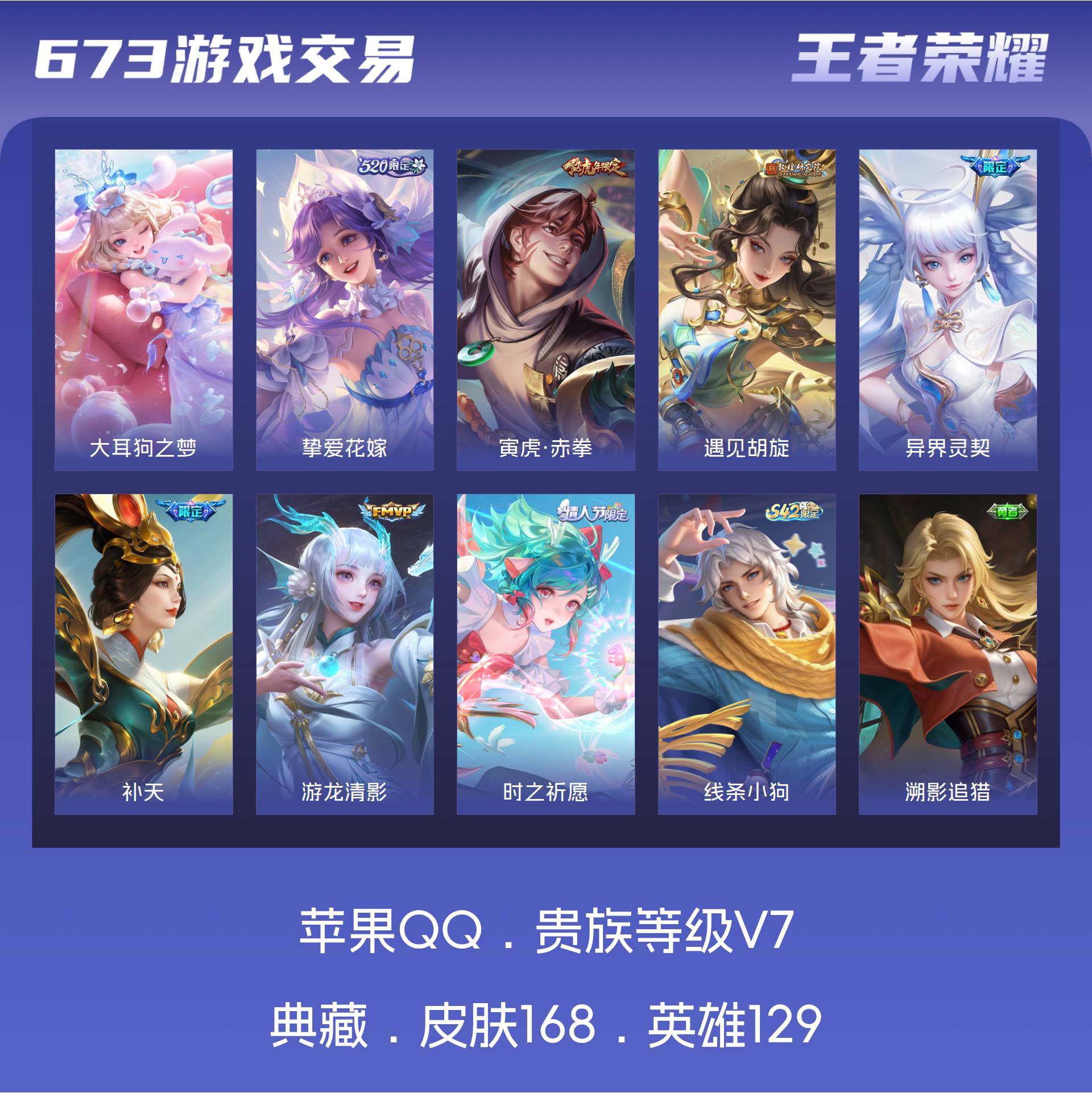 V7 皮肤168 英雄129 永恒钻石 珍品传说1 传说7 其他皮肤165