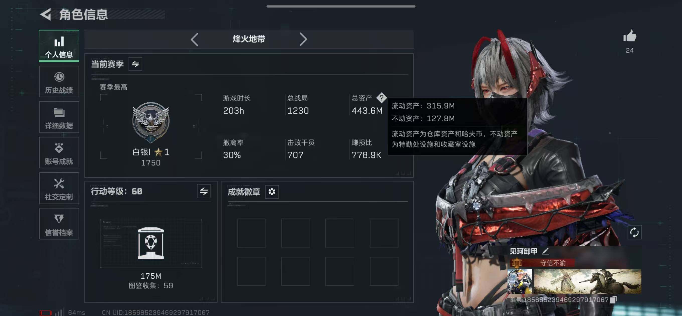 446m总资产-47861k哈伏币-60烽火等级-白银-26战场等级-上等兵,