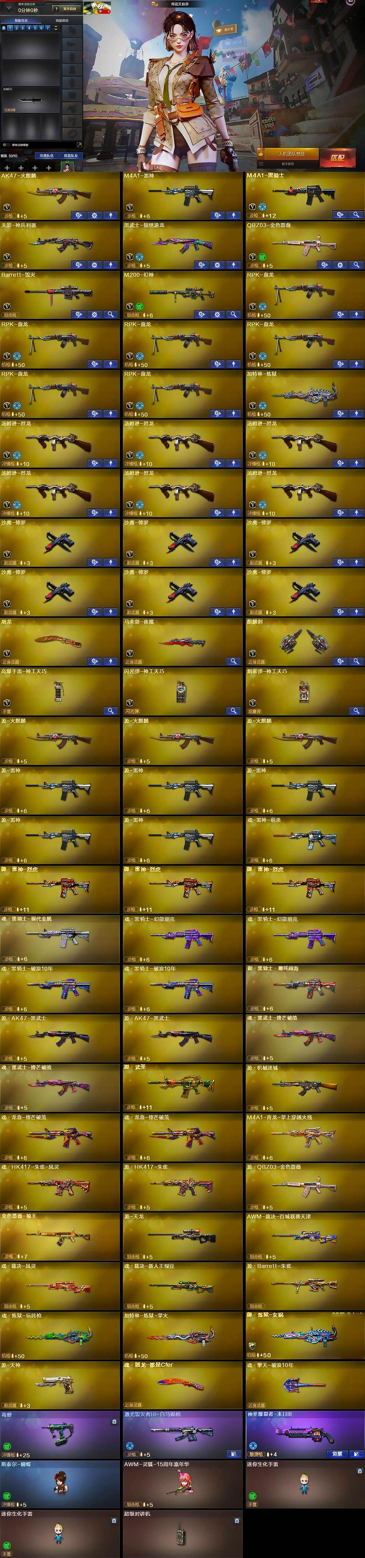 【热门武器】:QBZ03-金色蔷薇,M200-幻神,毒蜂,M4A1-黑骑士,汤姆逊-烈龙*6,RPK-盘龙*6,加特林-炼狱,斯泰尔-蝴蝶,沙鹰-修罗*6