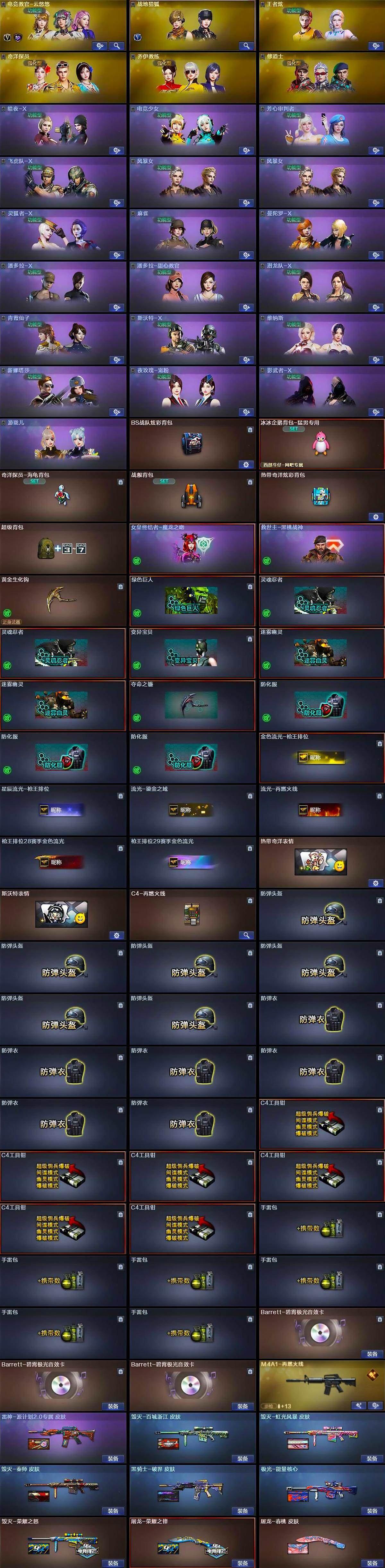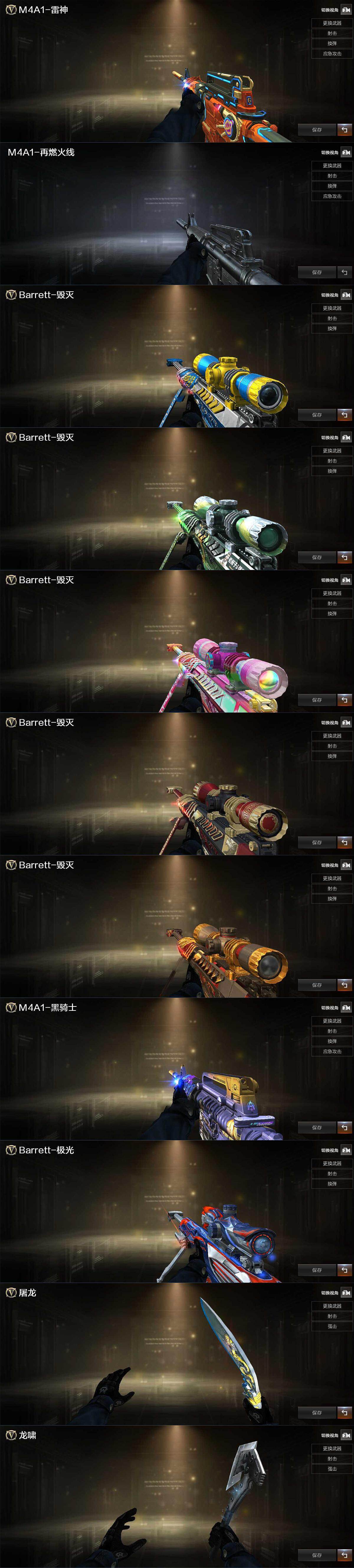 【皮肤】:雷神-源计划2.0专属 皮肤,M4A1-再燃火线,毁灭-荣耀之怒,毁灭-百城浙江 皮肤,毁灭-虹光风暴 皮肤,毁灭-秦师 皮肤,毁灭-英雄计划 皮肤,黑骑士-破界 皮肤,极光-能量核心,屠龙-荣耀之锋,屠龙-春桃 皮肤,轻型军用手斧