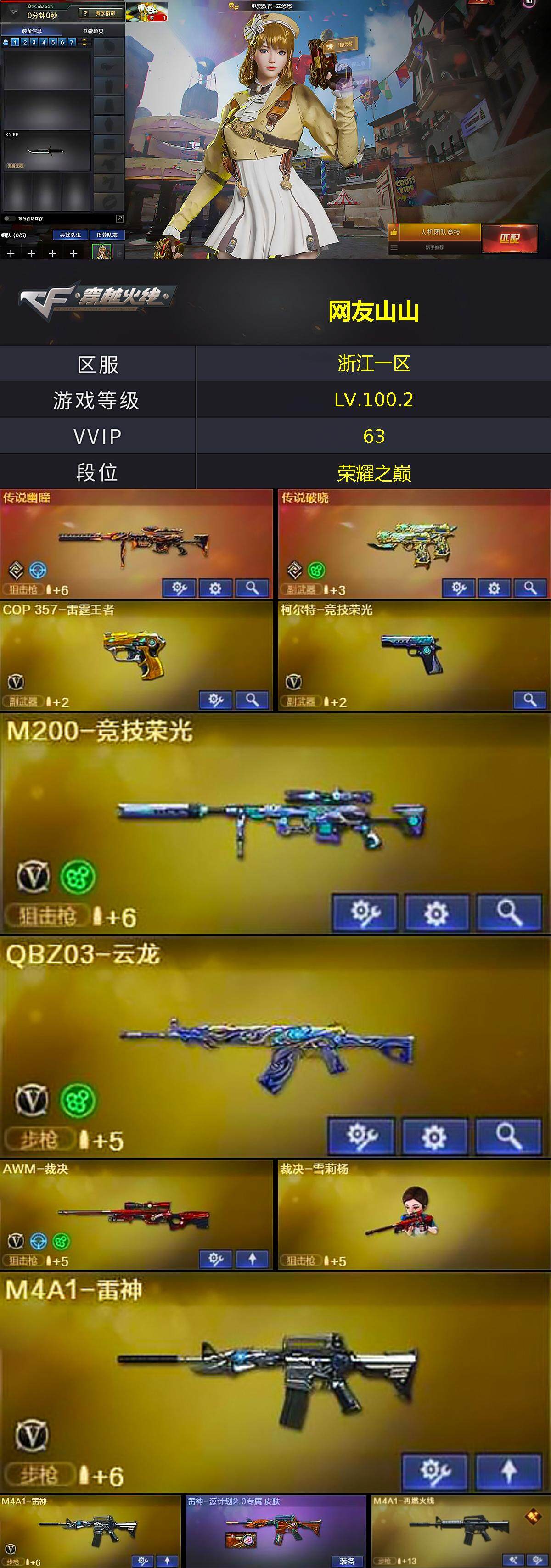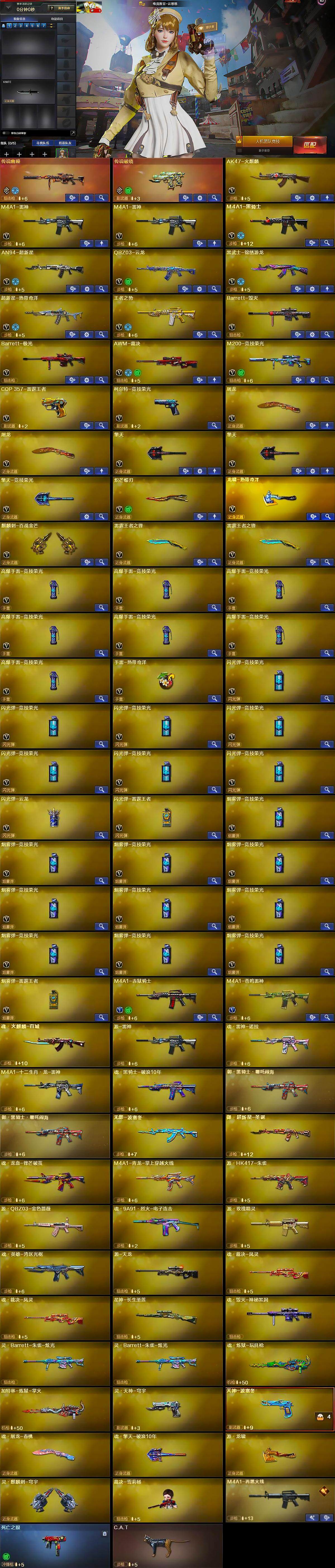 【热门武器】:传说幽瞳,传说破晓,M200-竞技荣光,死亡之眼,金色小号,C.A.T,M4A1-黑骑士,裁决-雪莉杨,炽芒蝶刃