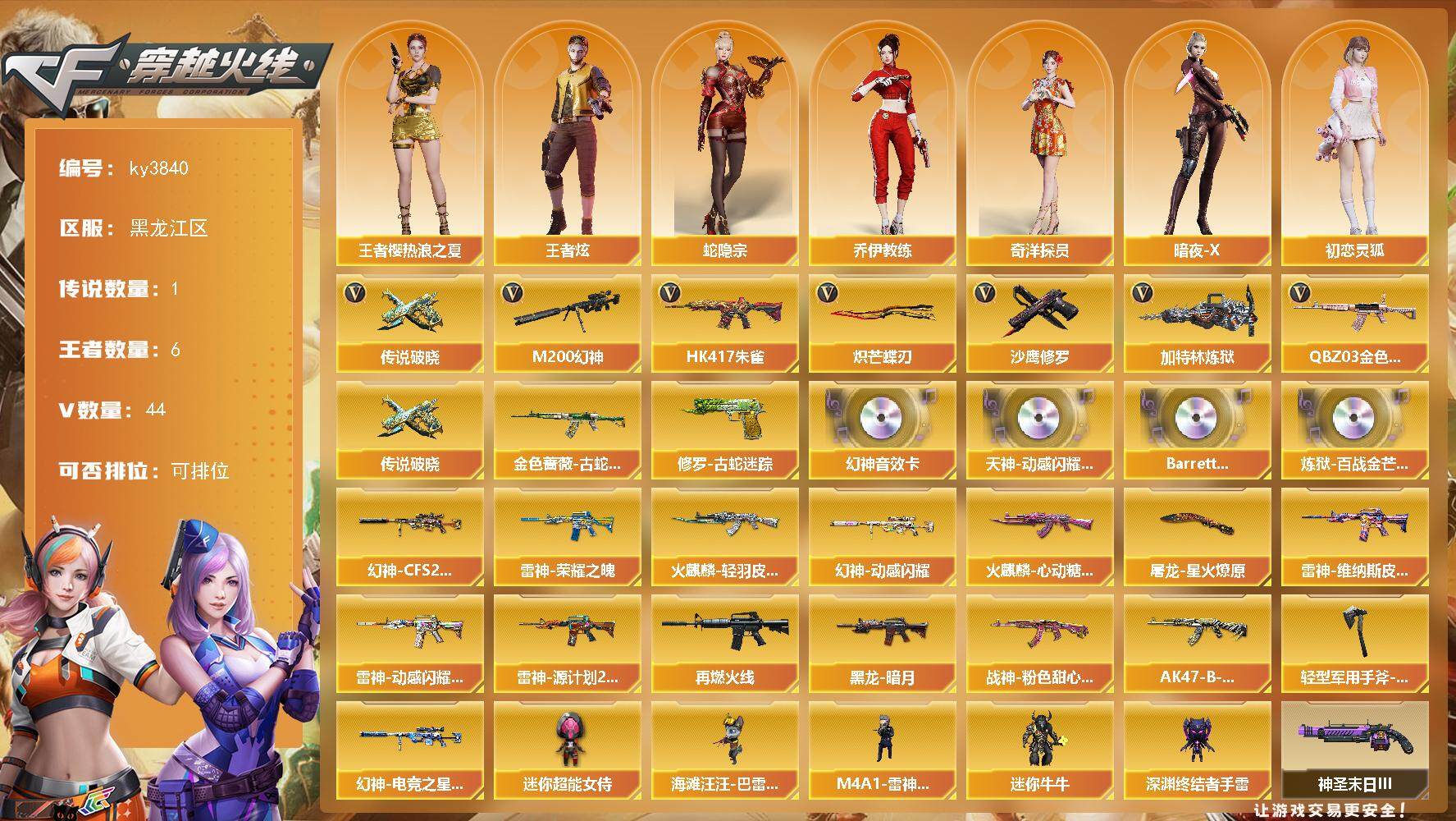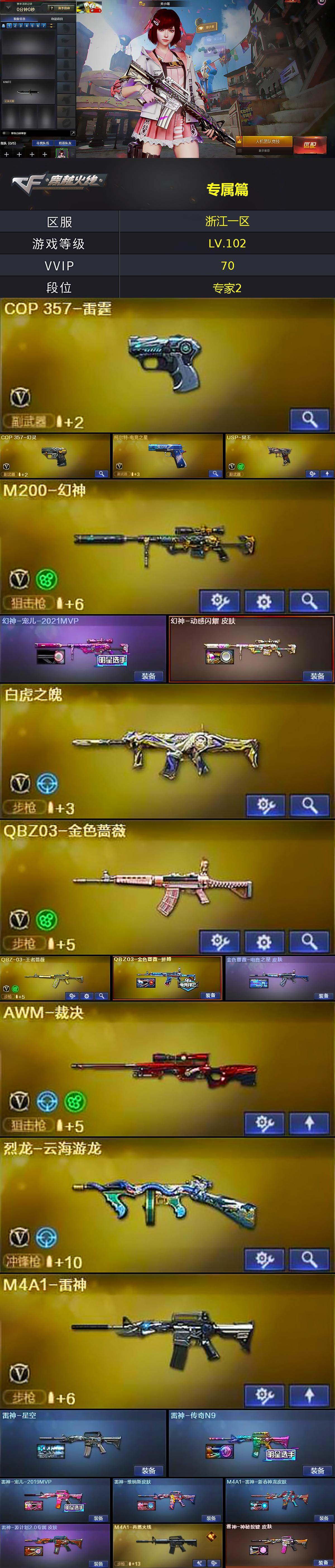 浙江一区-67V-5王者-0炫金【热门武器】:QBZ03-金色蔷薇,M200