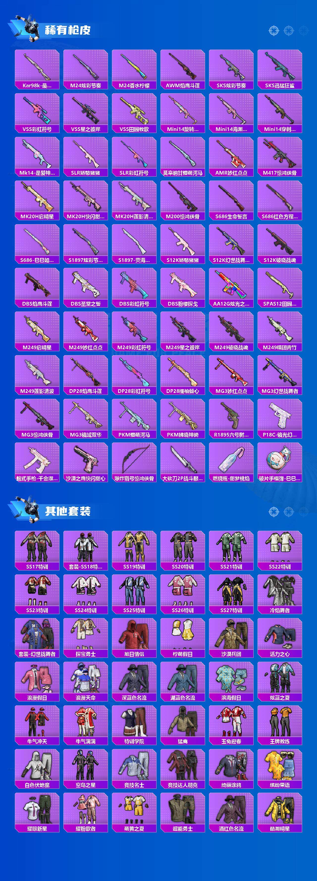 【粉色枪皮等级】:M416-风花雪月(七级),Kar98K-巳巳如意(五级),AMR-炫光之旅(七级),DP