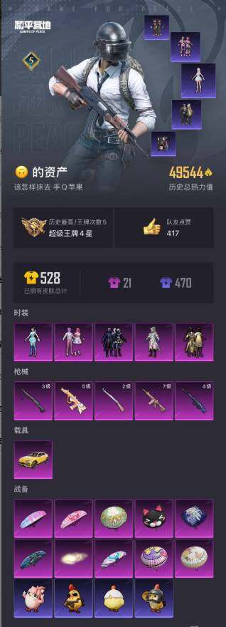 【A1254】苹果 【满级心之恋语】手Q-5粉装-5特效枪-1载具-1粉色飞行器-49569热力值-5王牌印记-135套装-140枪皮
