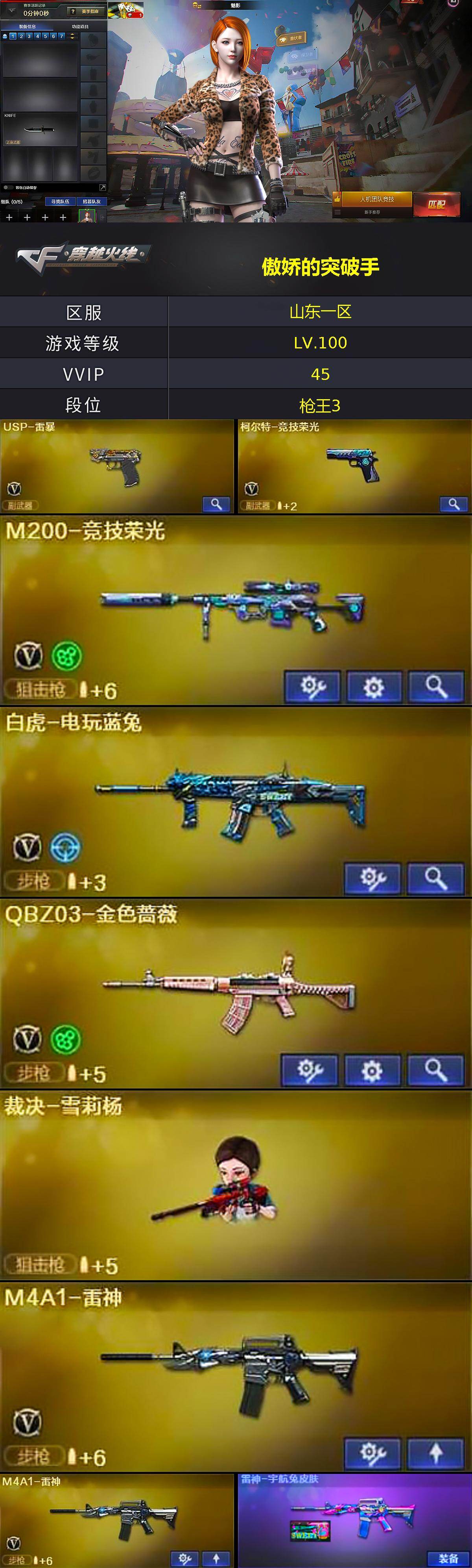 山东一区-44V-0王者-0炫金【热门武器】:QBZ03-金色蔷薇,M200