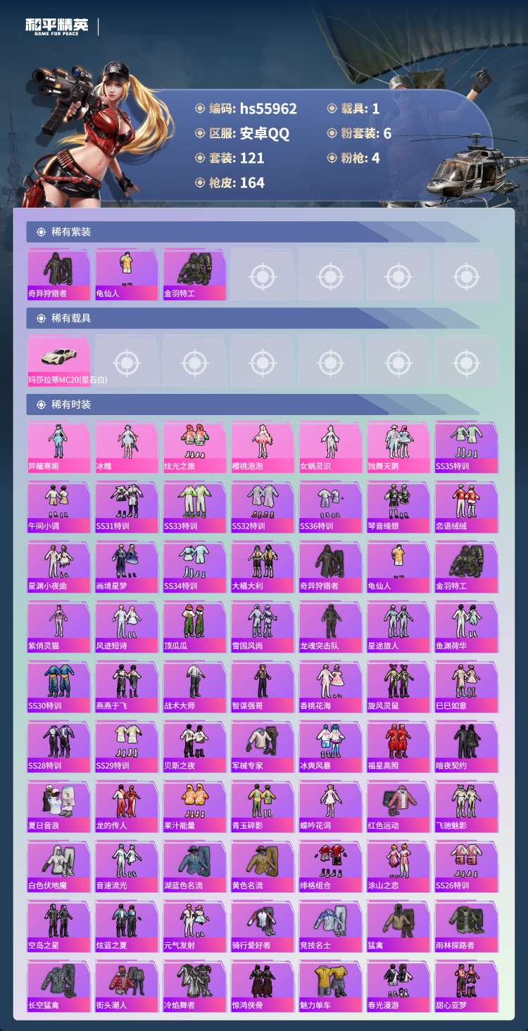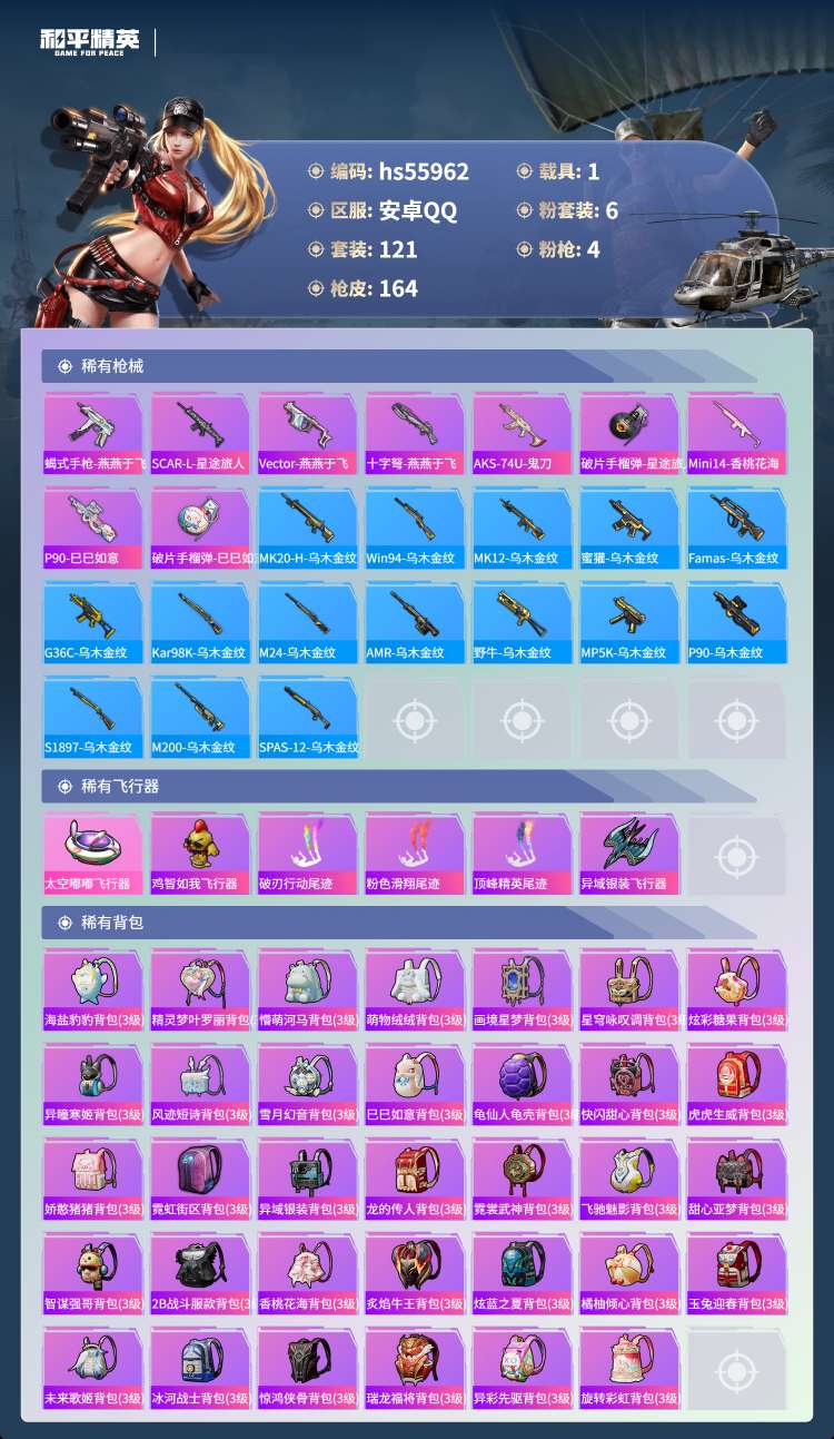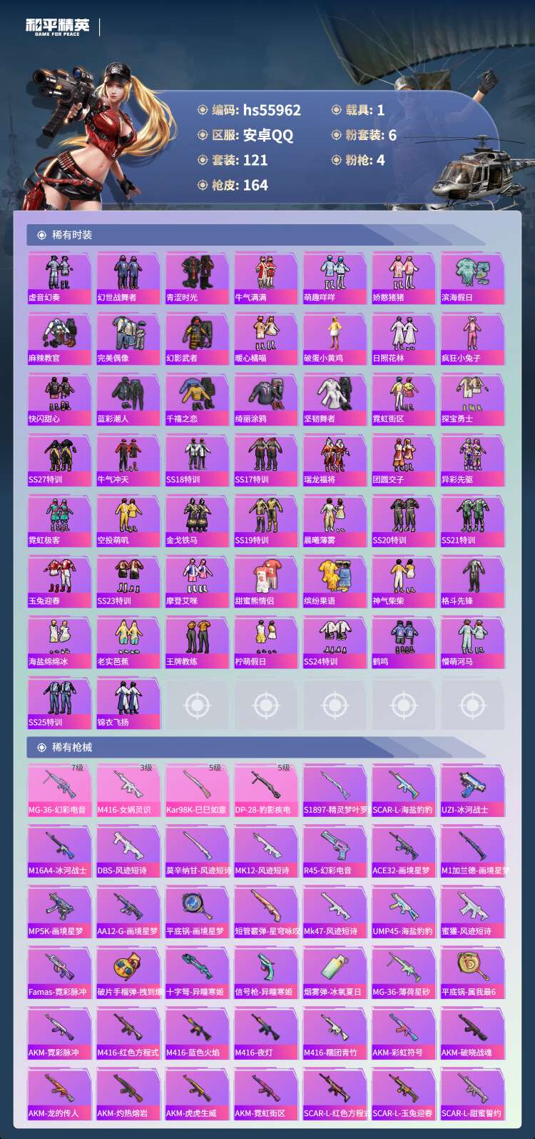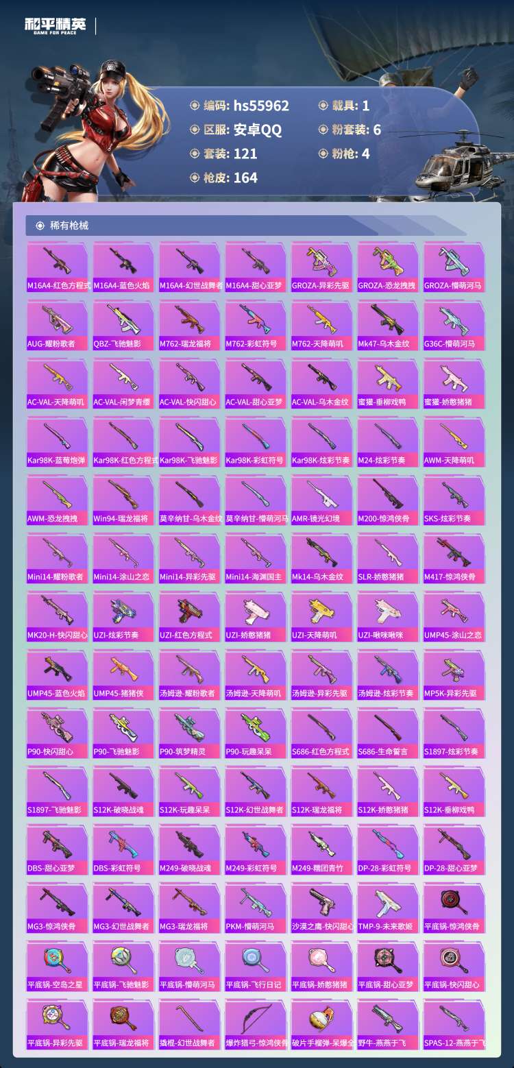 hs55962 安卓手Q-7王牌印记-6粉装-4特效枪-1载具-51272热力值-121套装-164