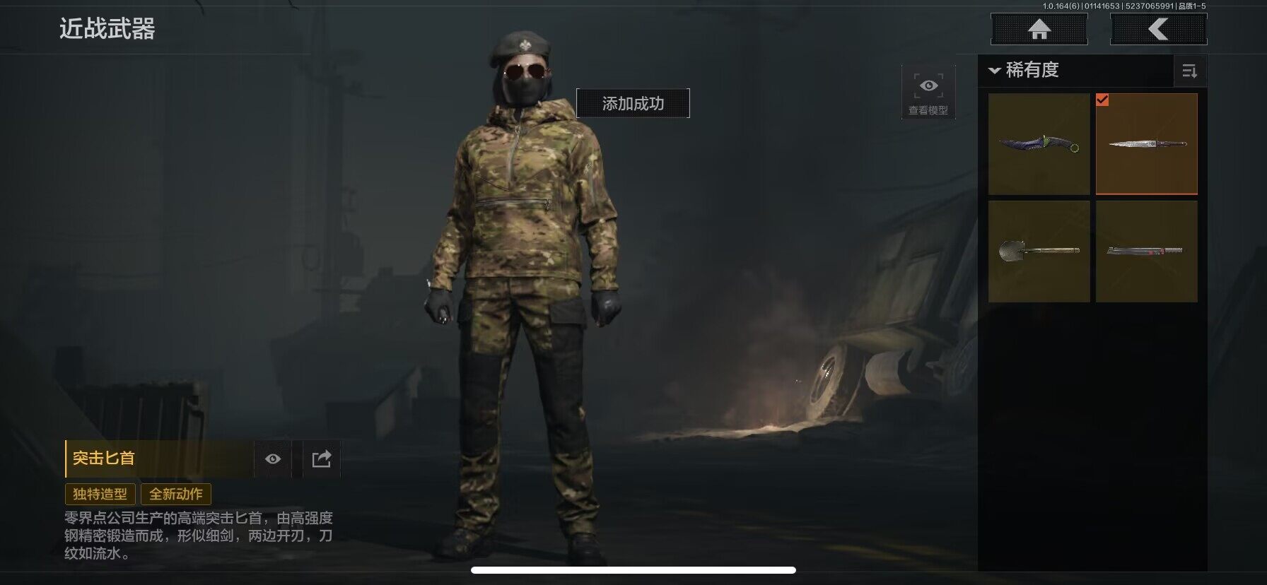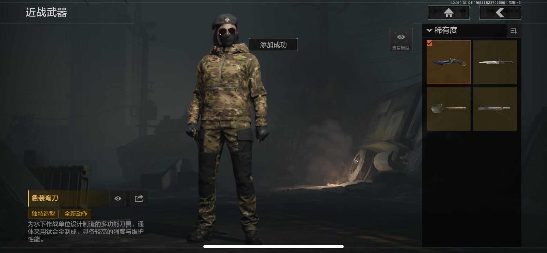 仓库价值(百万):3/急袭弯刀/突击匕首/工兵铲/来战开山刀
