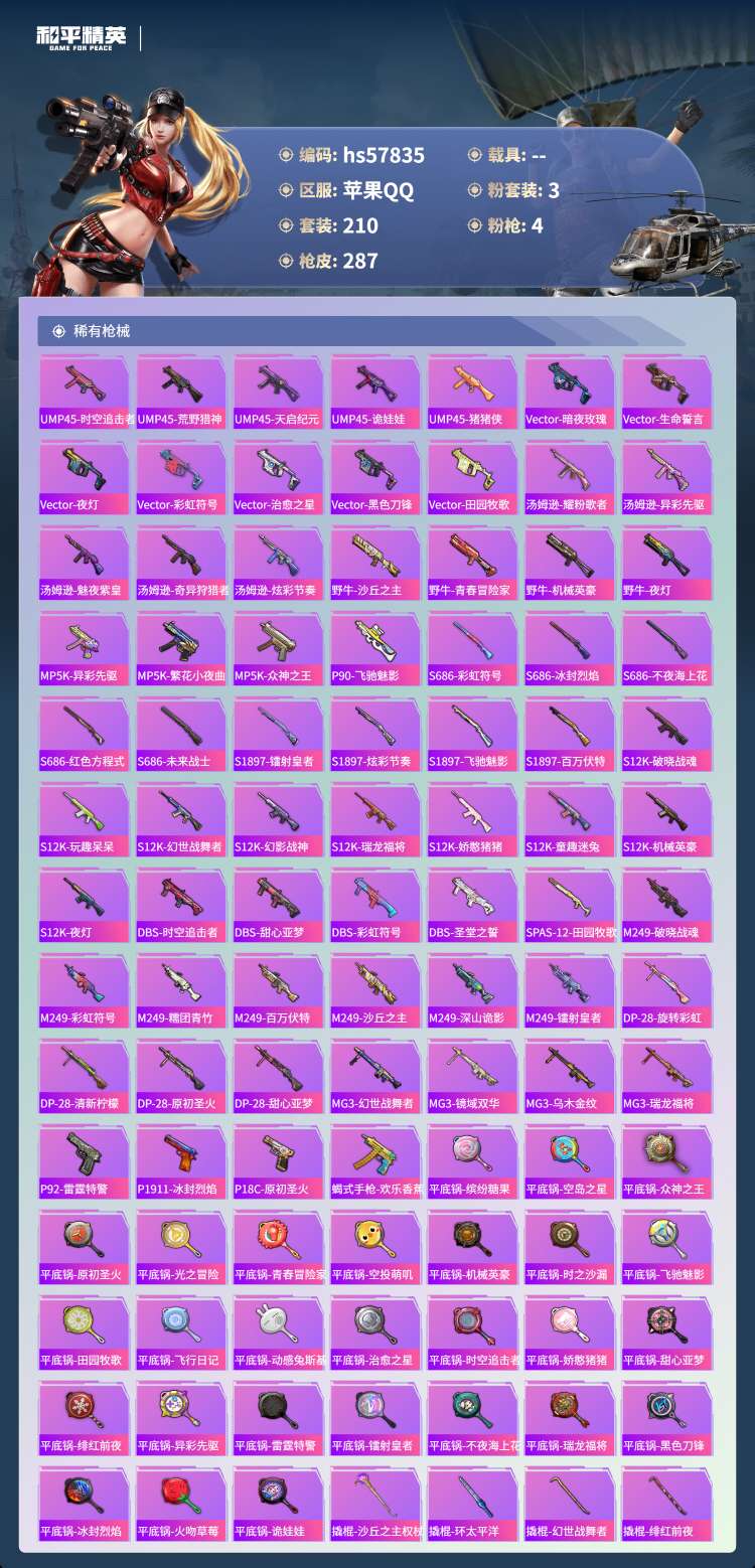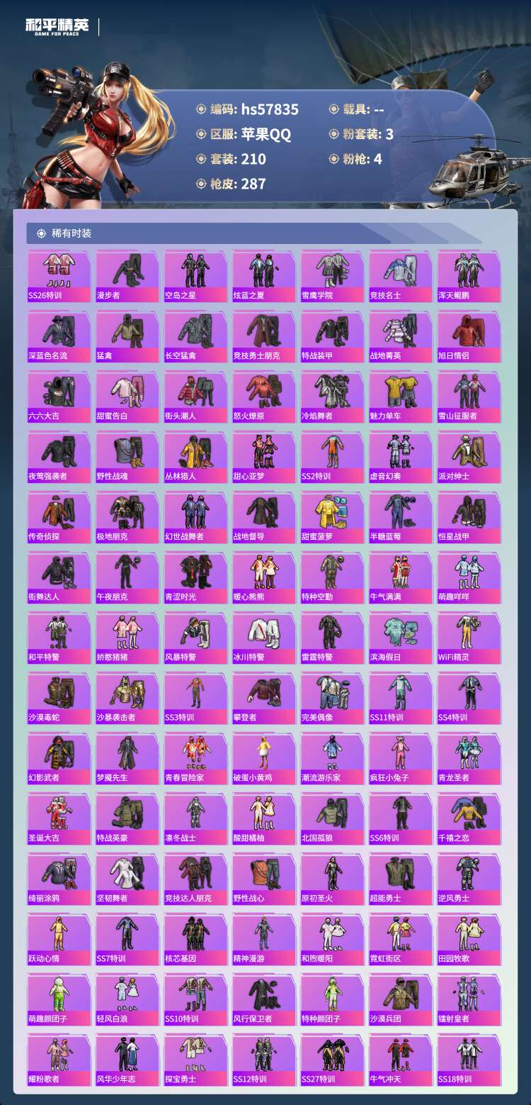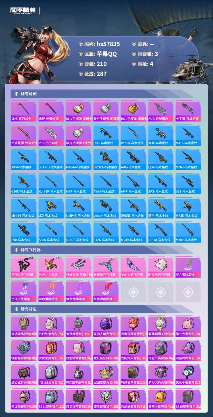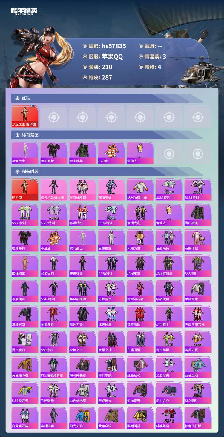 hs57835 苹果手Q-26王牌印记-有战神框-1红装-3粉装-4特效枪-84544热力值-210