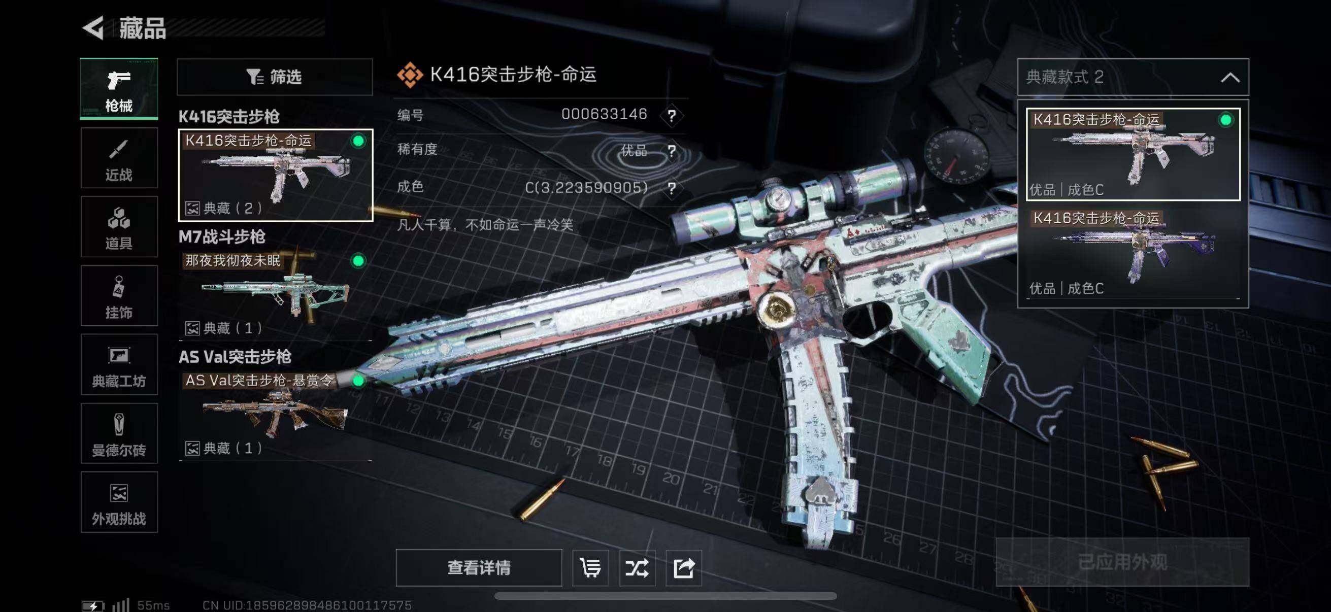 【典藏外观】:K416突击步枪-命运*2,M7战斗步枪-棱镜攻势S2,AS Val突击步枪-悬赏令