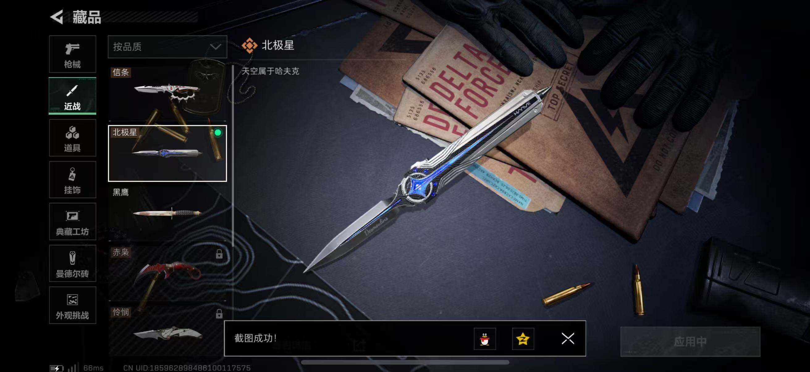 【近战皮肤】:近战-北极星,近战-信条,近战-黑鹰