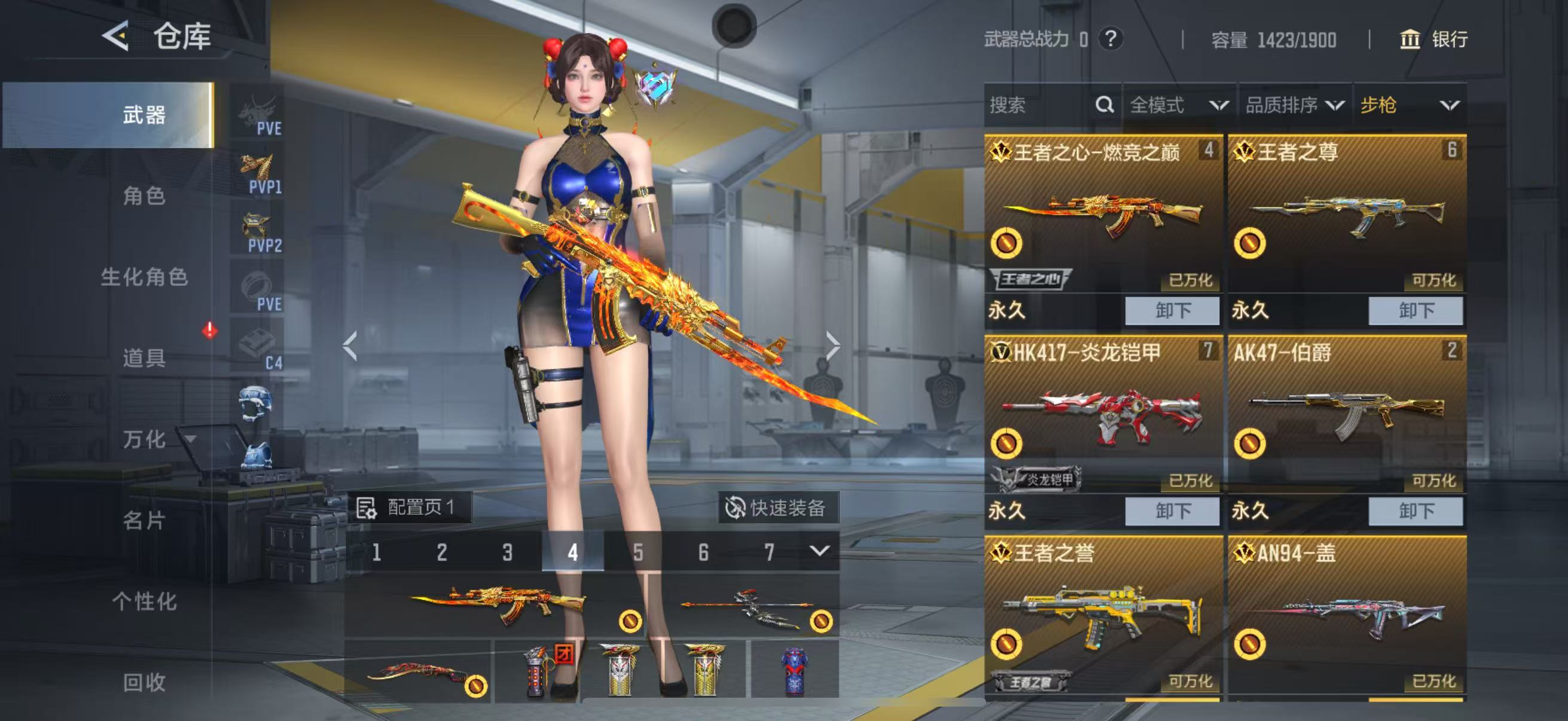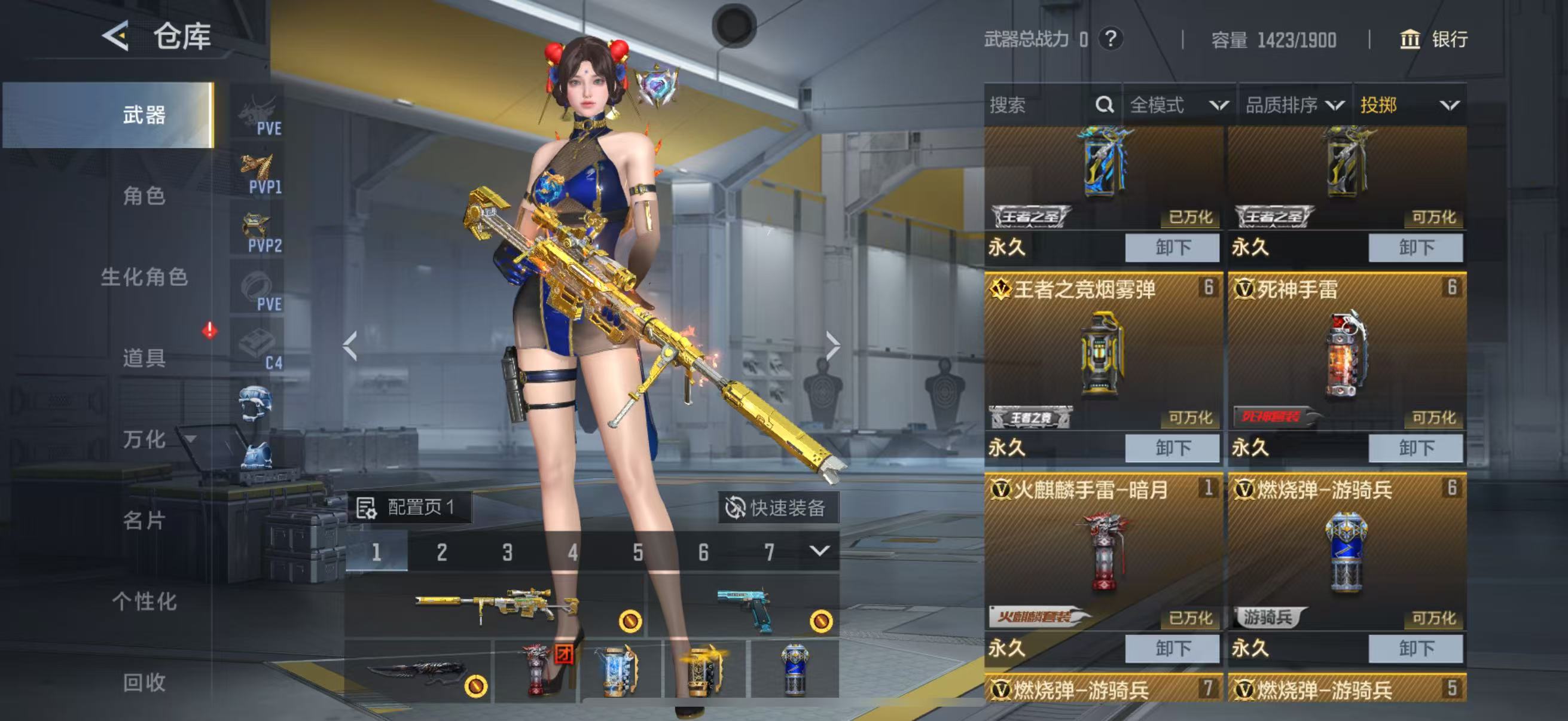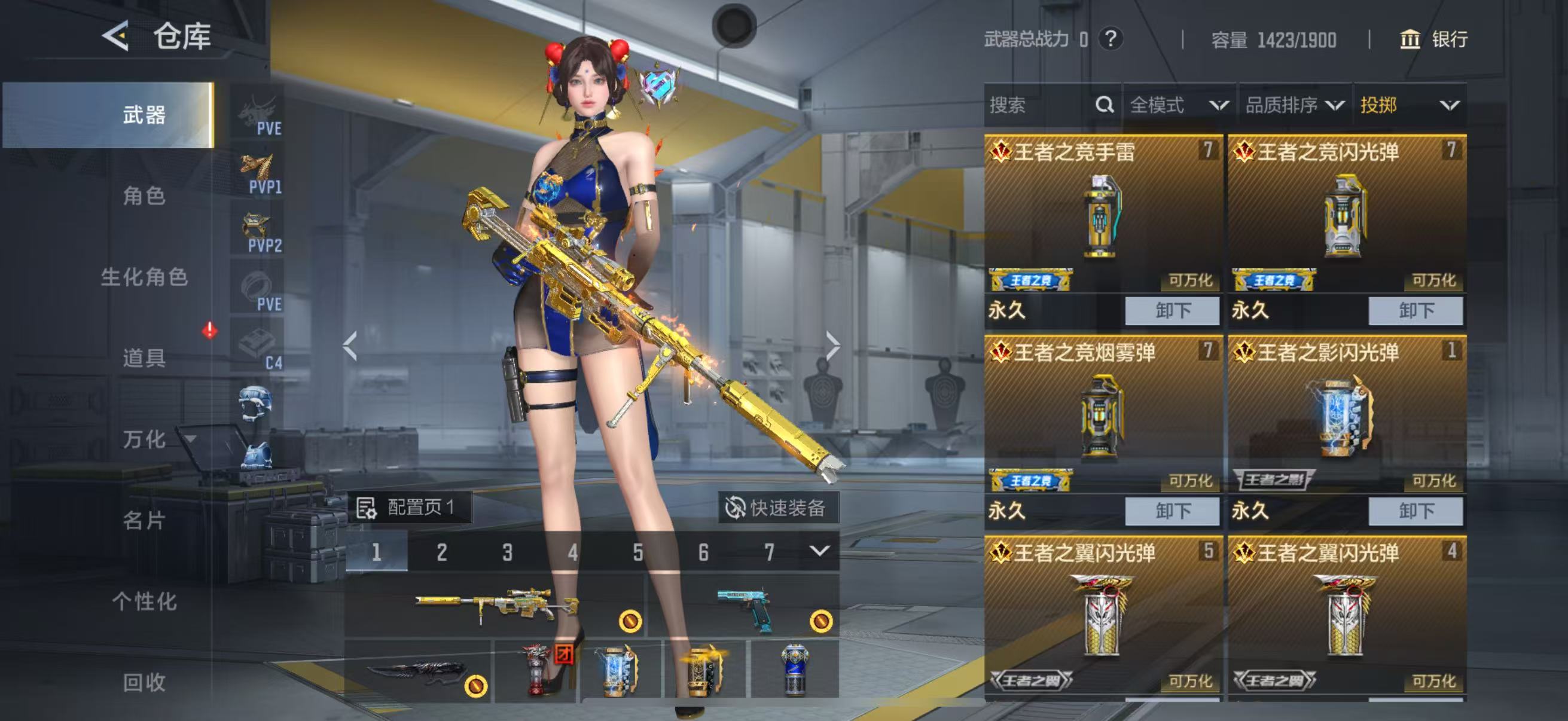 王者幻神 王者之心 其余武器看图吧 很多没截出来 投掷的王者烟 闪和燃烧瓶都是齐全的 无防沉迷随便玩