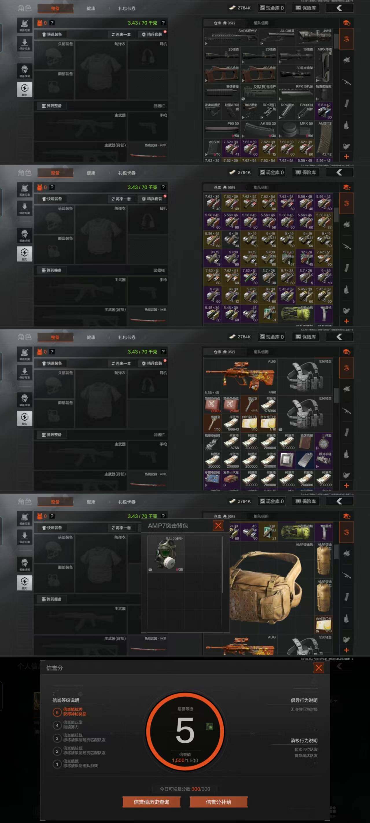 z50,3把刀赢家匕首补牢,13把紫皮枪,仓库4.8M,科恩币3784k,赢家