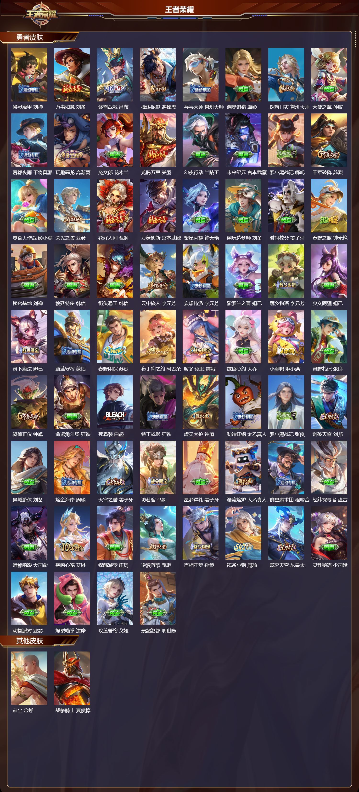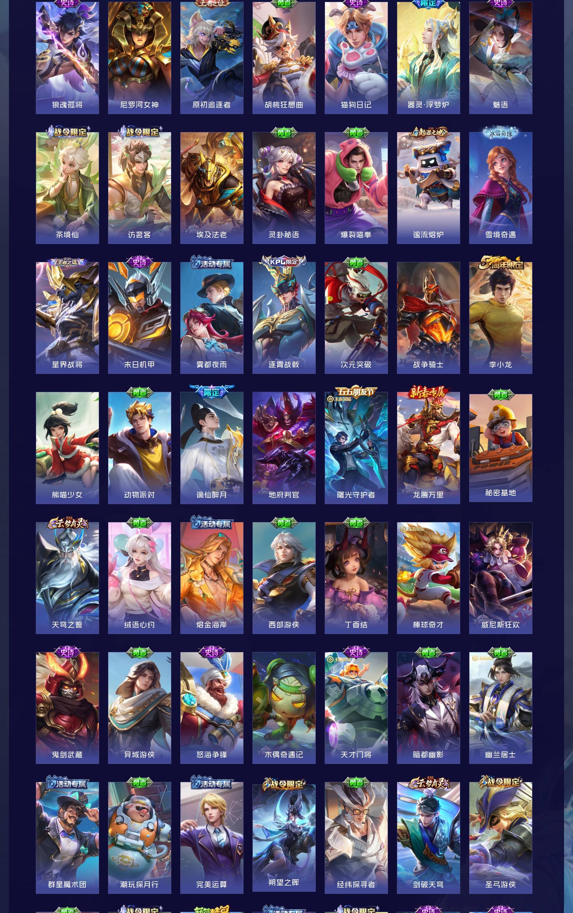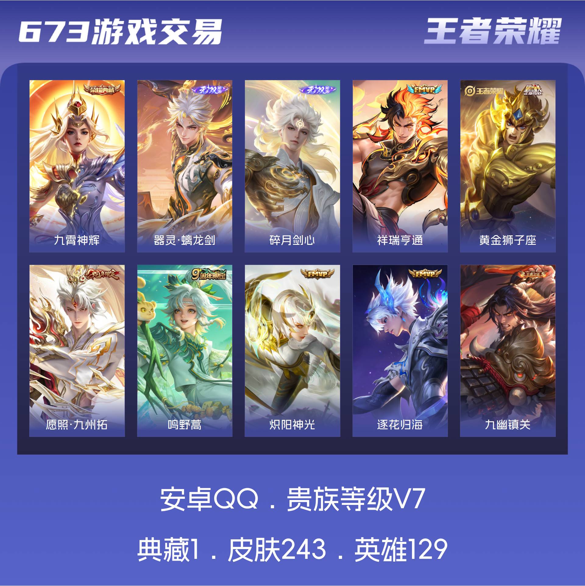 V7 皮肤243 英雄129 非凡王者 荣耀典藏1 无双皮肤2 传说6 其他皮肤240
