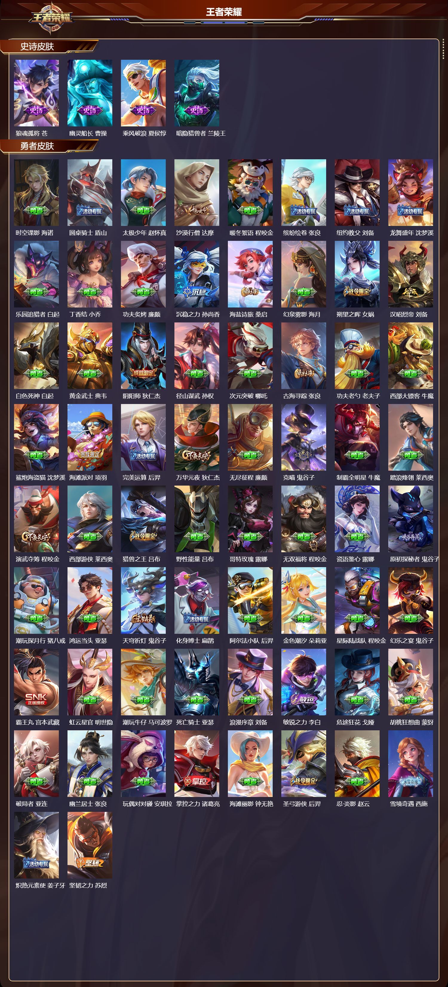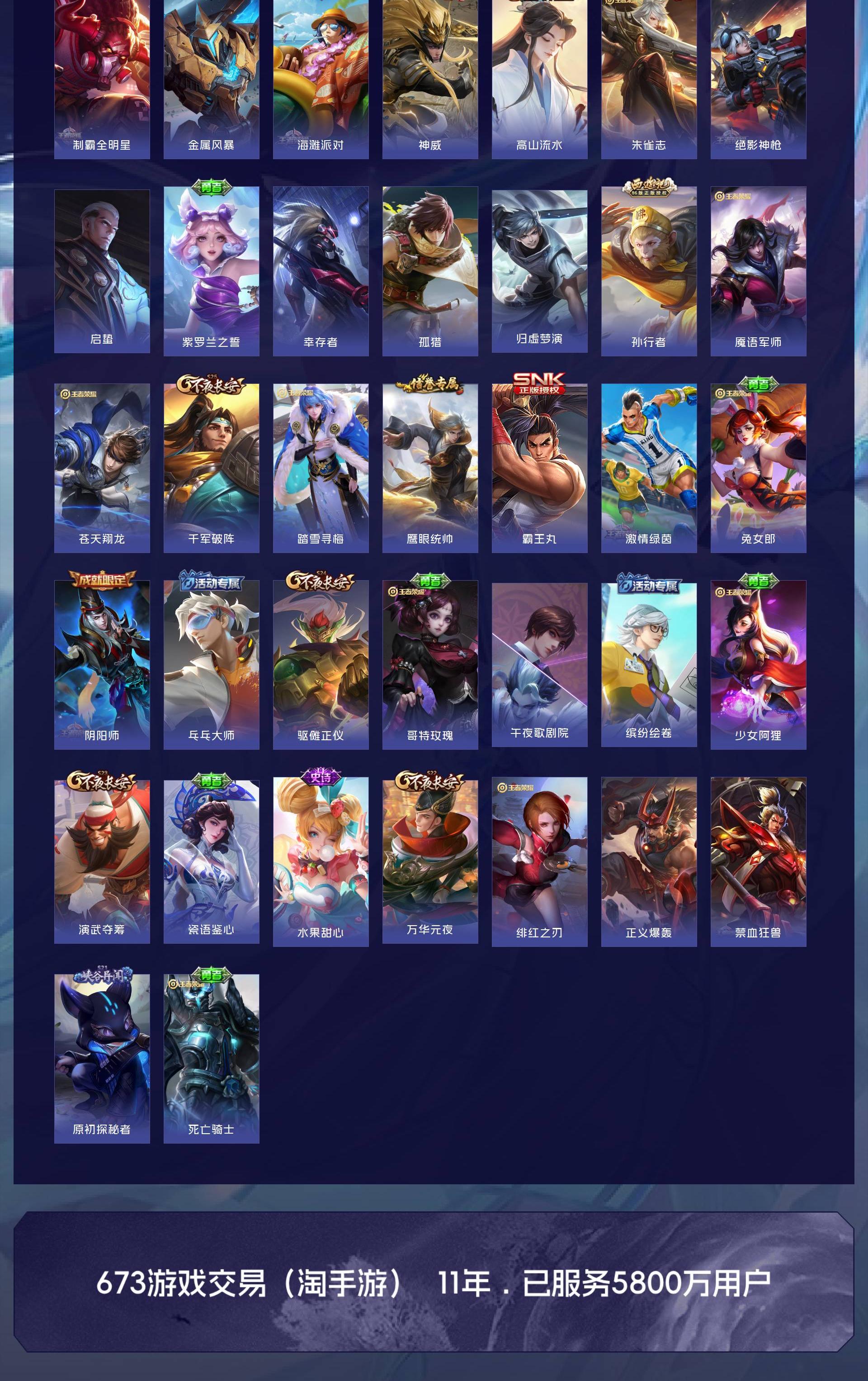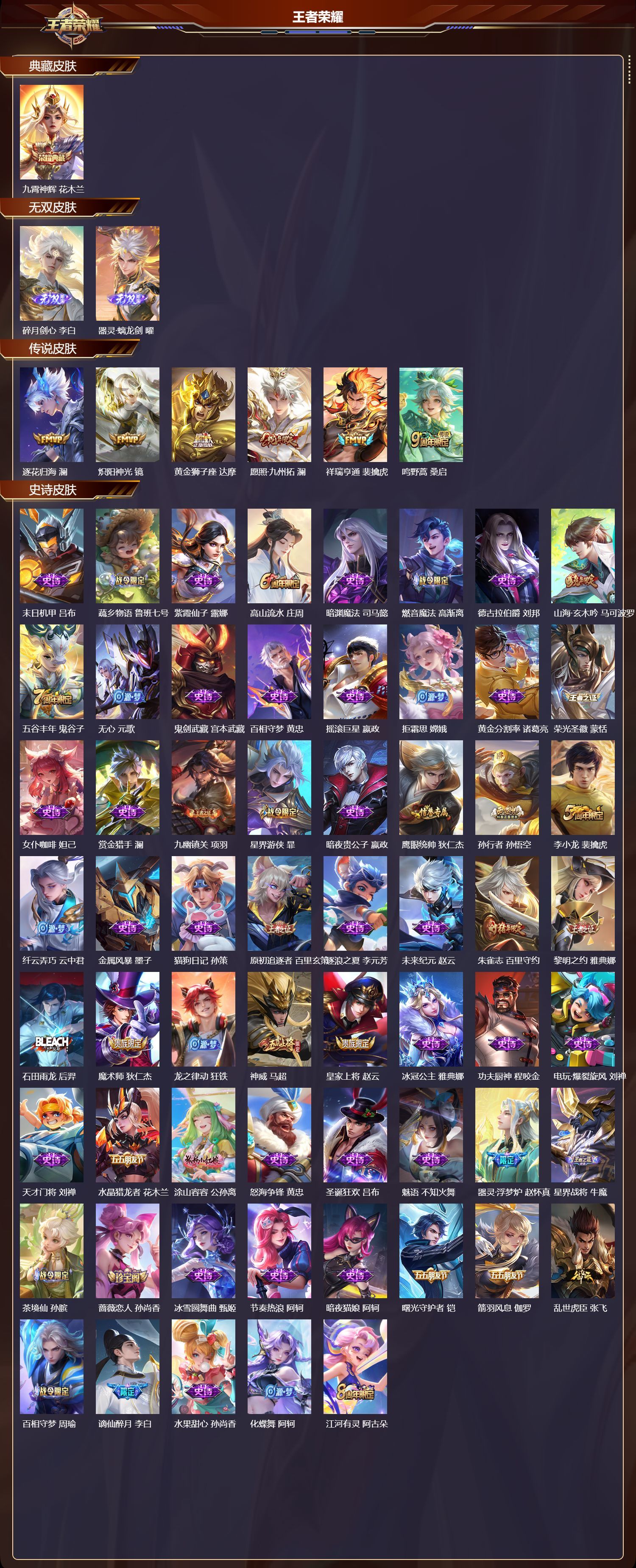 安卓QQ/非凡王者/243皮肤/128英雄/1典藏/0珍品无双/2无双/0珍品传说/6传说/65史诗