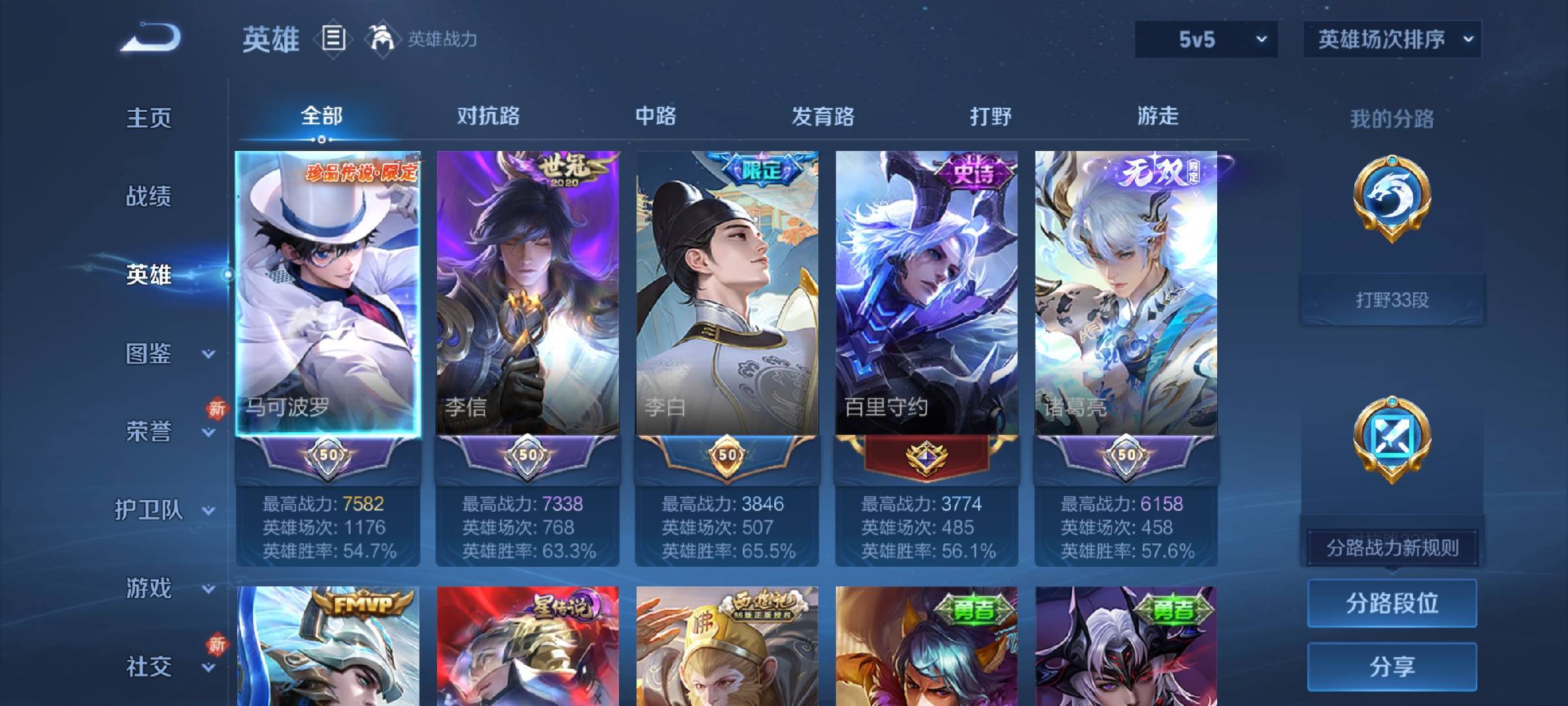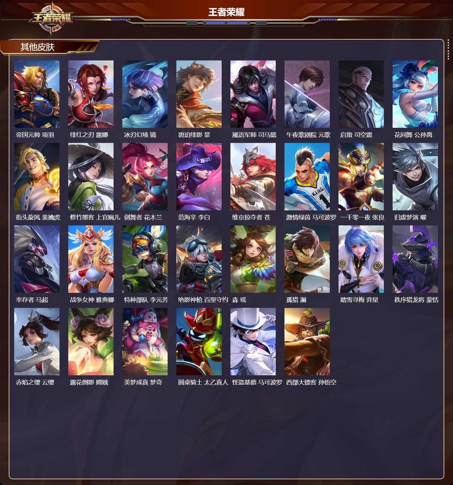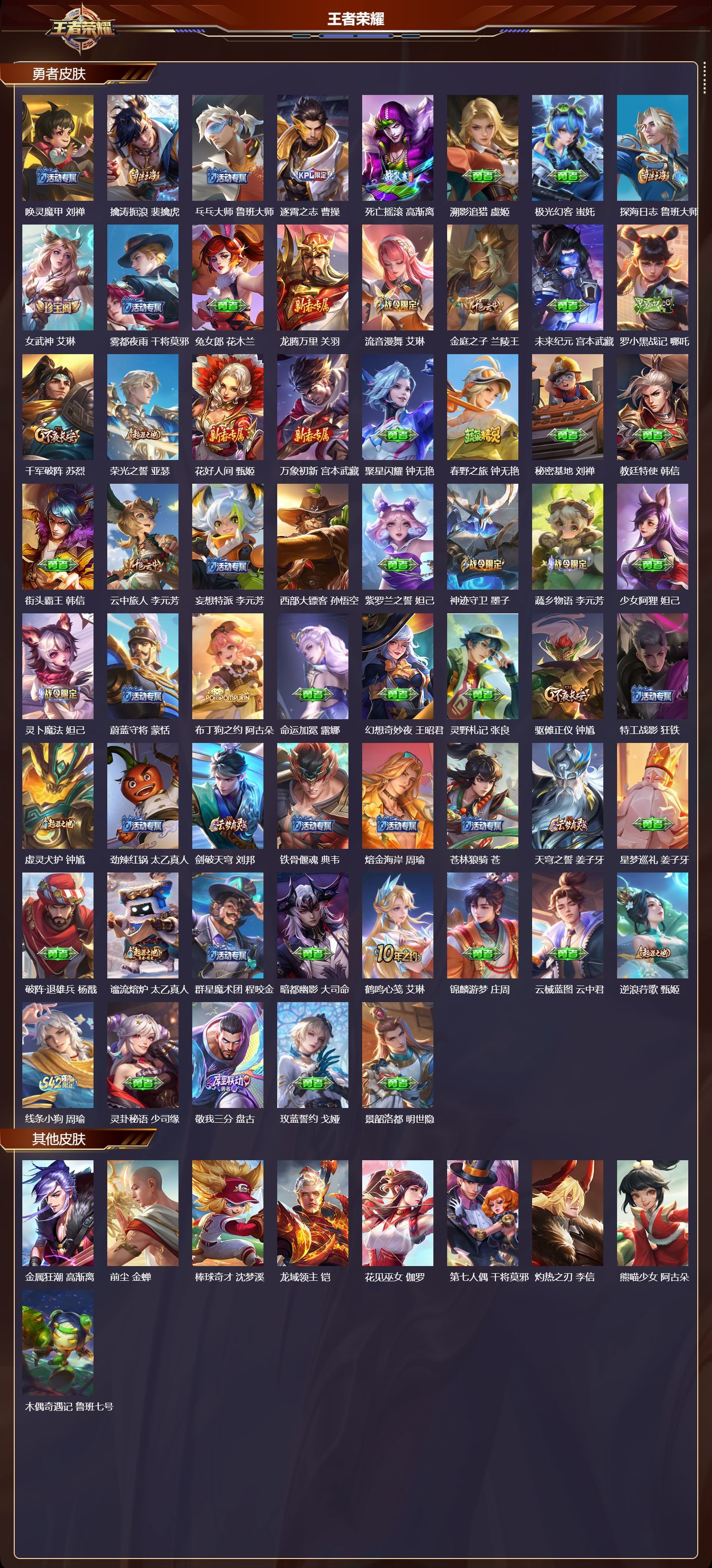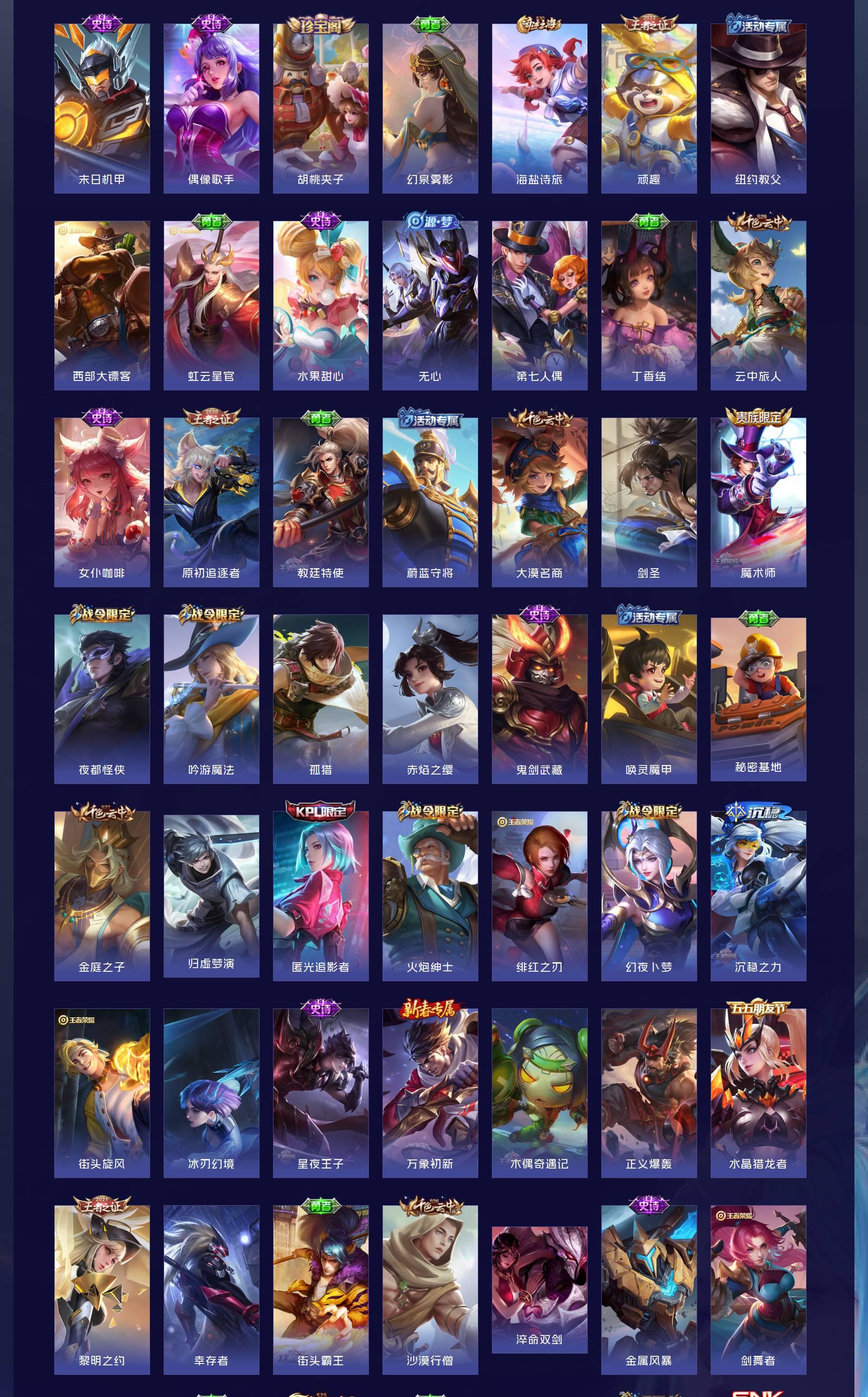 V7 皮肤238 英雄129 至尊星耀 荣耀典藏1 无双皮肤1 珍品传说1 传说9 其他皮肤231