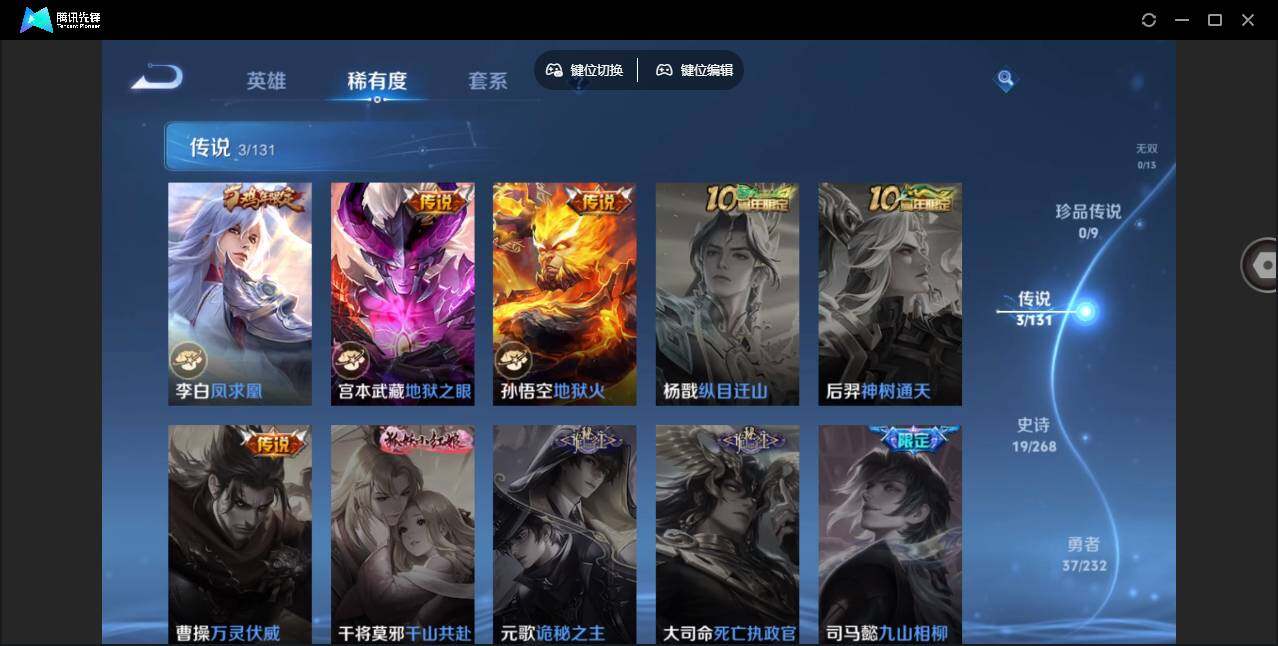 【传说皮肤】:李白凤求凰,宫本武藏地狱之眼,孙悟空地狱火