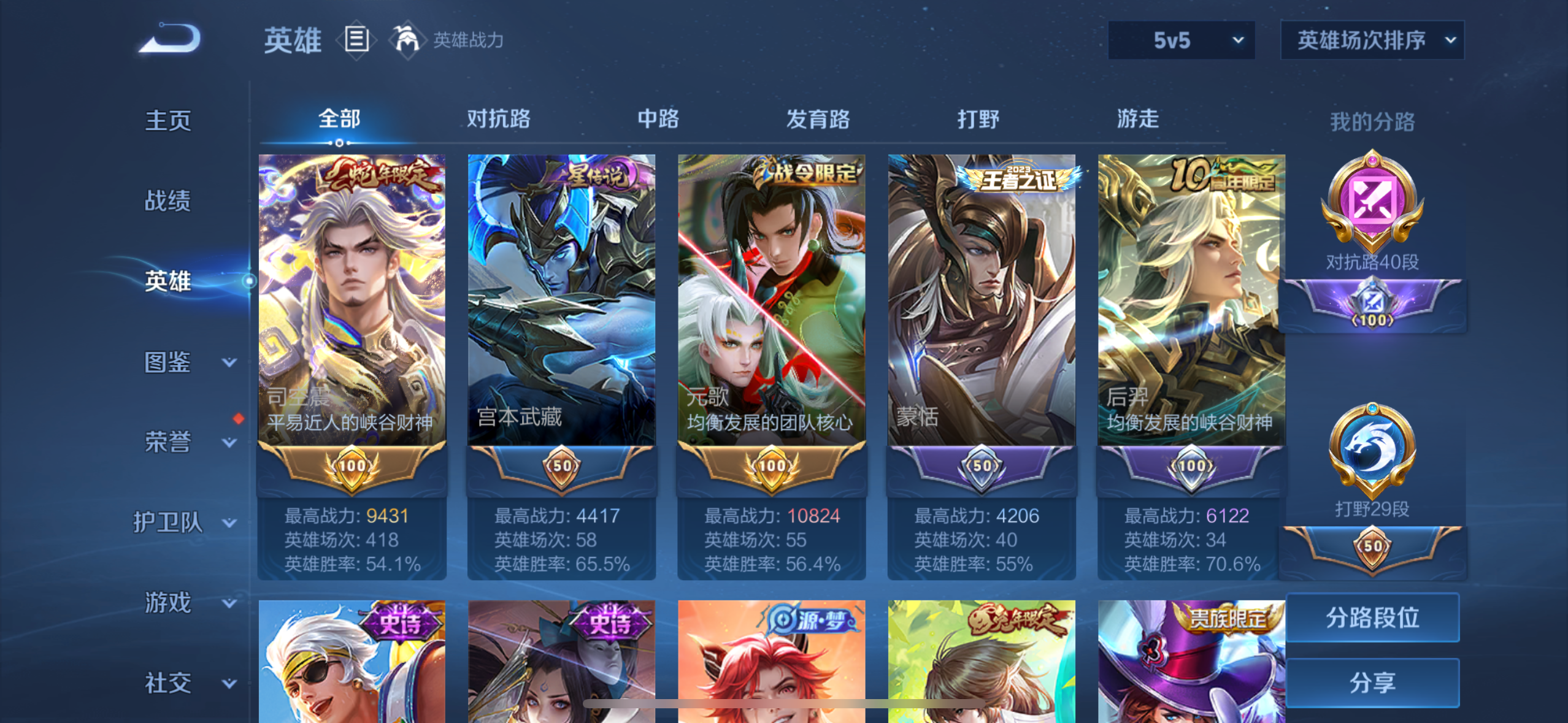 王者荣耀账号,对抗路40段,打野20段